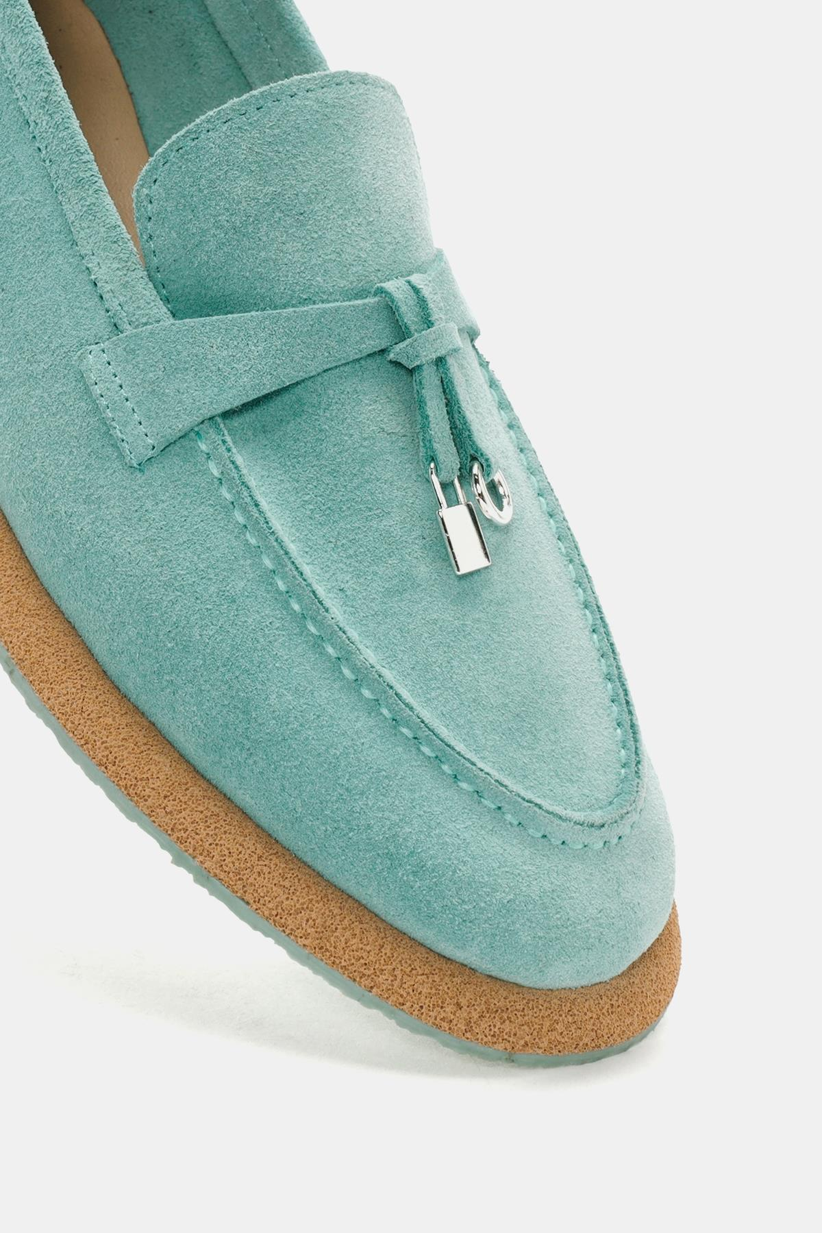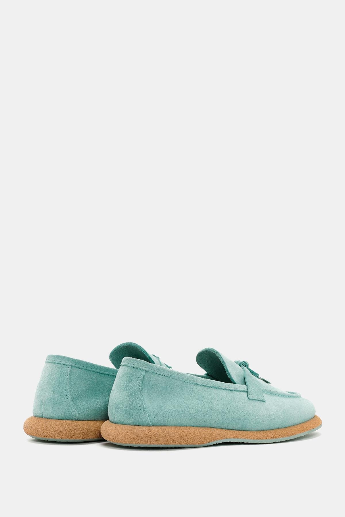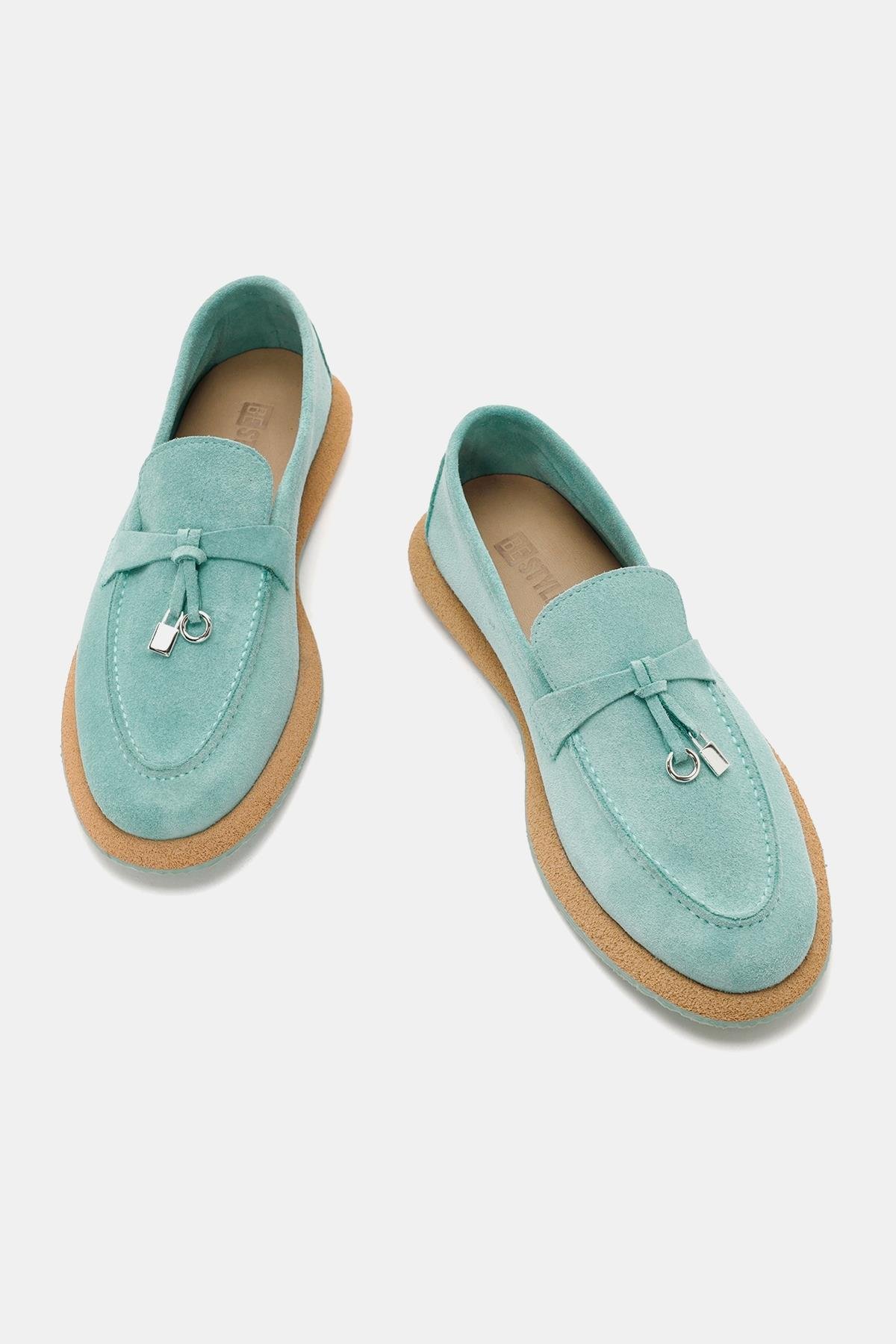 Aden Kadın Turkuaz Süet Deri Loafer, şık ve rahat tasarımıyla günlük giyiminize renk katıyor. Yumuşak süet deri malzemesi ve canlı turkuaz rengi, her türlü kombinle mükemmel uyum sağlar.
