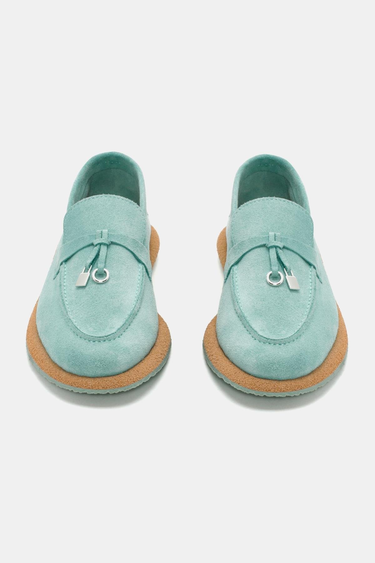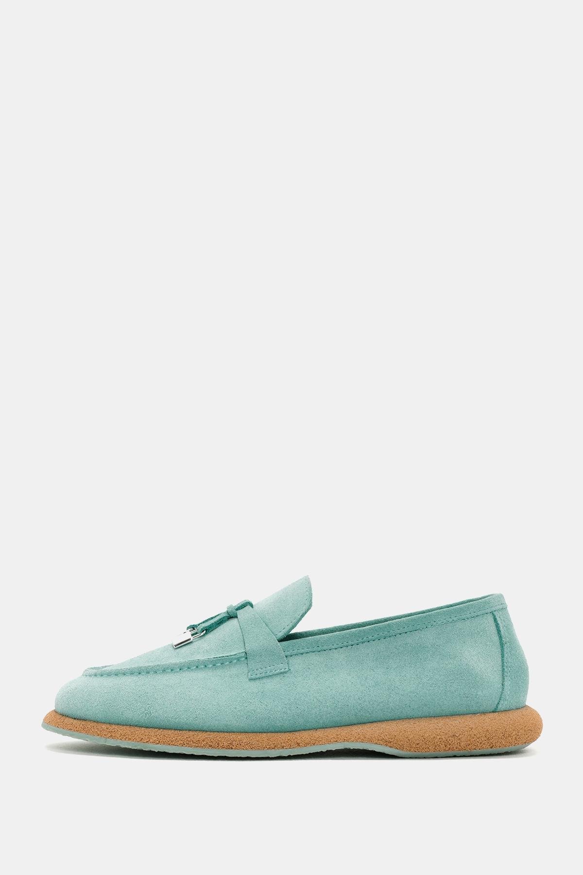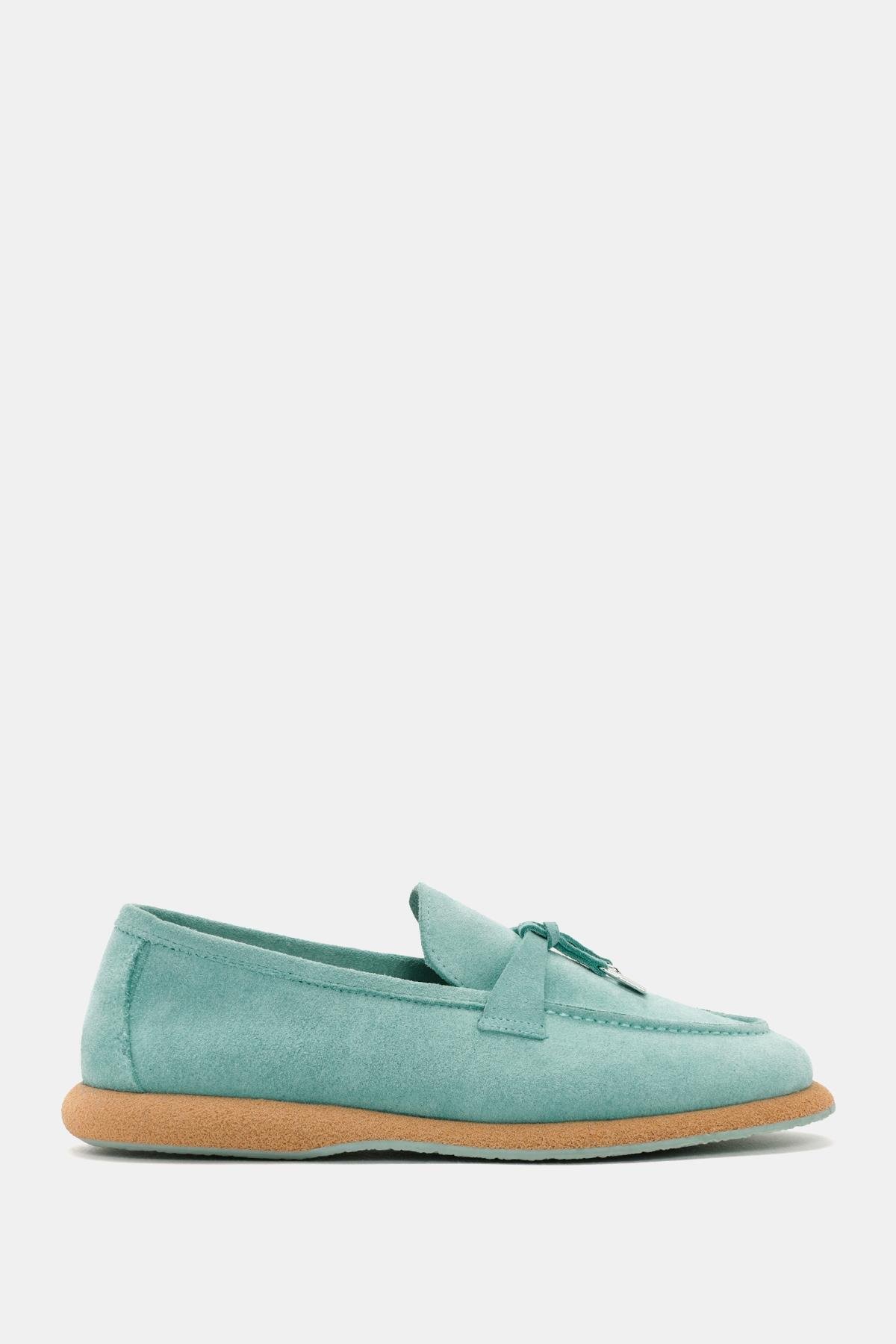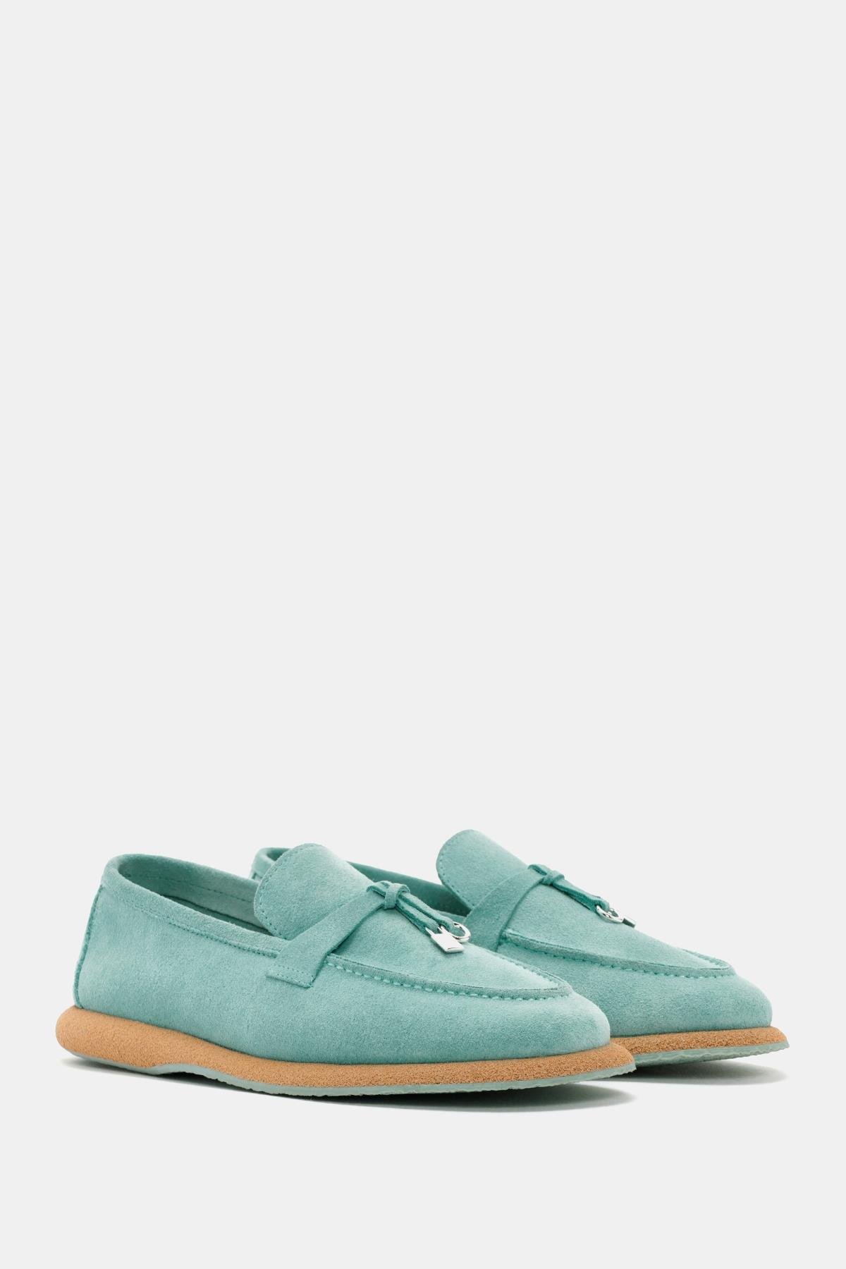 Aden Kadın Turkuaz Süet Deri Loafer, şık ve rahat tasarımıyla günlük giyiminize renk katıyor. Yumuşak süet deri malzemesi ve canlı turkuaz rengi, her türlü kombinle mükemmel uyum sağlar.