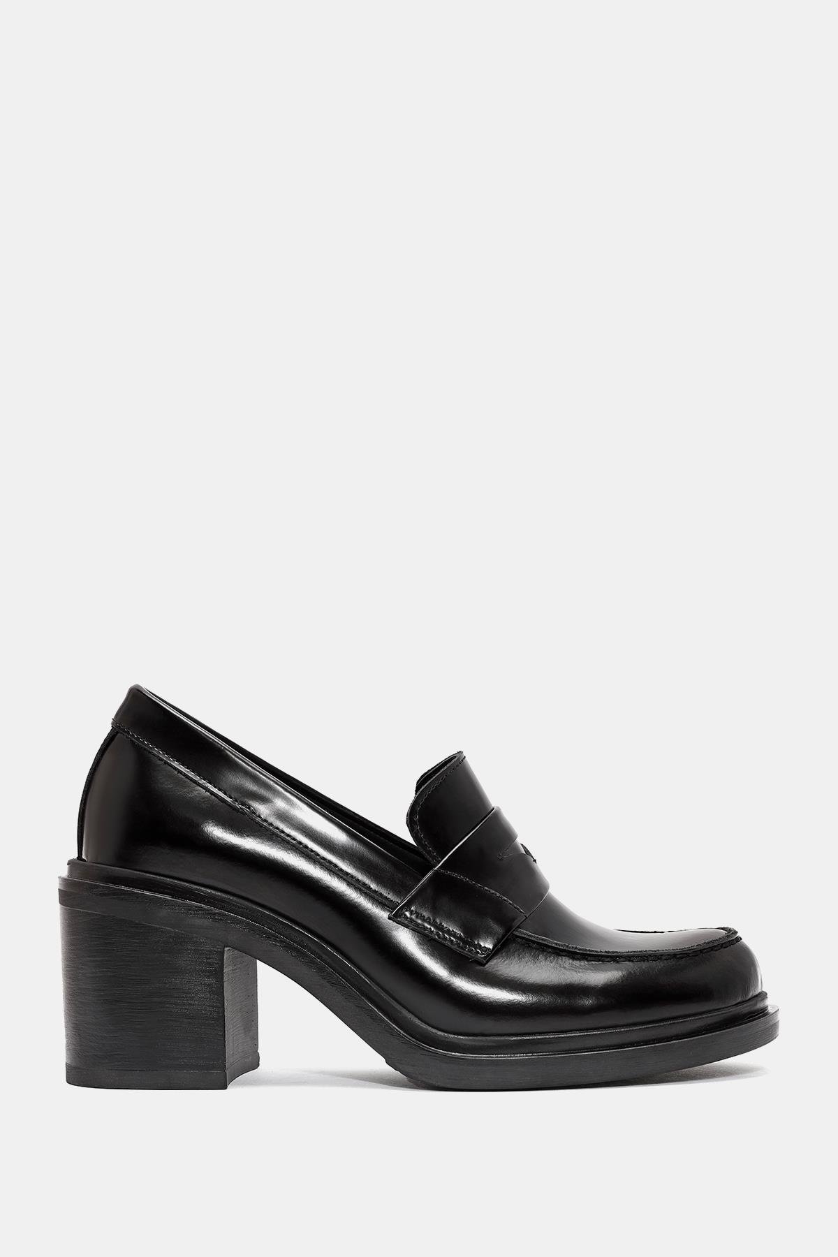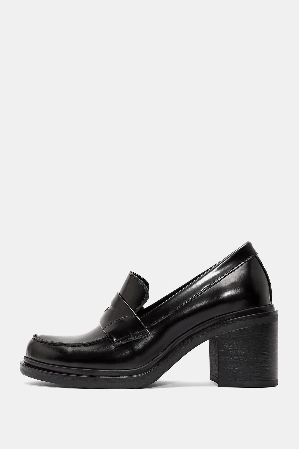 Allisa Kadın Siyah Gerçek Deri Topuklu Loafer