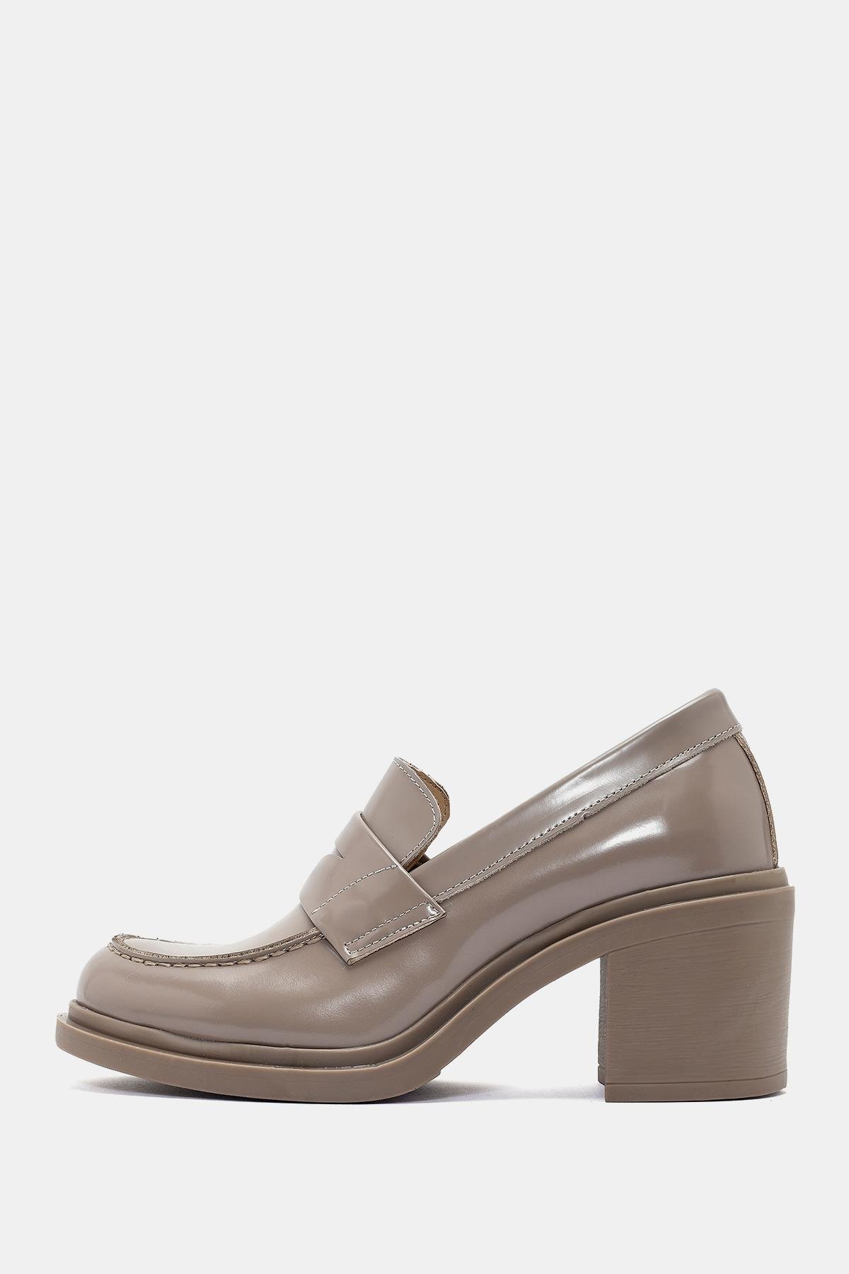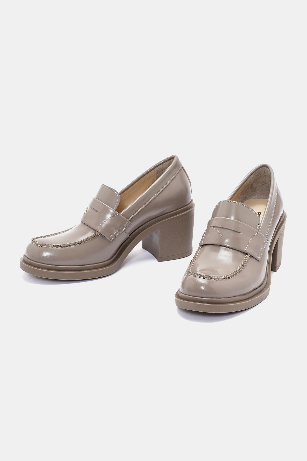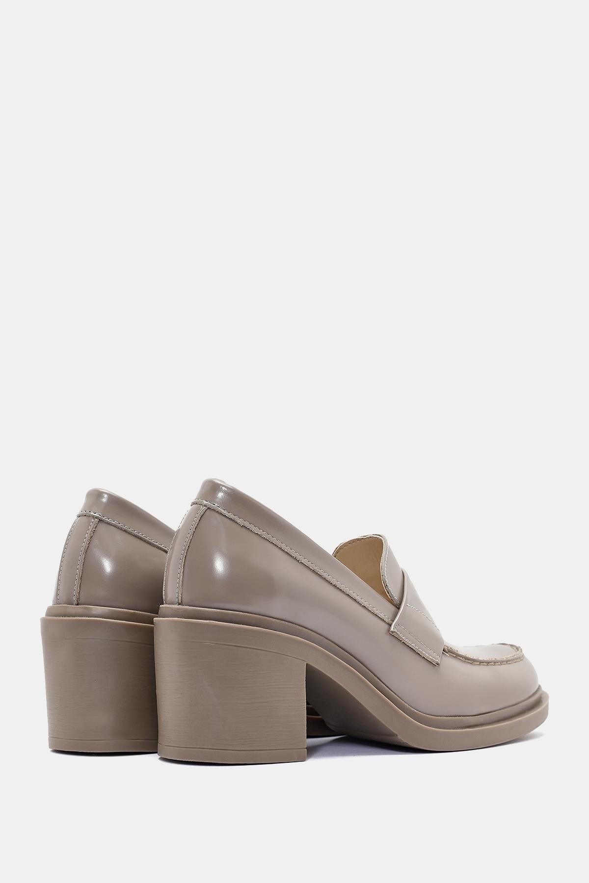 Allisa Kadın Vizon Gerçek Deri Topuklu Loafer (OTS2144-Vizon)