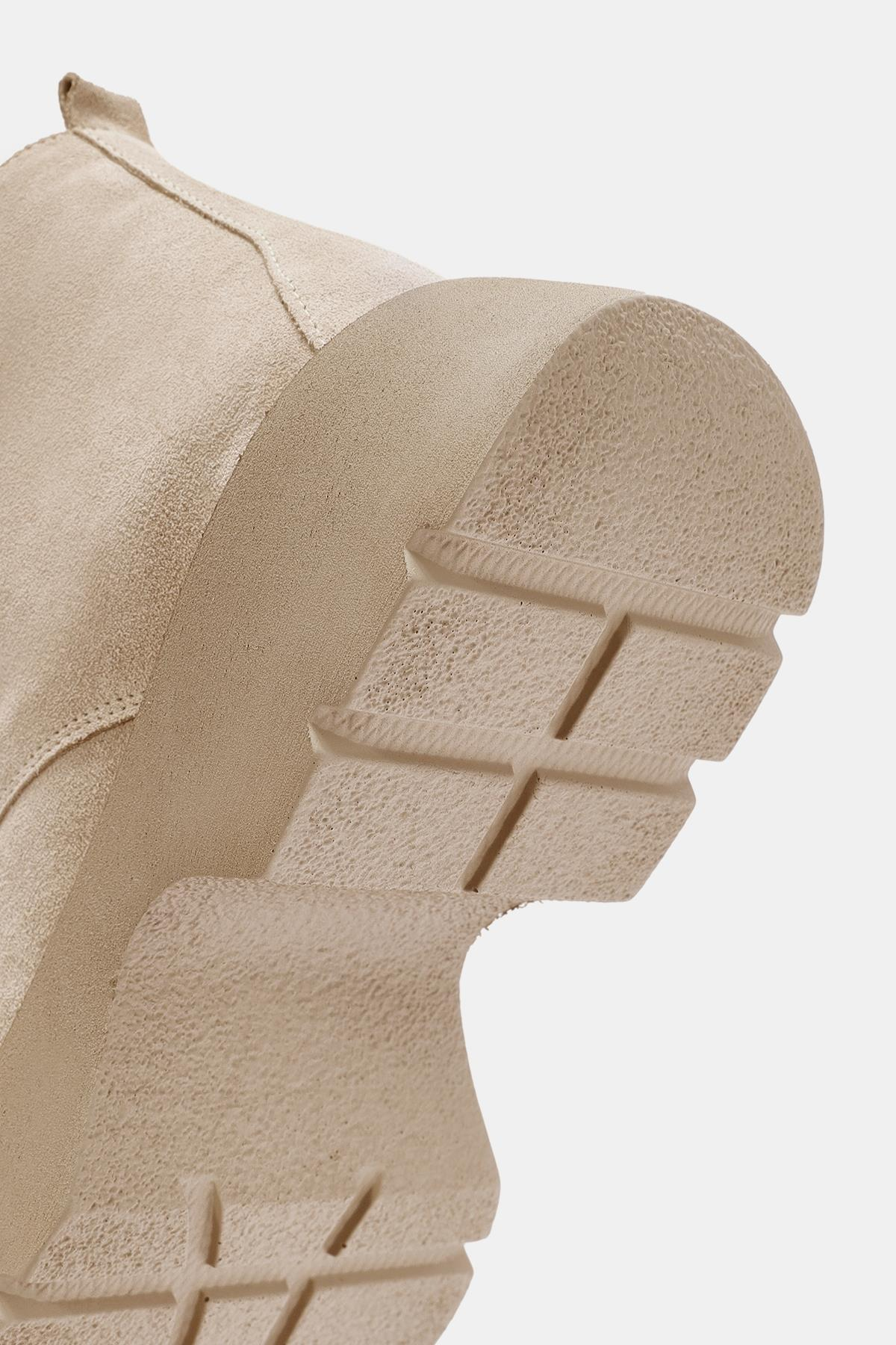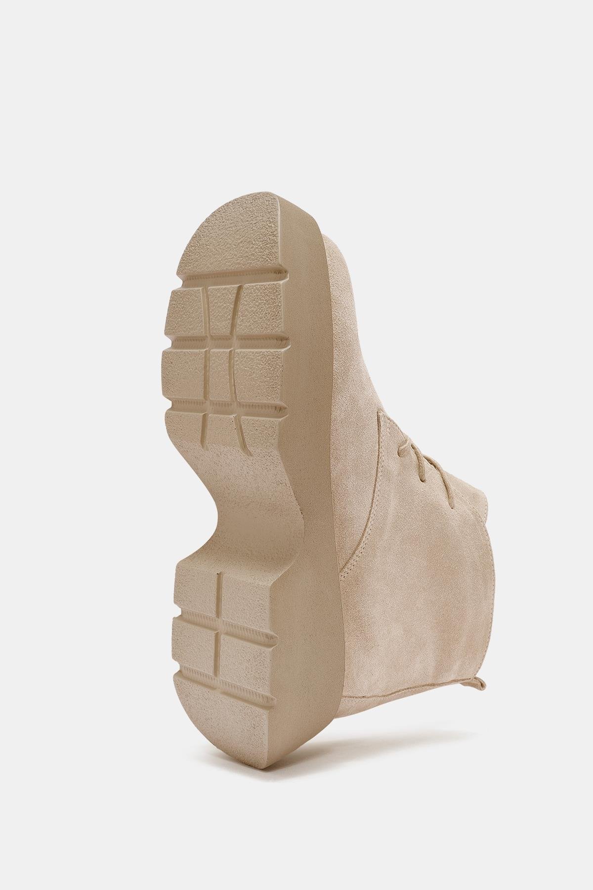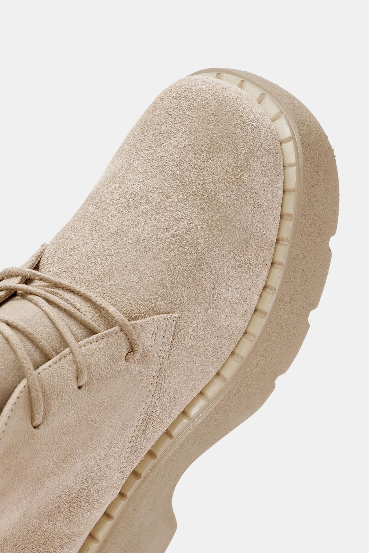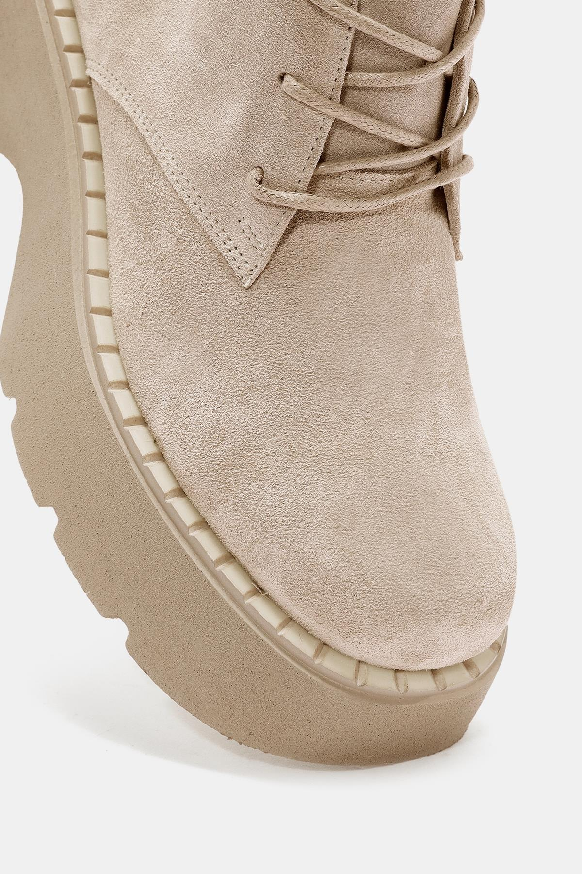 Aniva Kadın Bej İçi Kürklü Gerçek Süet Deri Kalın Tabanlı Bot (OTS2170-Bej)