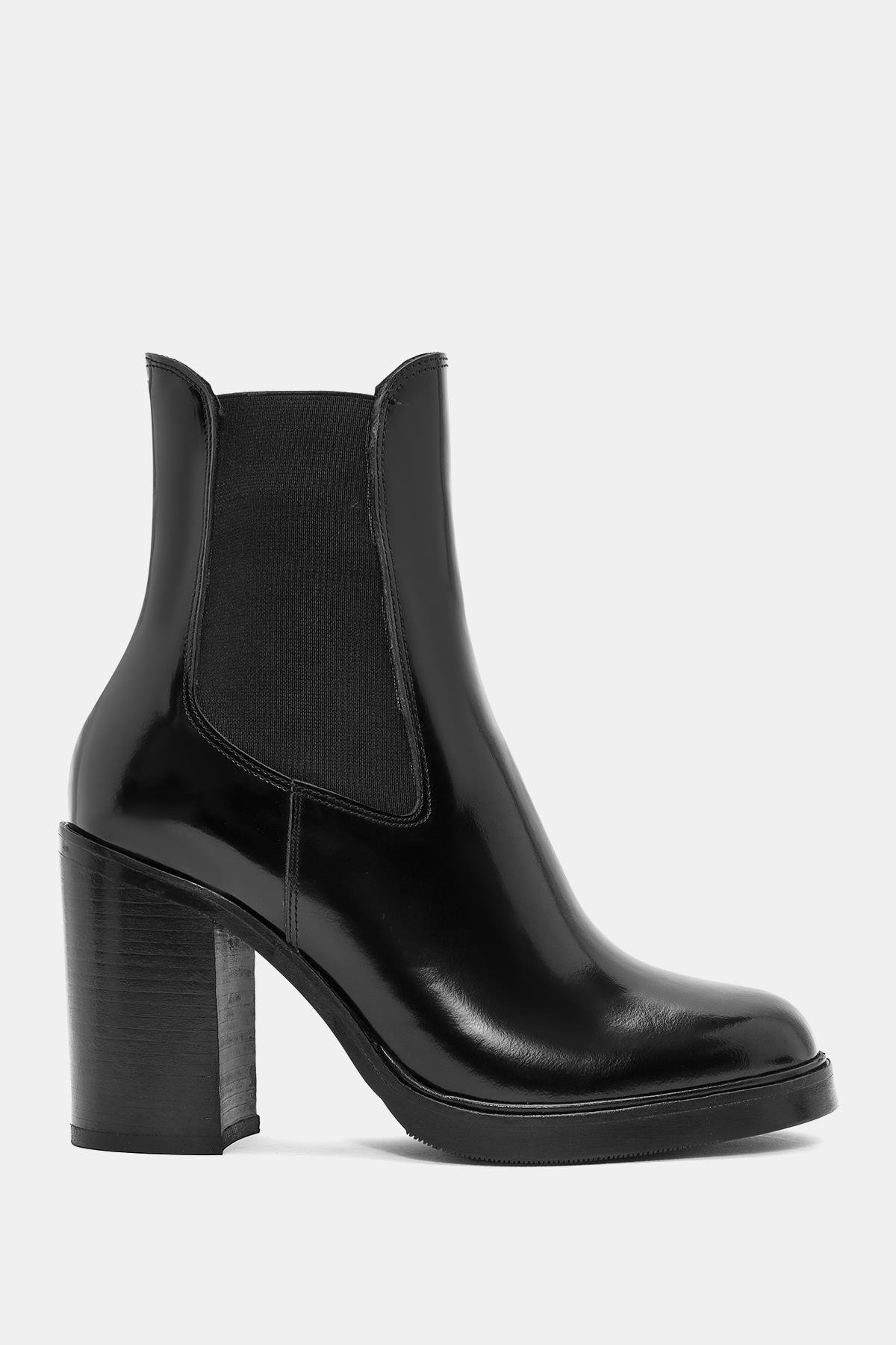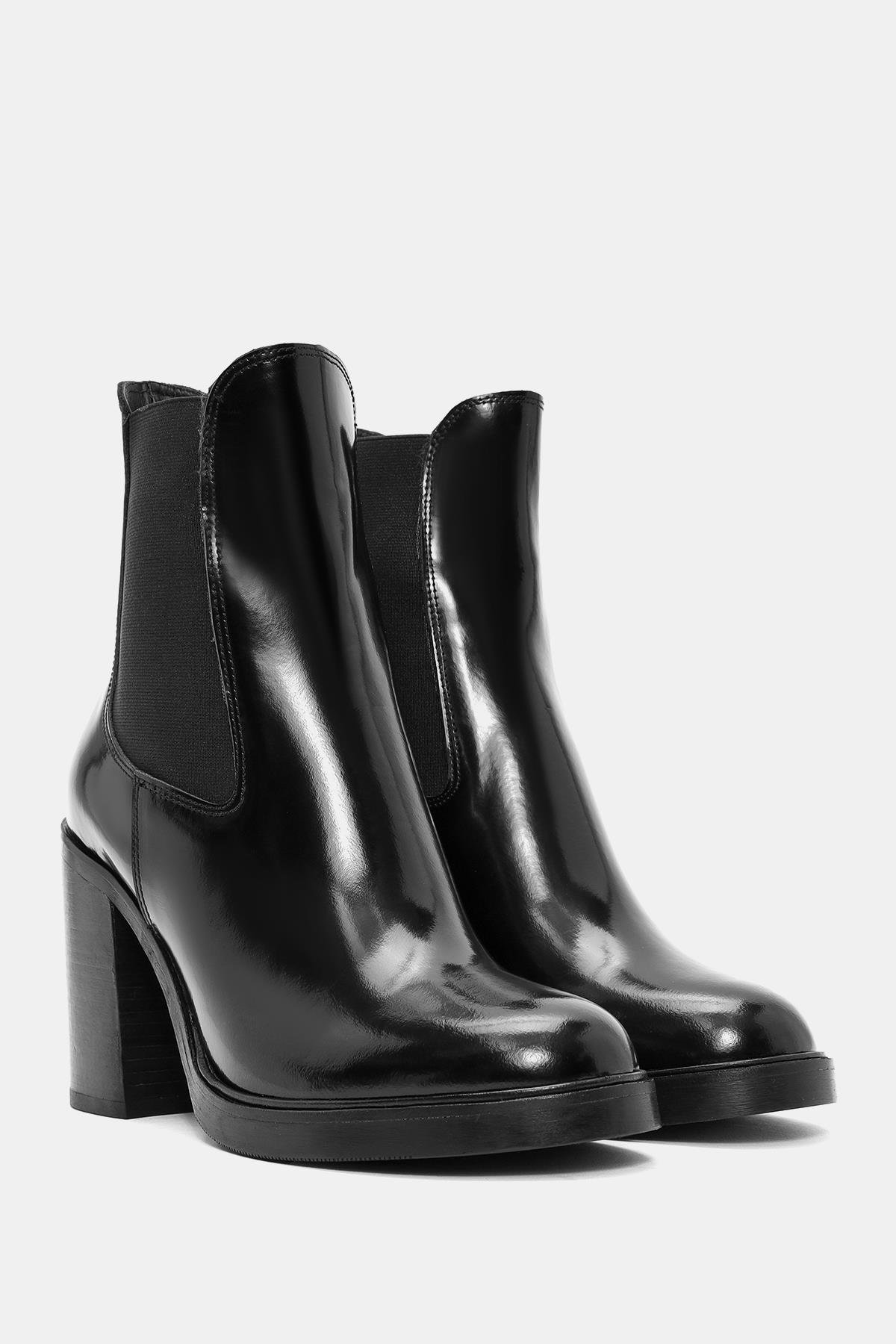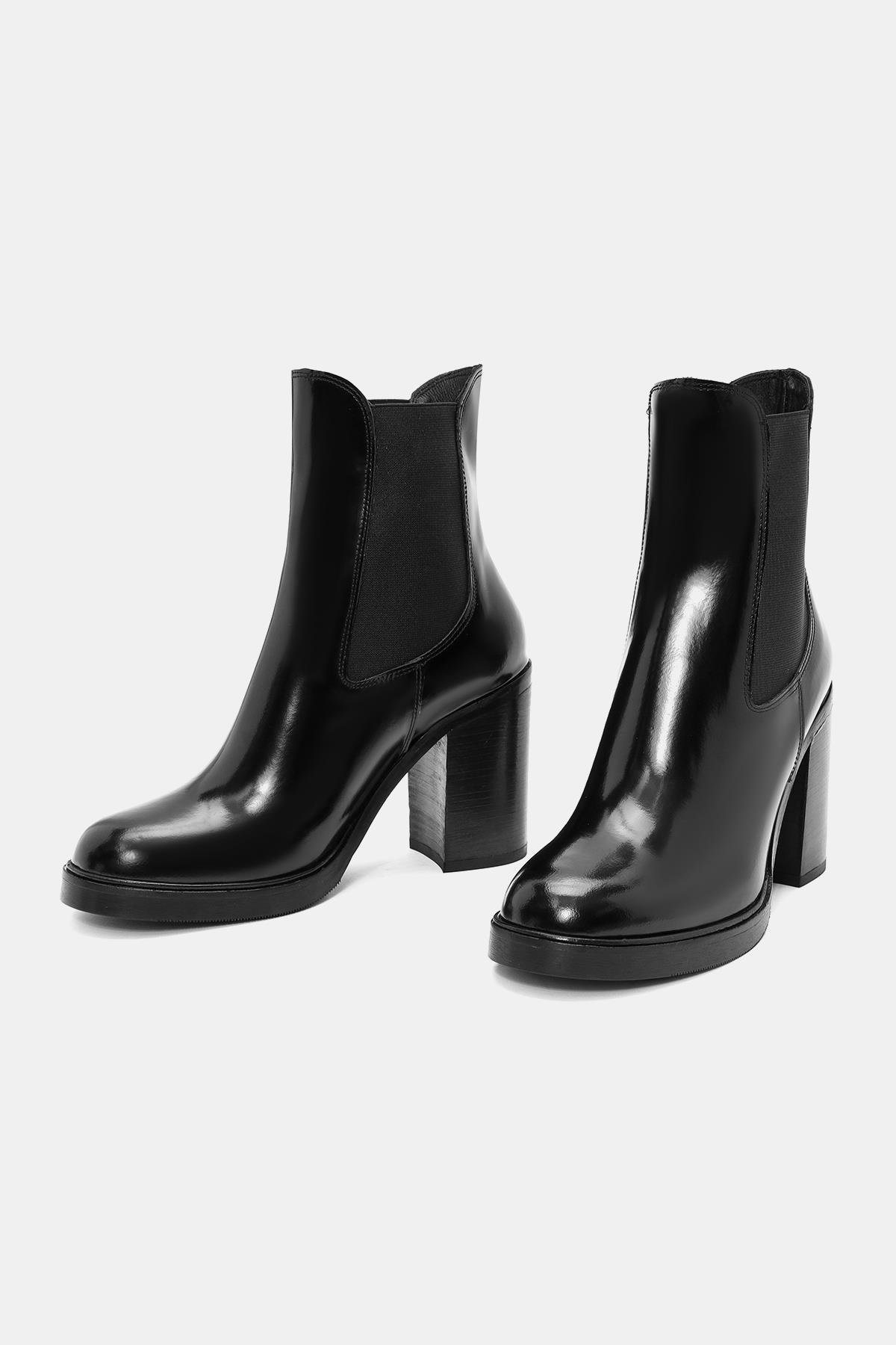 Beety Kadın Siyah Gerçek Deri Kalın Yüksek Topuklu Chelsea Bot