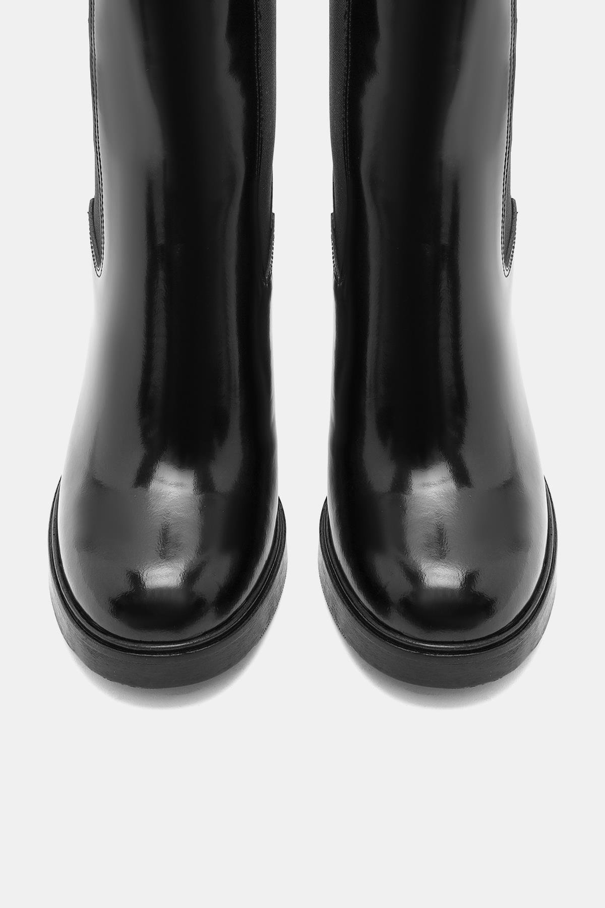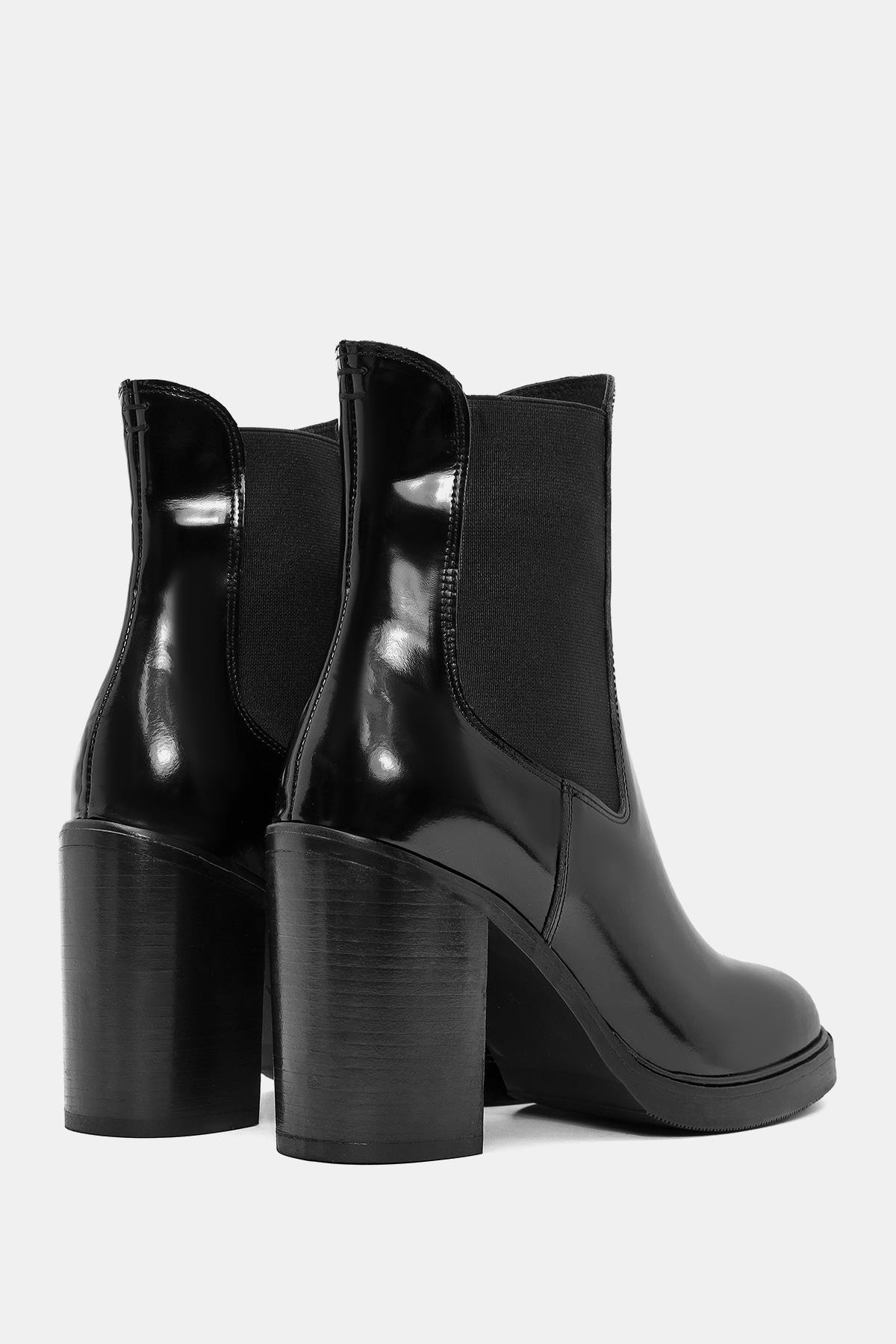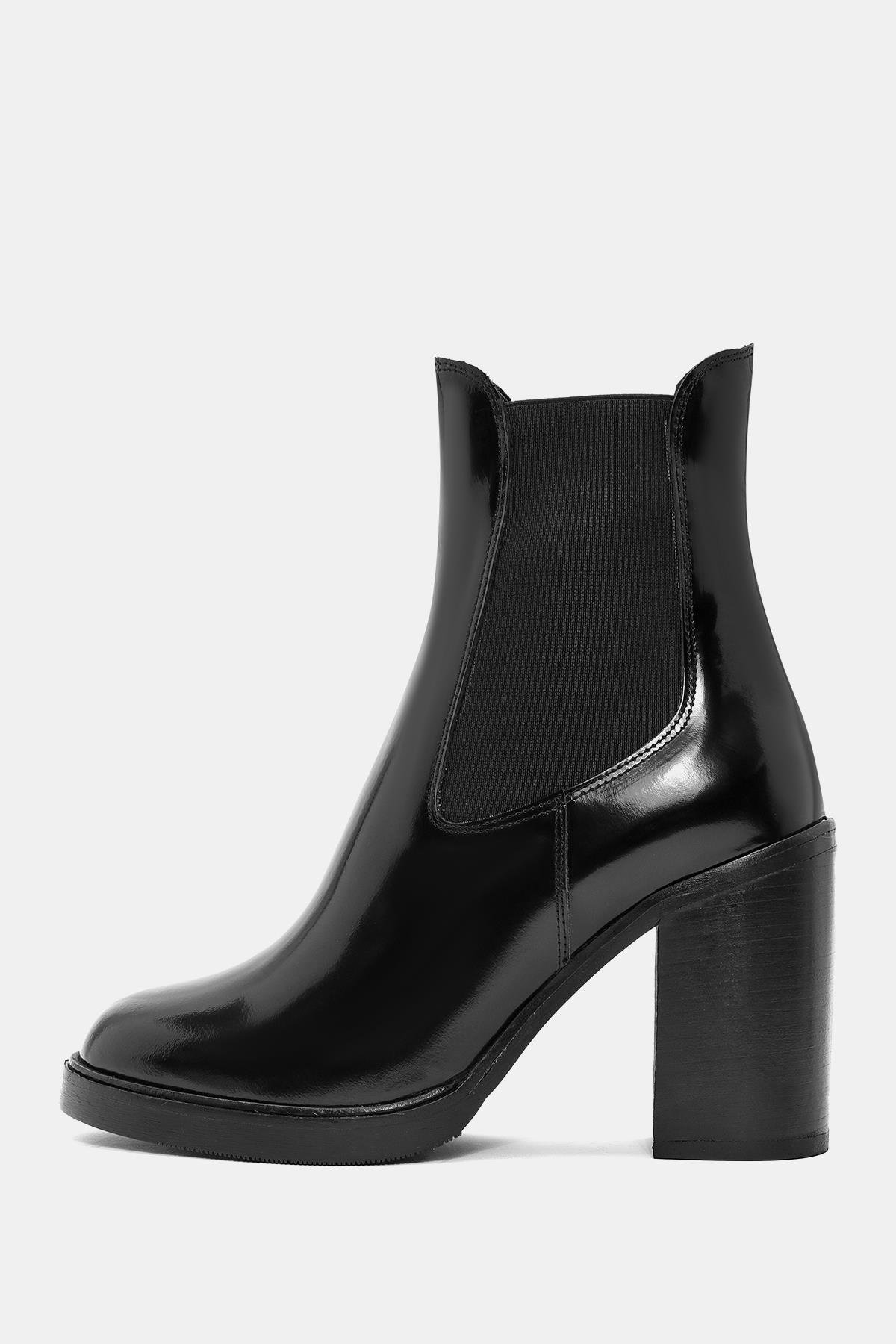 Beety Kadın Siyah Gerçek Deri Kalın Yüksek Topuklu Chelsea Bot