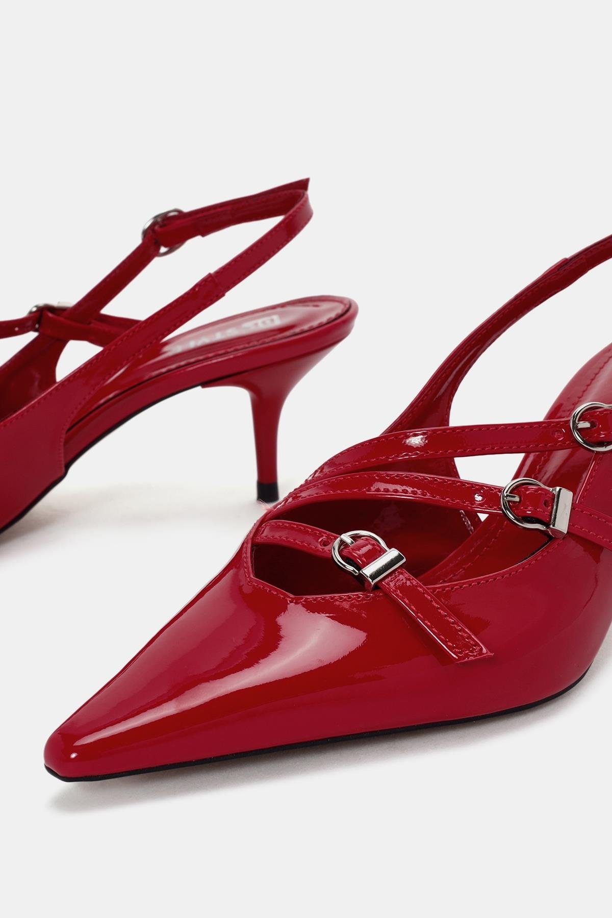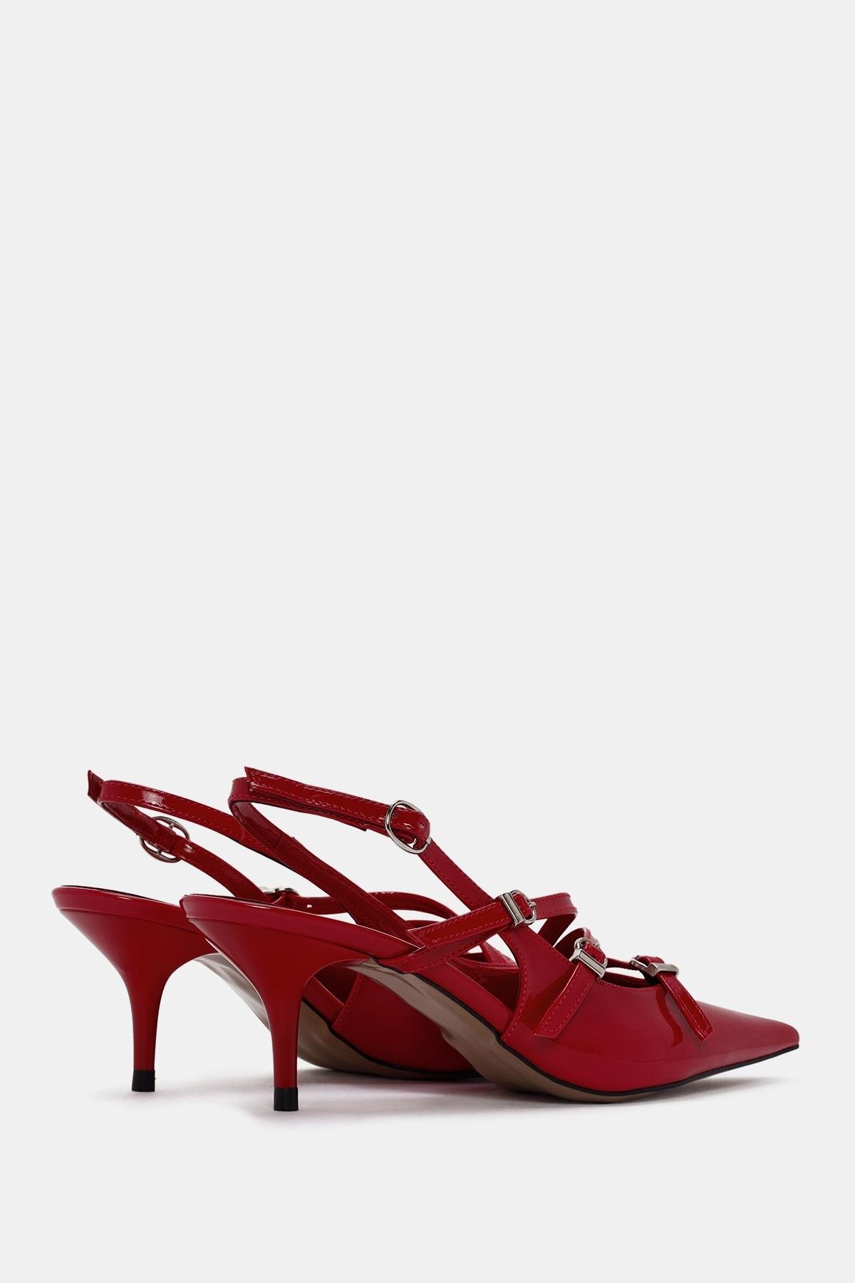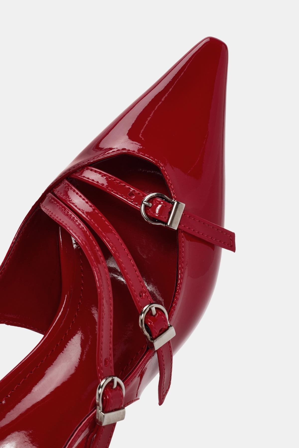 Berry Kadın Kırmızı Rugan Tokalı Topuklu Ayakkabı, şıklığı ve zarafeti bir araya getiriyor. Canlı kırmızı rugan malzeme ve tokalı detayıyla dikkat çekiyor. Her türlü özel etkinlik ve davet için mükemmel bir seçenektir.