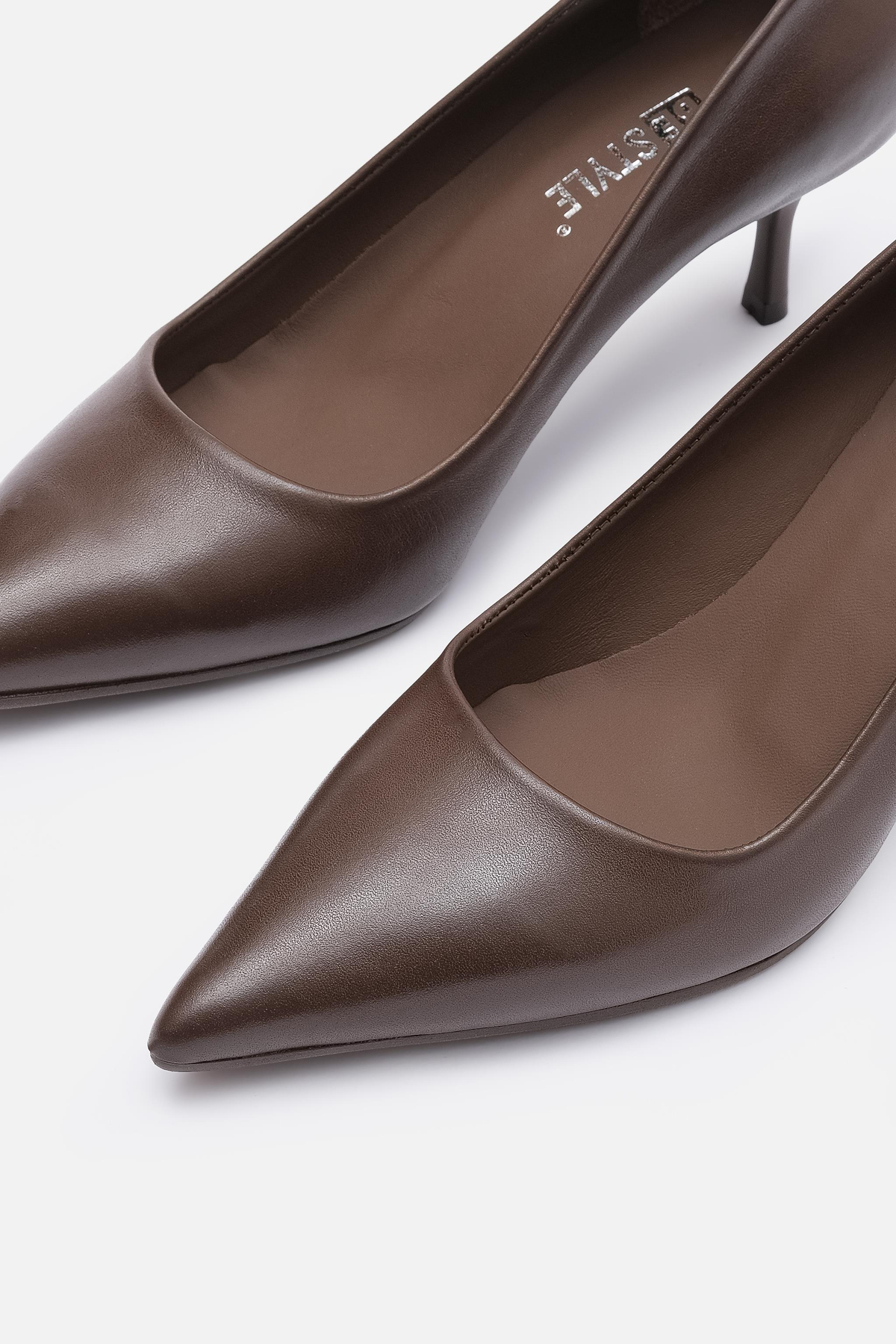 BESTYLE  Classico Series Gerçek Dana Derisi Kahve Stiletto
