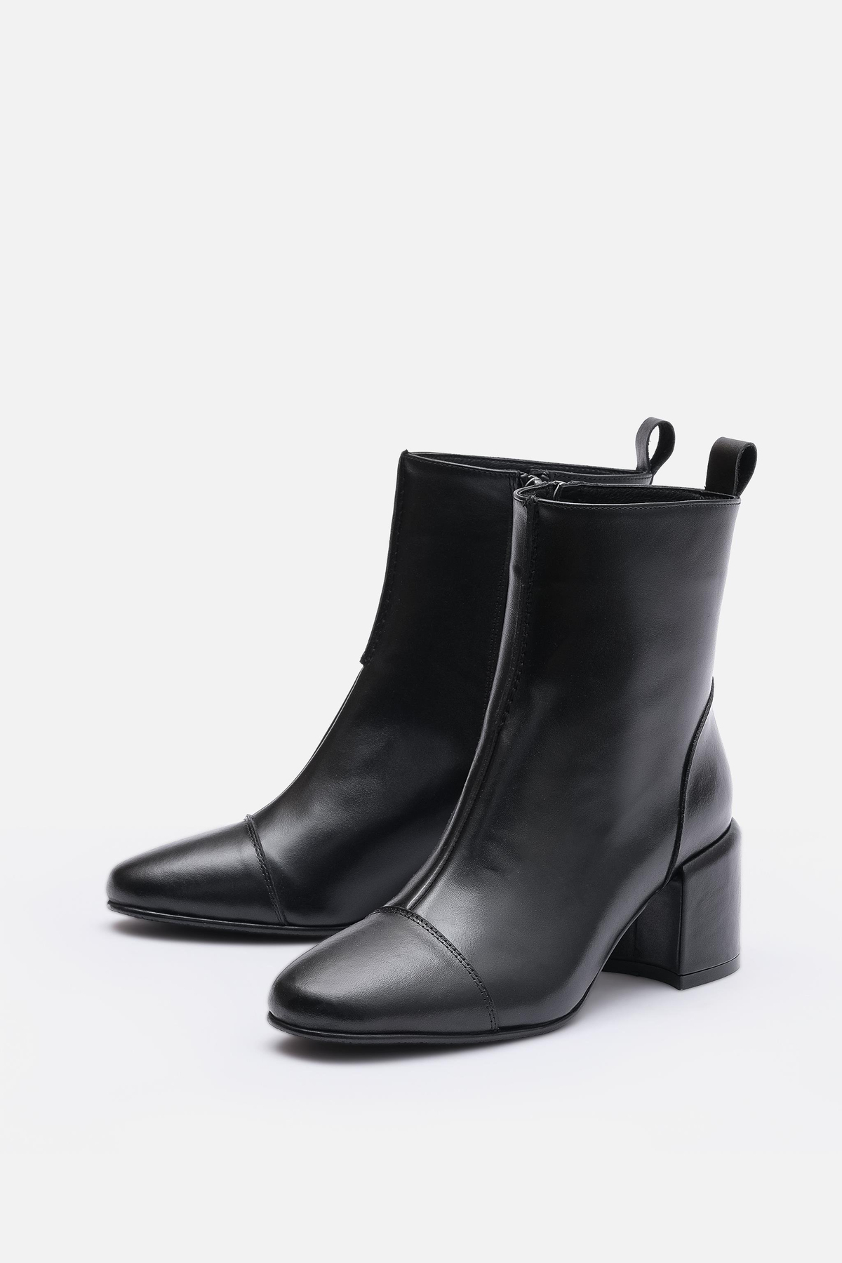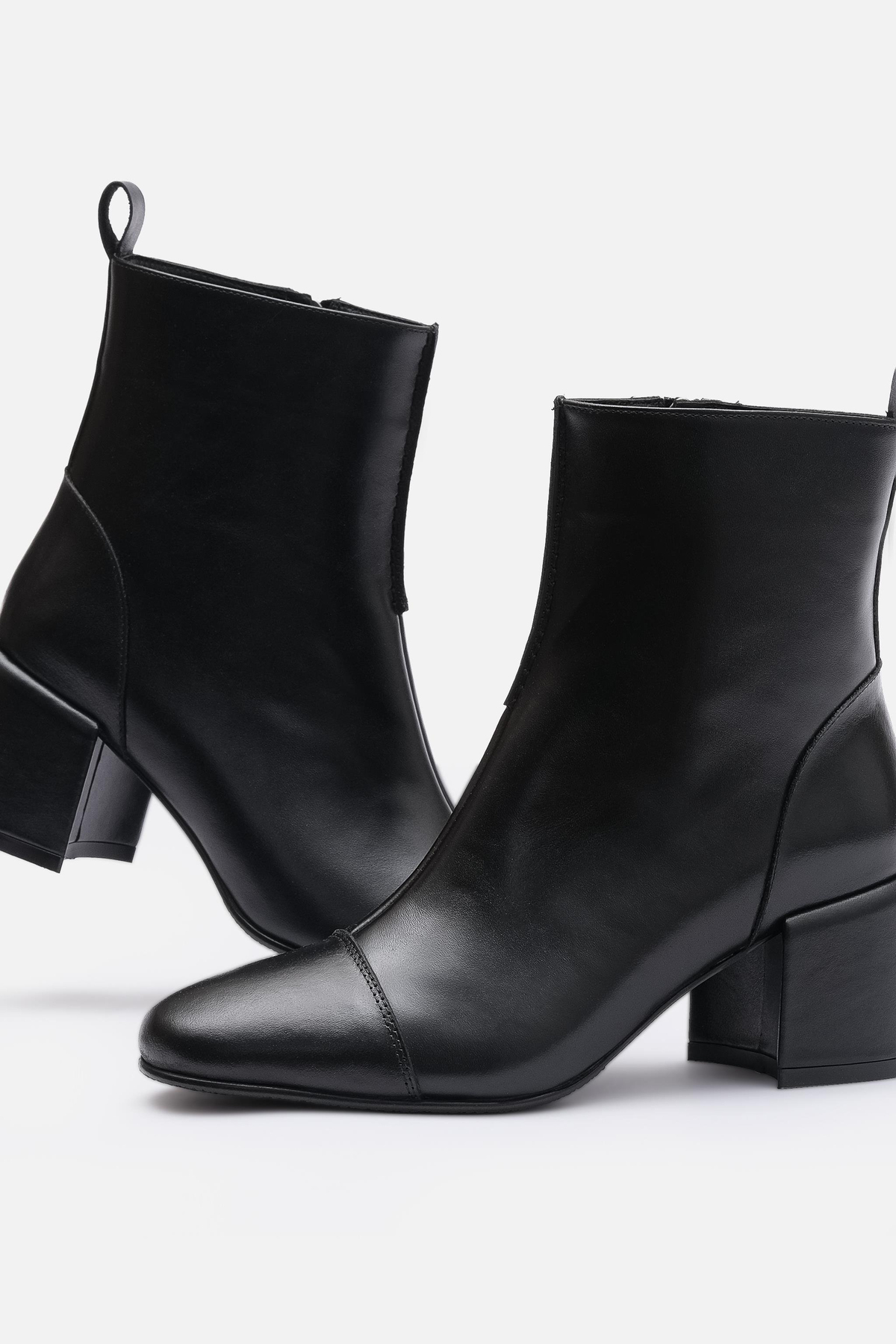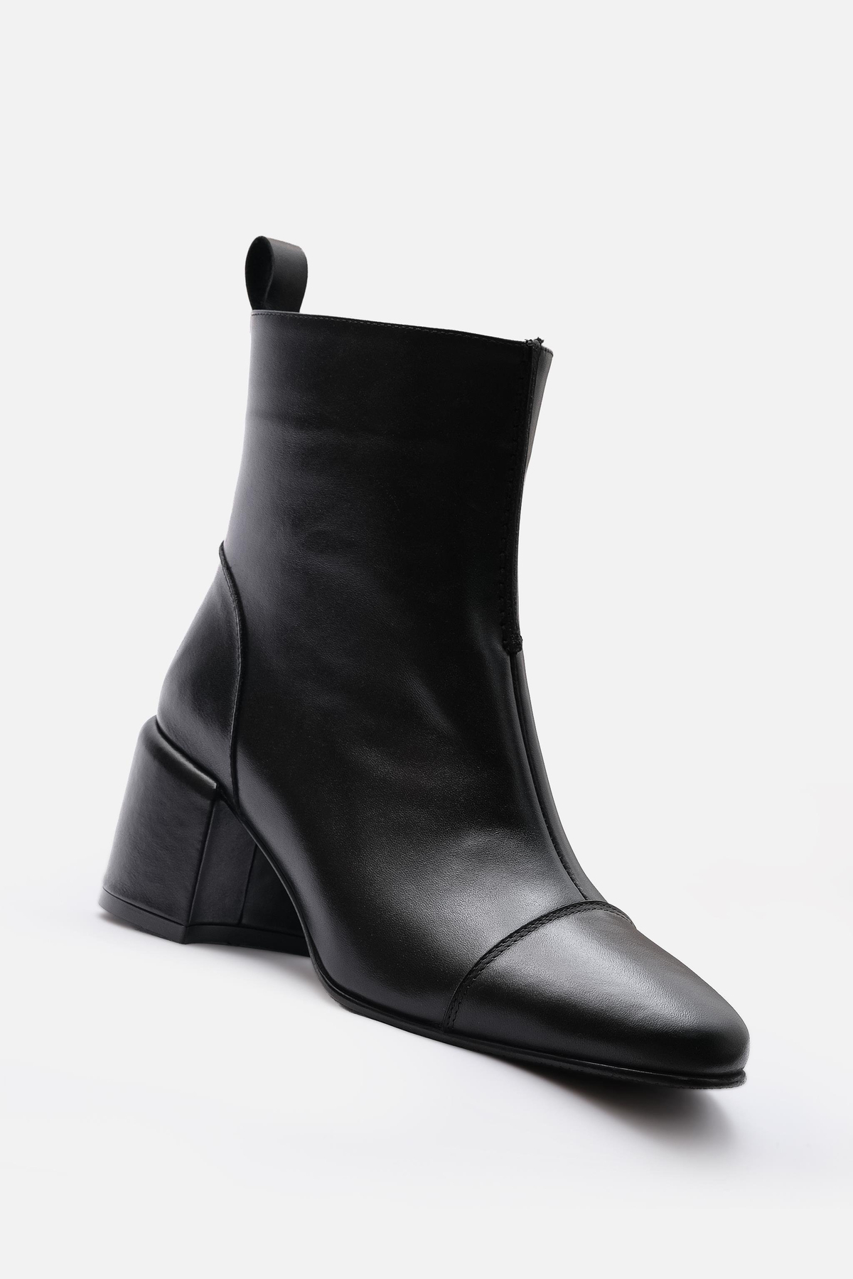 Bestyle NYX Kadın Siyah Gerçek Deri Fermuarlı Topuklu Bot (BSA - 906 - Siyah Doğal Deri)
