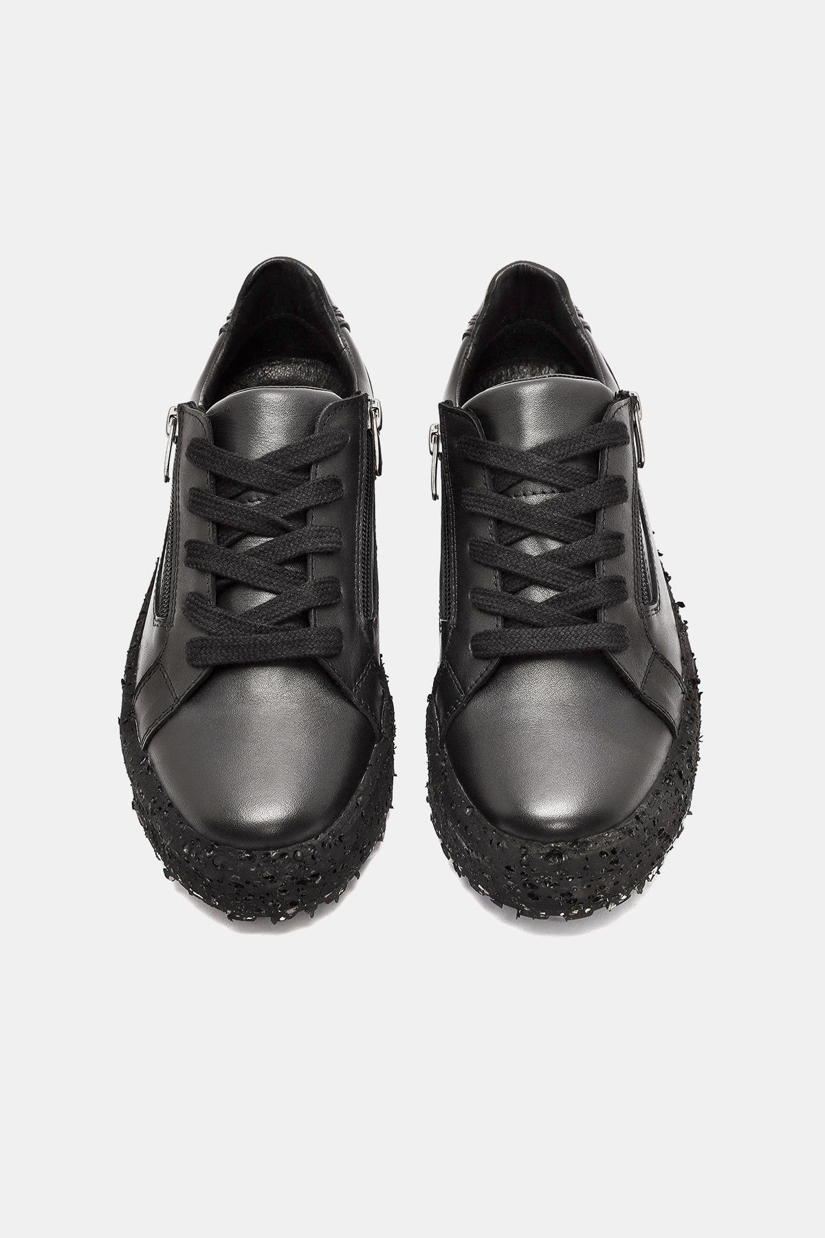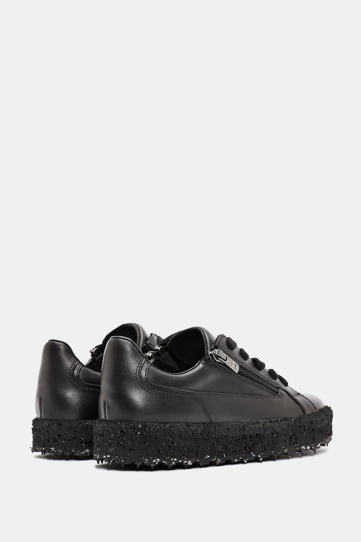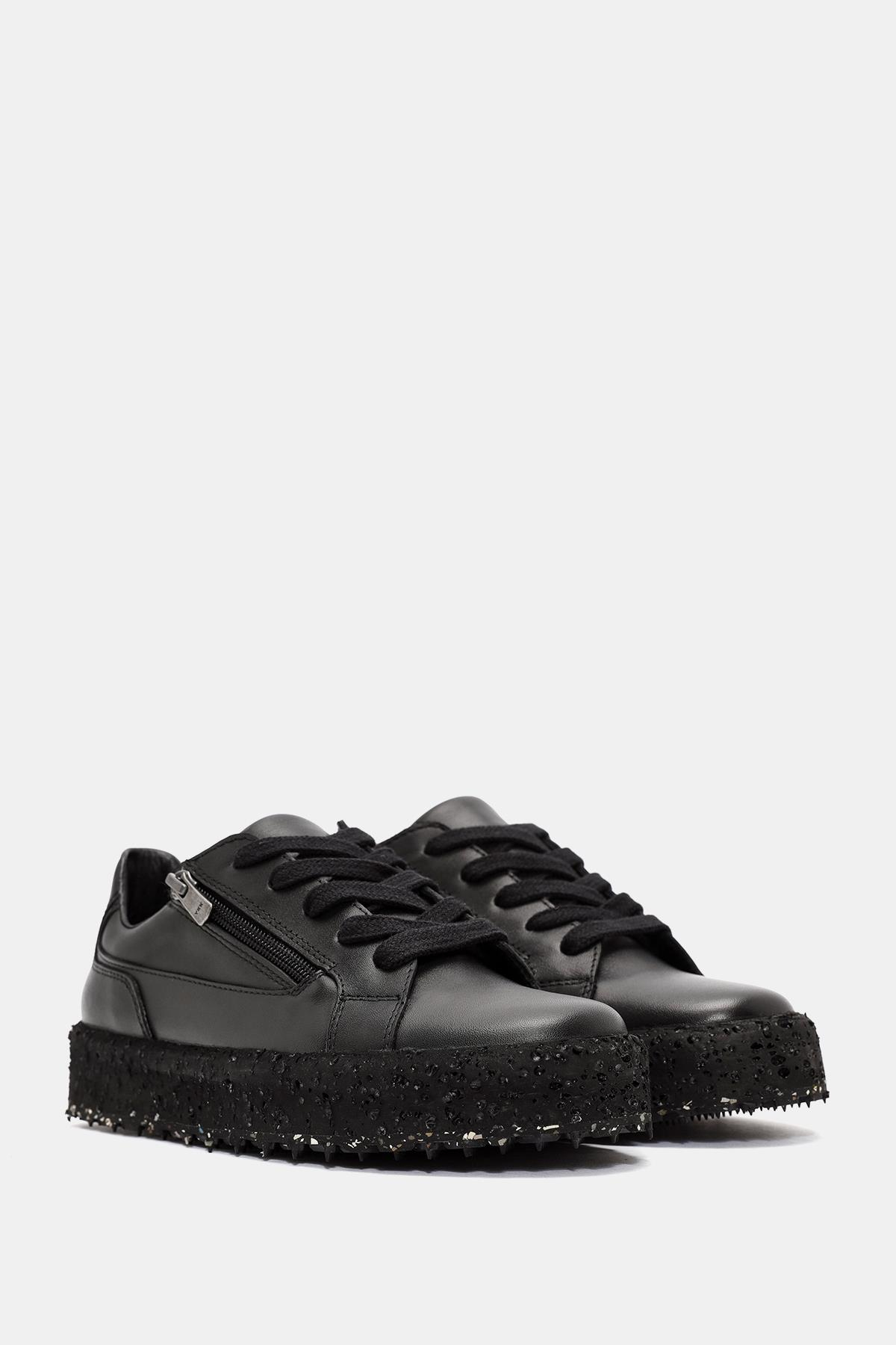 Briar Kadın Siyah Gerçek Deri Fermuar Detaylı Sneaker
