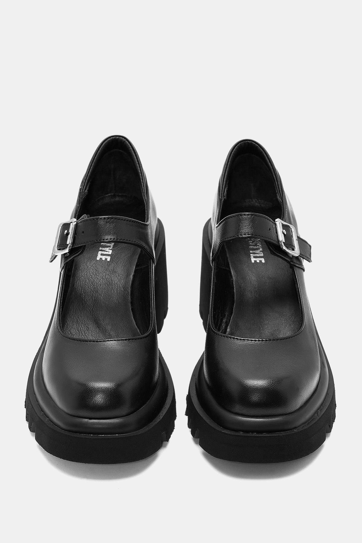 Chiara Kadın Siyah Gerçek Deri Tokalı Kalın Topuklu Ayakkabı