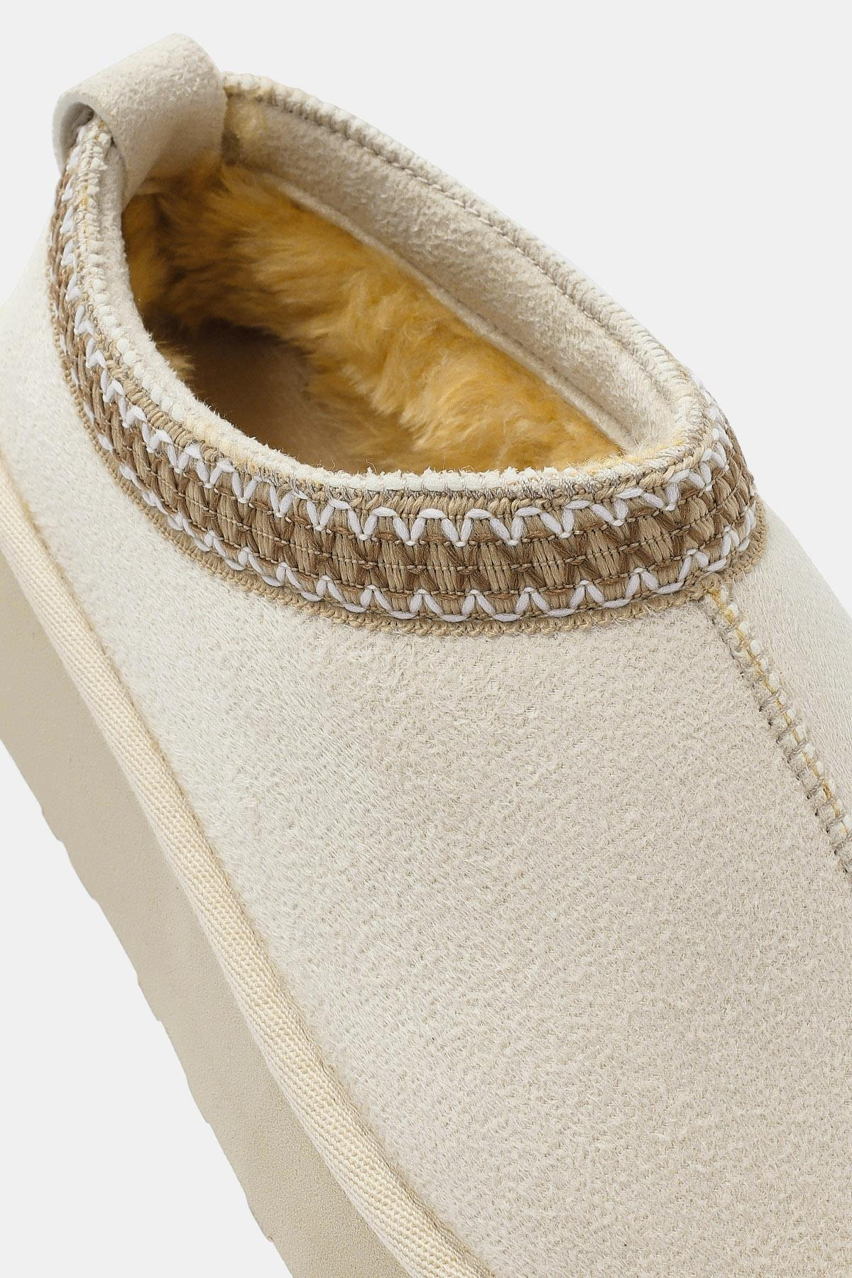 Cosmo Kadın Bej İçi Kürklü Ev Terliği (OTS2178-Bej)