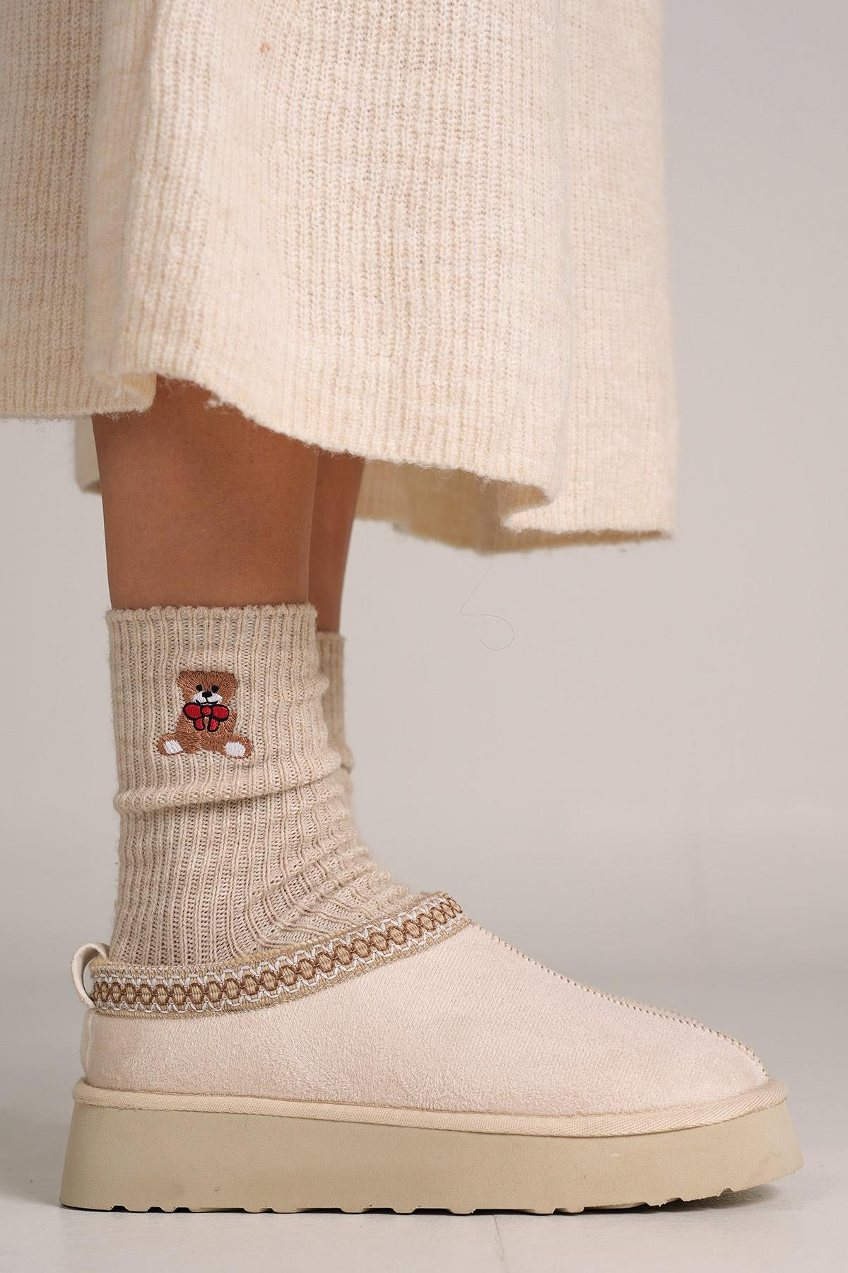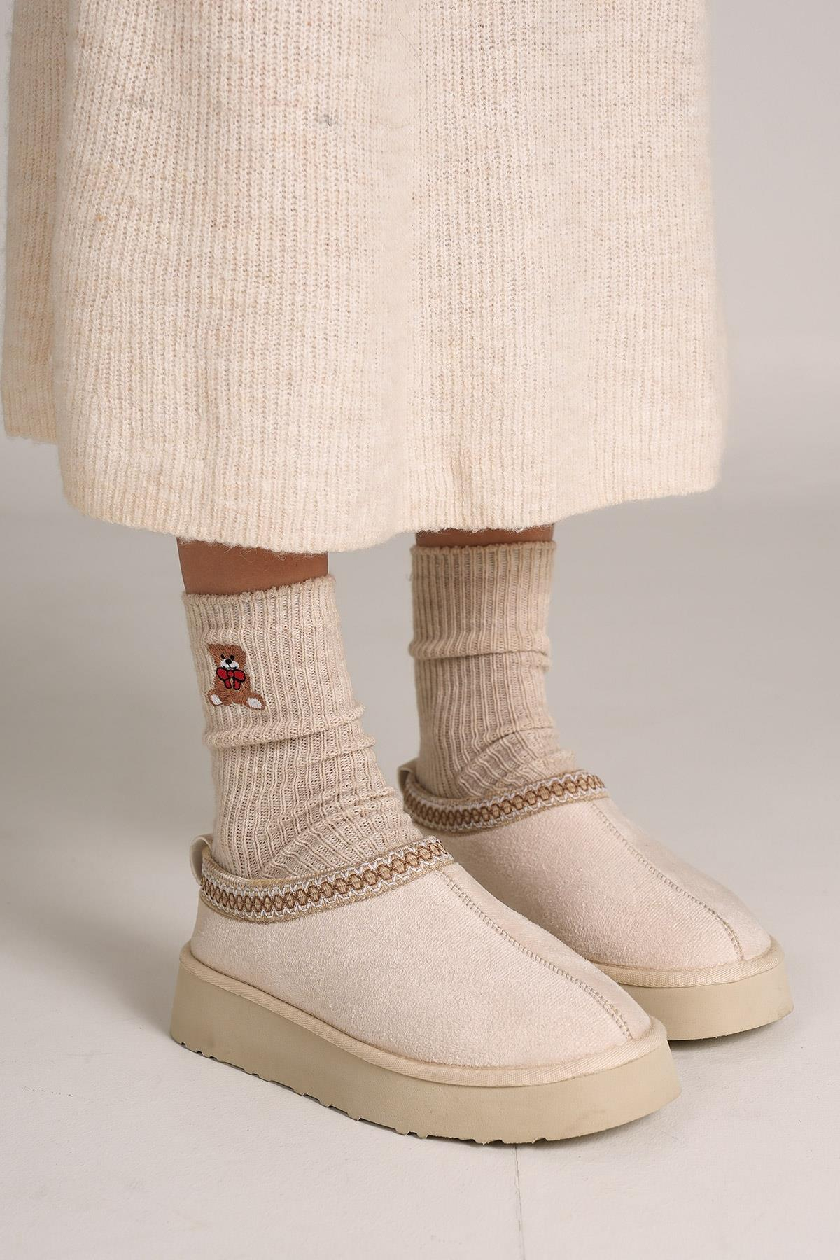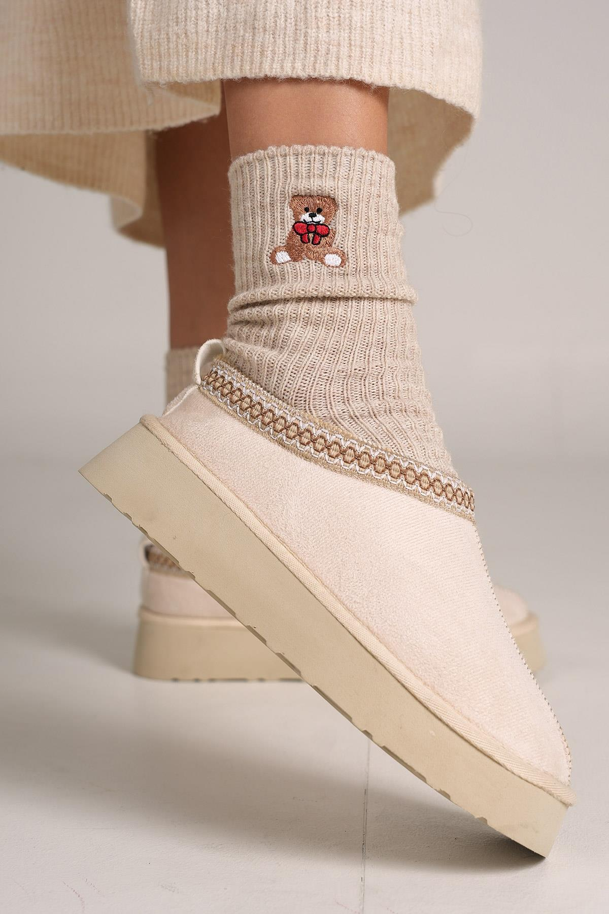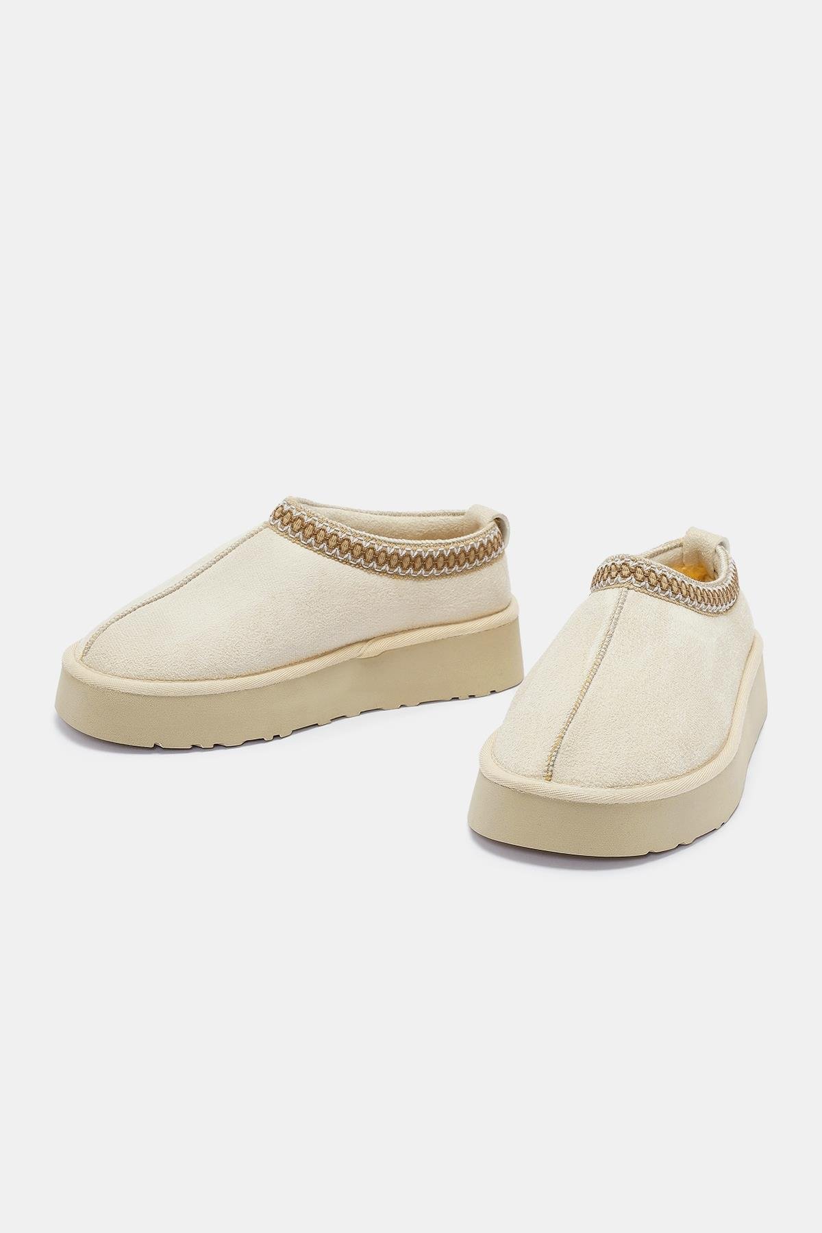 • Detaylar : İç kısımdaki yumuşak kürk astar, ayakların sıcak kalmasını sağlarken konfor sağlar. 3 cm topuk boyu, hafif bir esneklik sunarak ekstra rahatlık sağlar. Bej rengiyle doğal ve zarif bir görünüm kazandırır, sıcak dokusuyla kış kombinlerine uygundur.