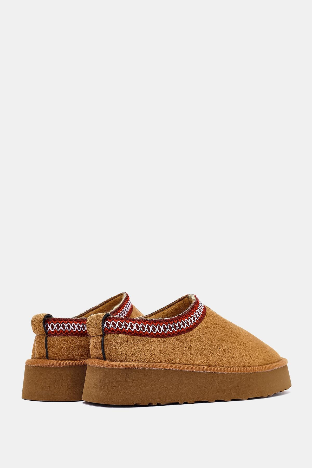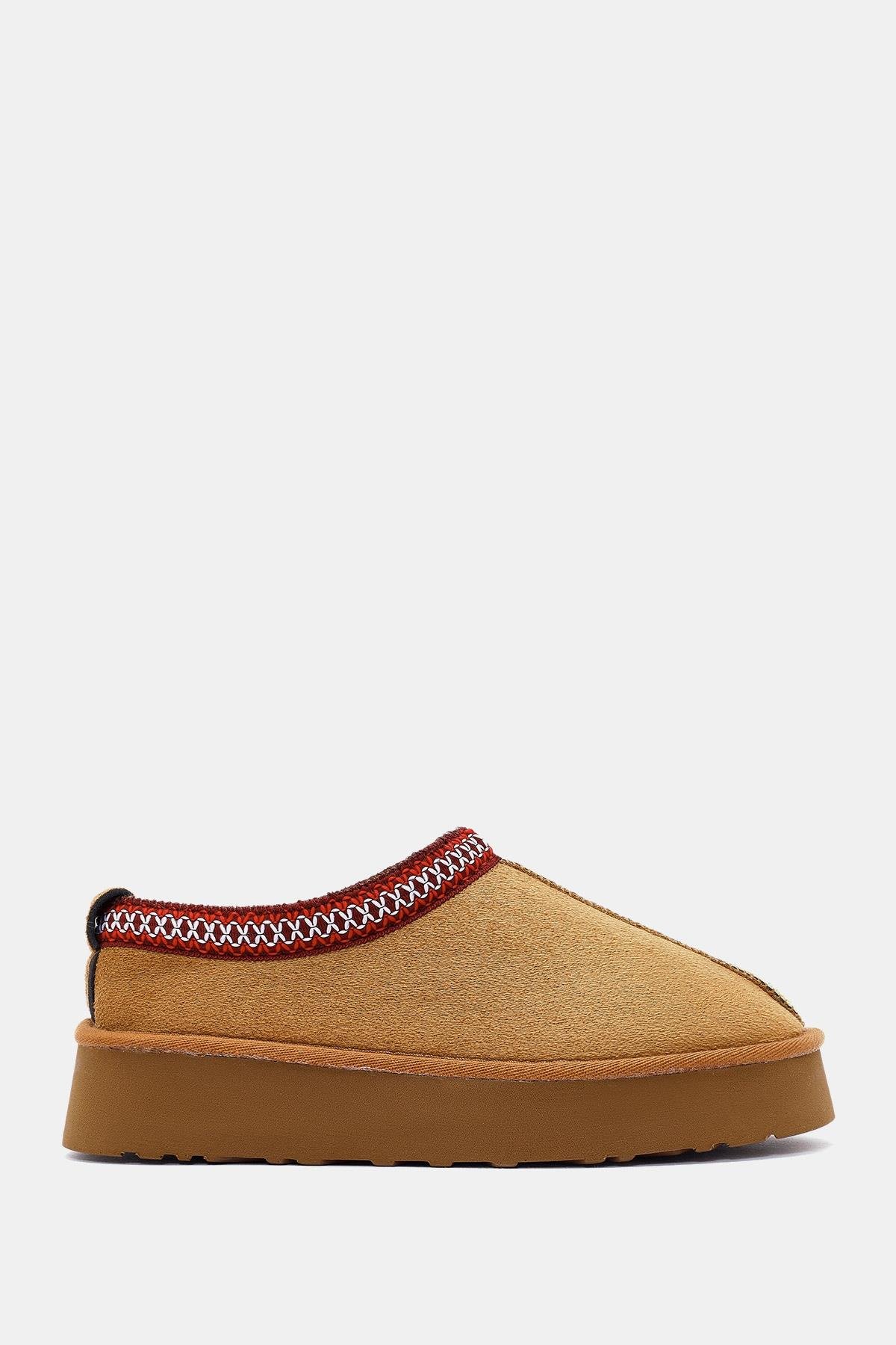 • Detaylar : İç kısımdaki yumuşak kürk astar, ayakları sıcak tutan ekstra konfor sunar. 3 cm topuk boyu, hafiflik sağlayarak rahatlık sunar. Camel rengi, terliğe doğal ve sıcak bir görünüm katar, kış kombinleriyle uyumlu bir dokunuş sağlar.