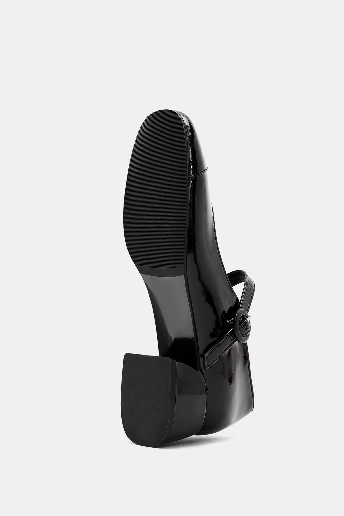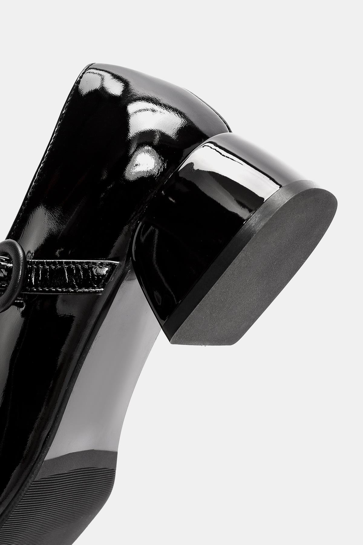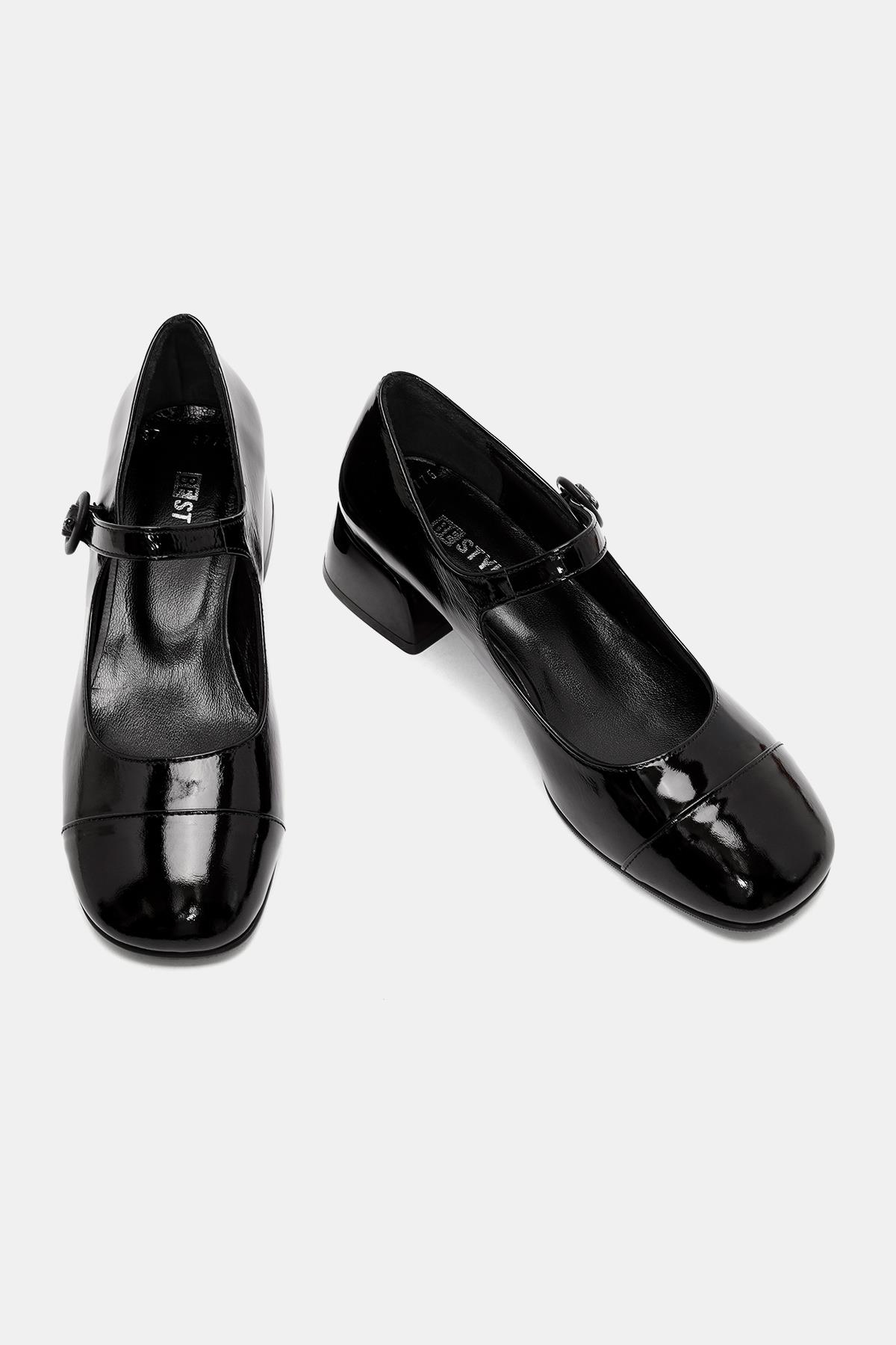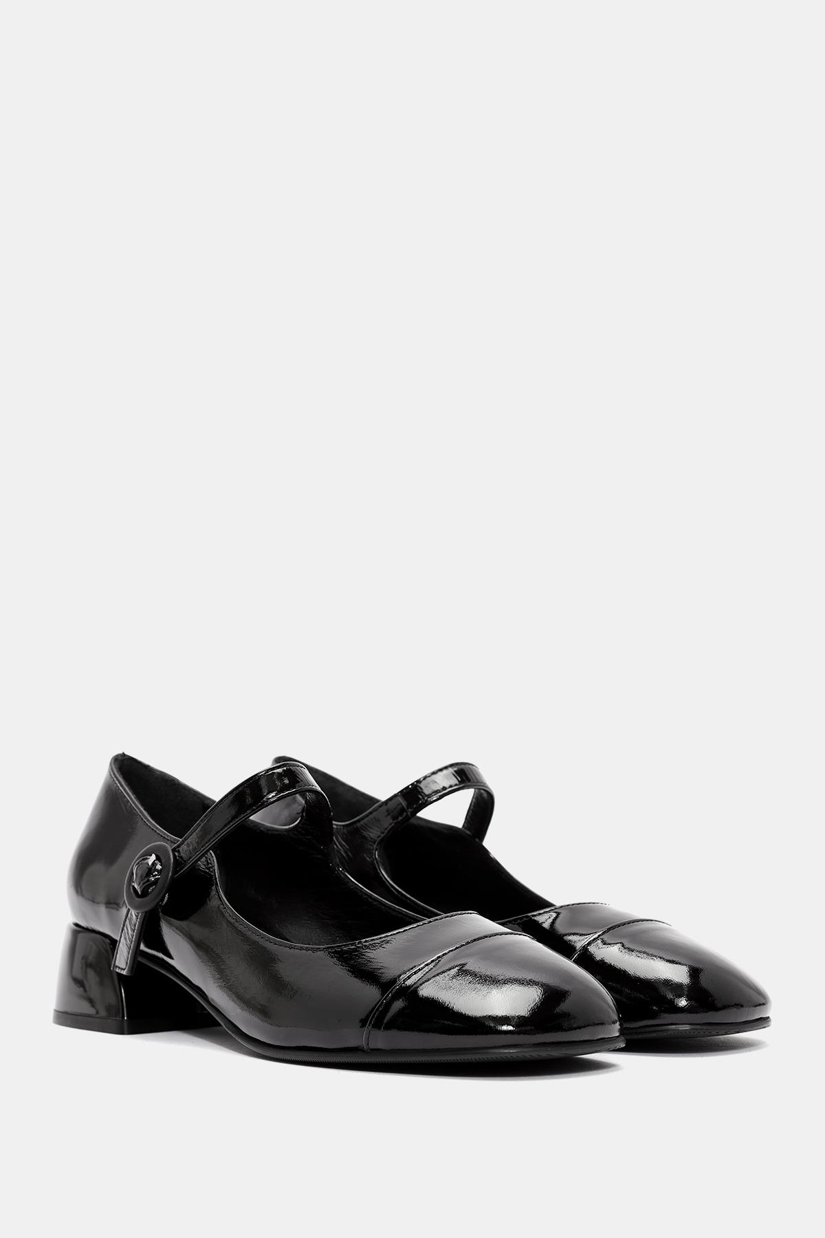 Dadi Kadın Siyah Gerçek Deri Bantlı Mary Jane Kısa Topuklu Ayakkabı
