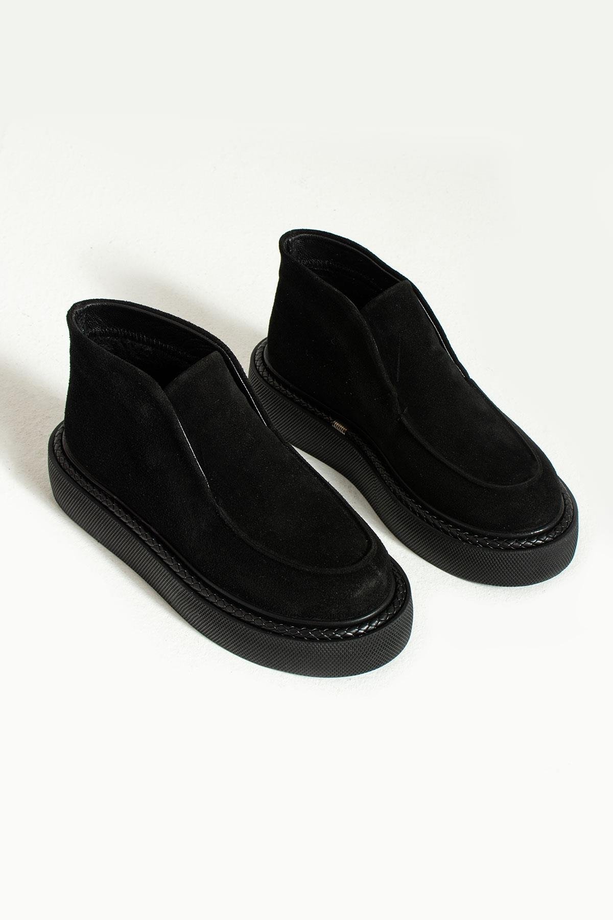Dublin Kadın Siyah Gerçek Süet Deri Kalın Tabanlı Bot, gerçek süet derinin lüks dokusunu ve siyah rengin zamansız şıklığını bir araya getiriyor. Bu bot, kalın tabanıyla stilinize modern ve cesur bir dokunuş katarak her adımda konforu garanti eder. İç kısmındaki yumuşak peluş astar, soğuk günlerde ayağınızı sıcak tutarken rahat bir kullanım sunar.