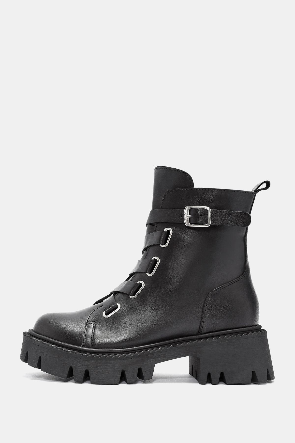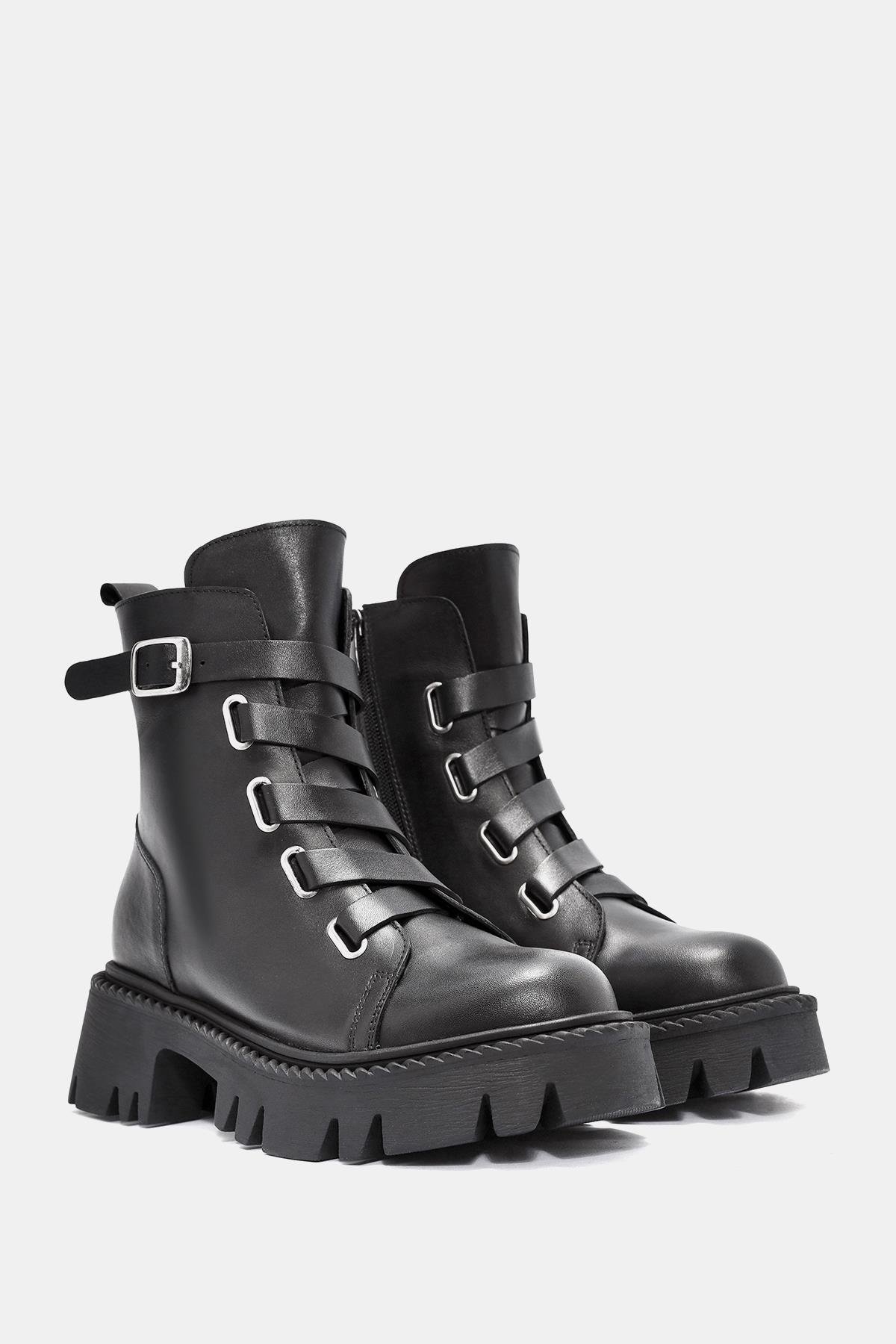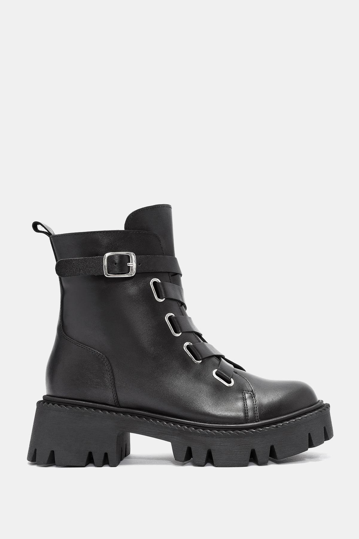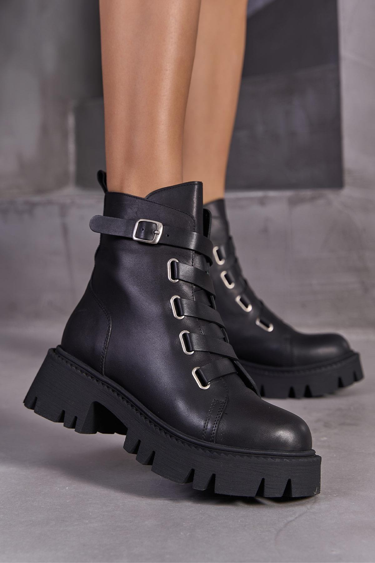 Elista Kadın Siyah Bantlı Gerçek Deri Kalın Tabanlı Bot (OTS2171-Siyah)