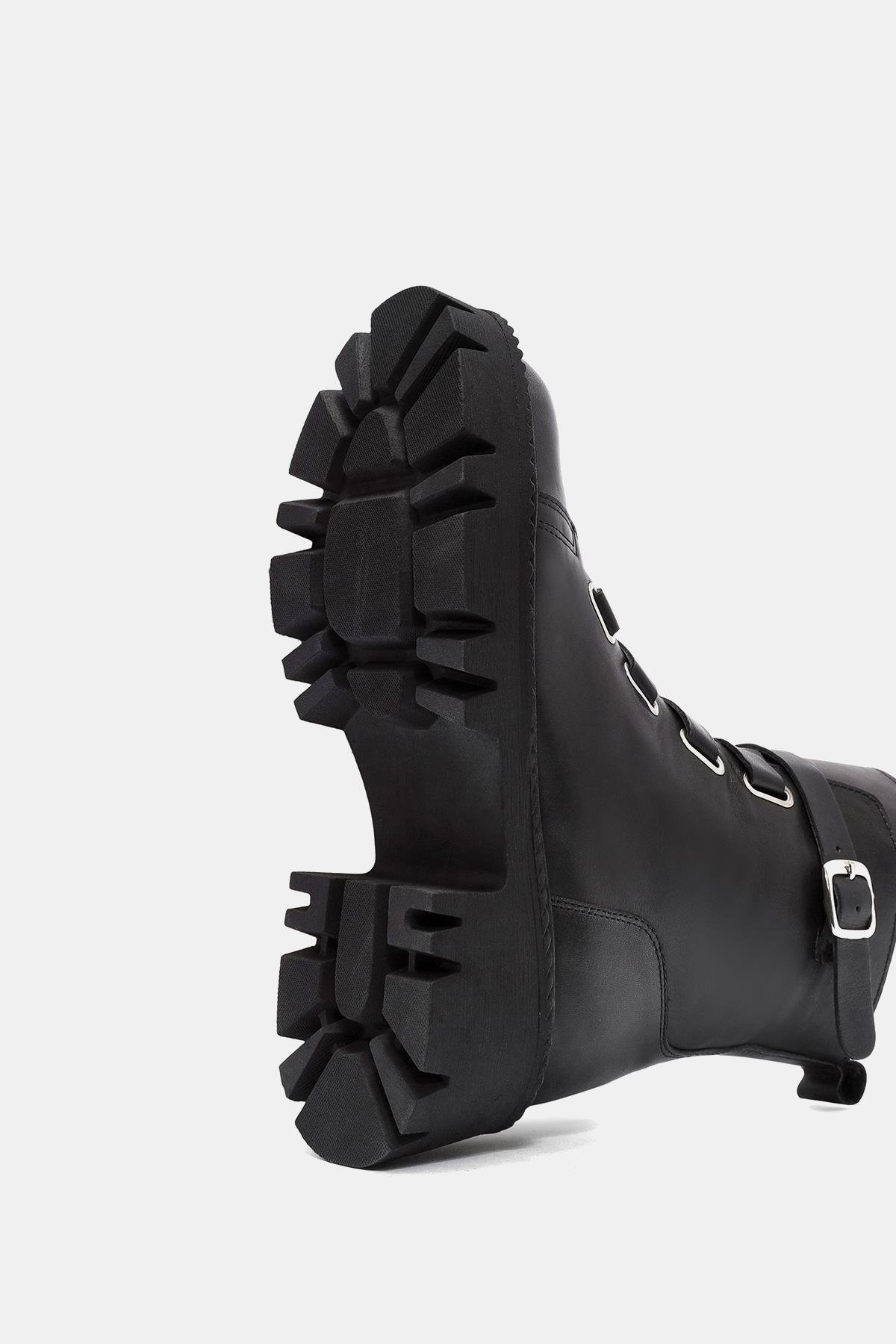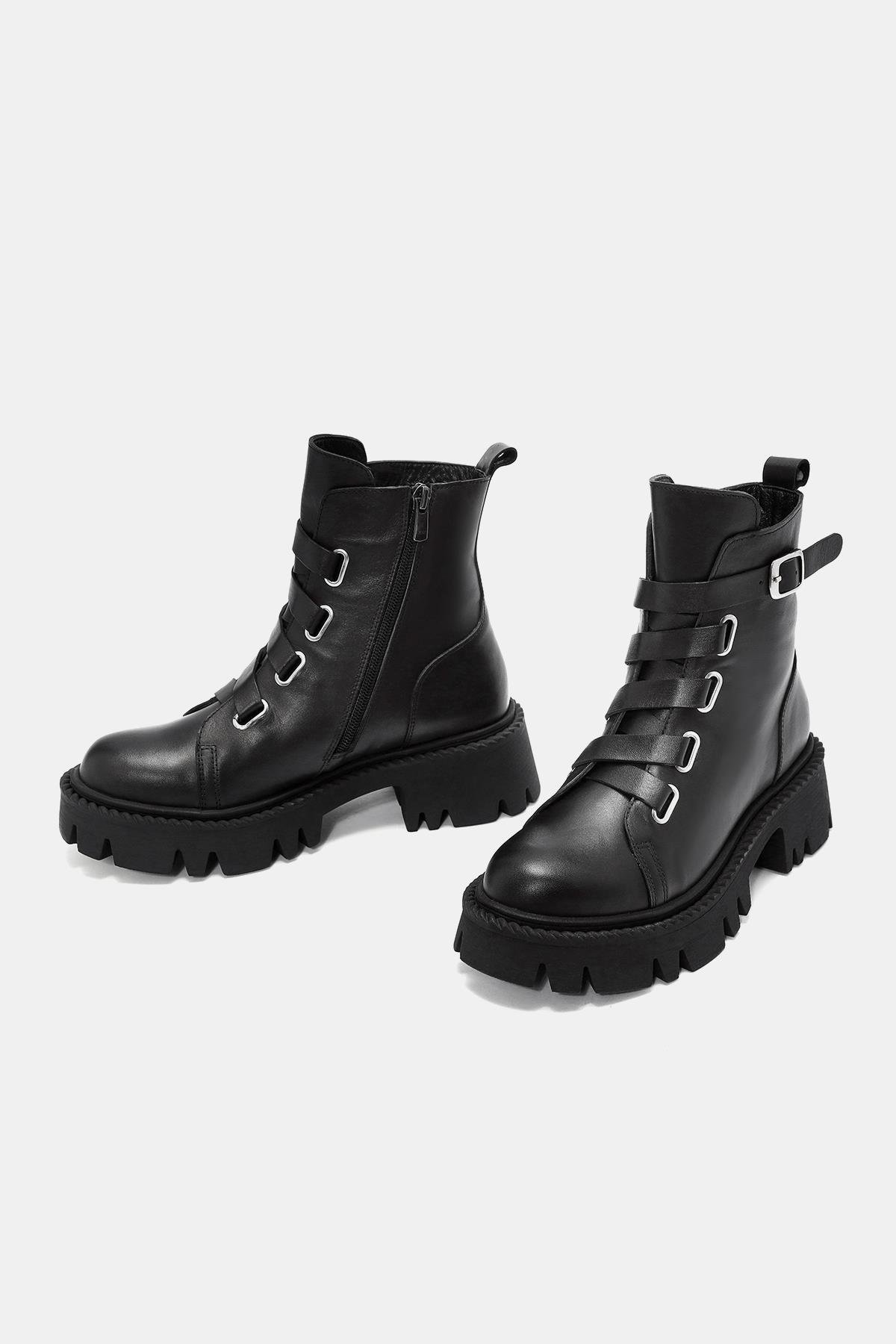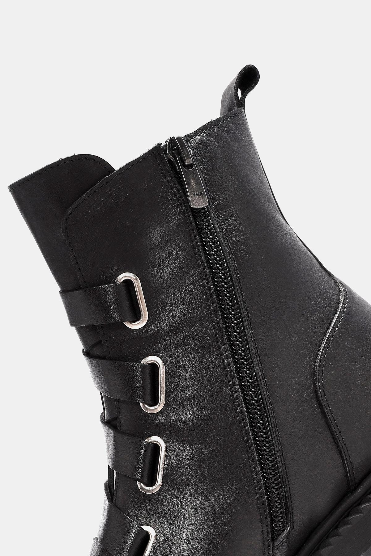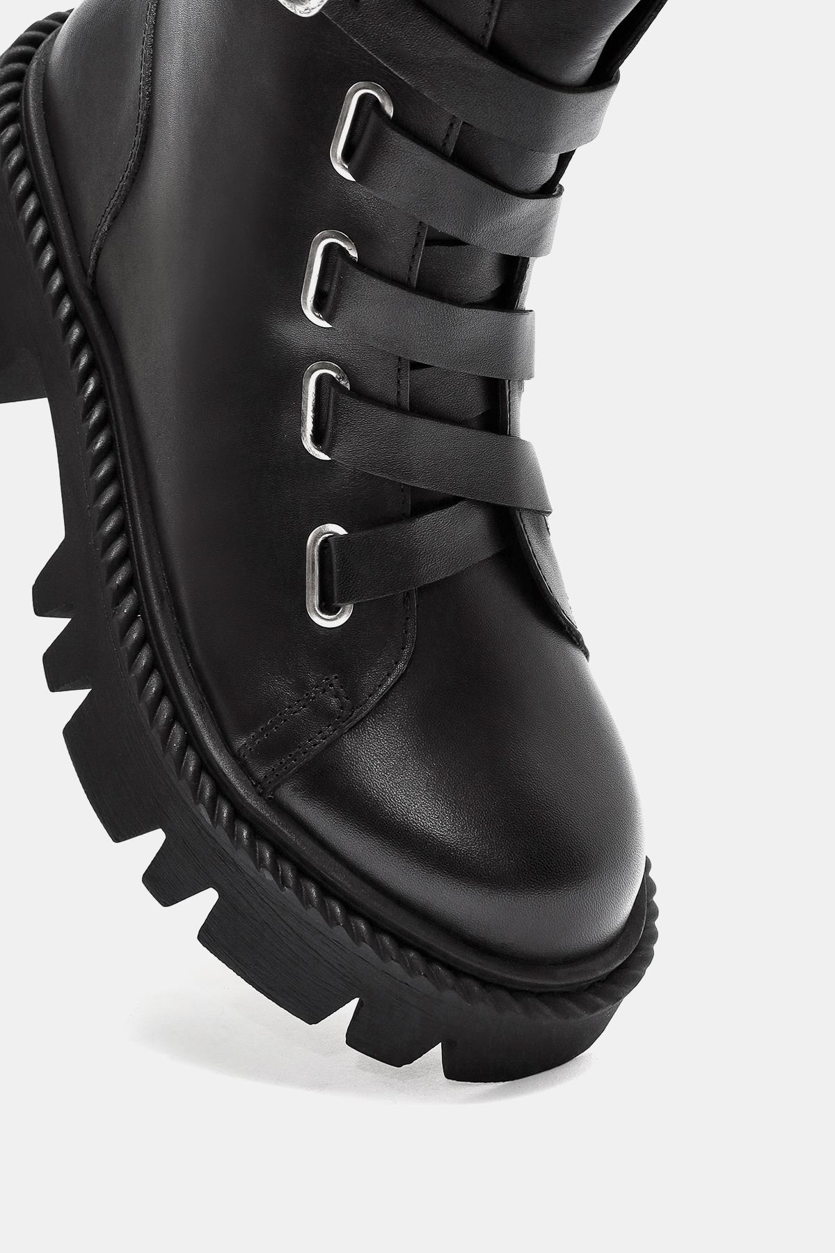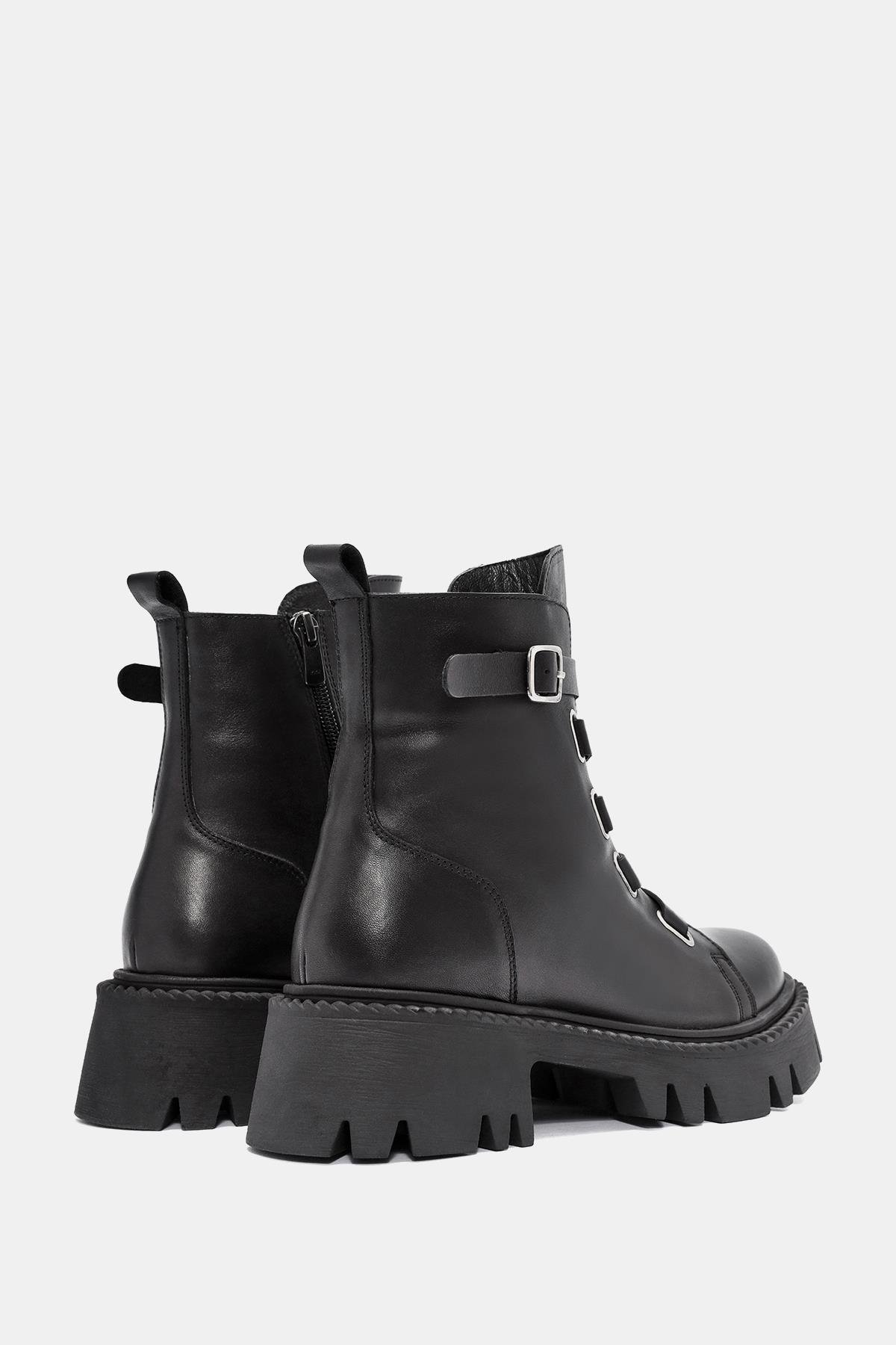 Elista Kadın Siyah Bantlı Gerçek Deri Kalın Tabanlı Bot (OTS2171-Siyah)