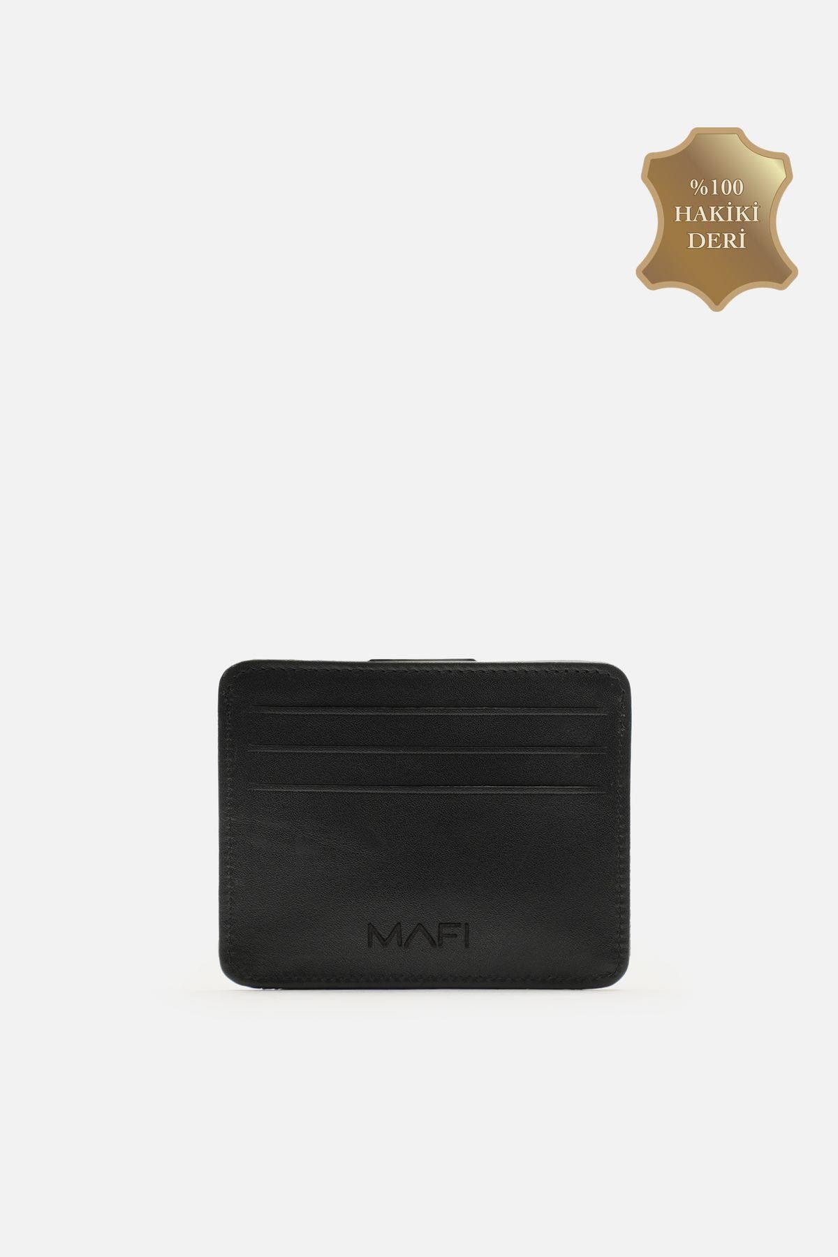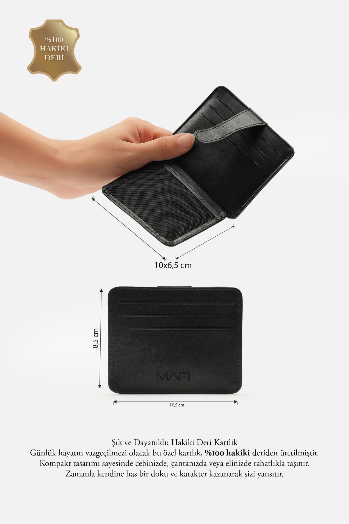 Enduro Katlanır Hakiki Deri Kayışlı Kartlık – Kimlik & Sürücü Belgesi Bölmeli (BSK-02993/Siyah Cilt Deri)
