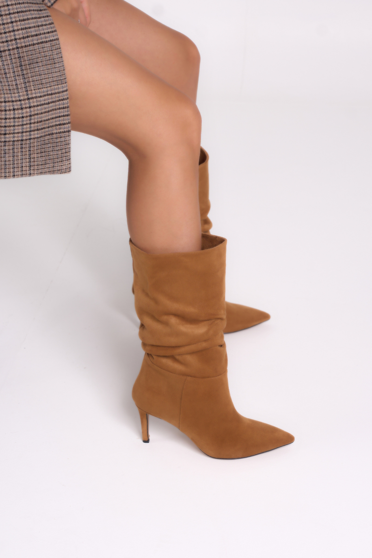 Fancy Kadın Camel Süet Topuklu Çizme, camel rengin doğal ve sıcak tonlarıyla, her kombine sofistike bir dokunuş katar. Suni süet malzeme, çizmeye zarafet ve lüks bir görünüm kazandırırken, 8 cm'lik topuk boyu ise feminen ve şık bir duruş sunar. Neolit taban, çizmeye hem dayanıklılık hem de rahatlık katarken, iç kısmındaki sıcak astar, soğuk günlerde ayağınızı sıcak tutar.