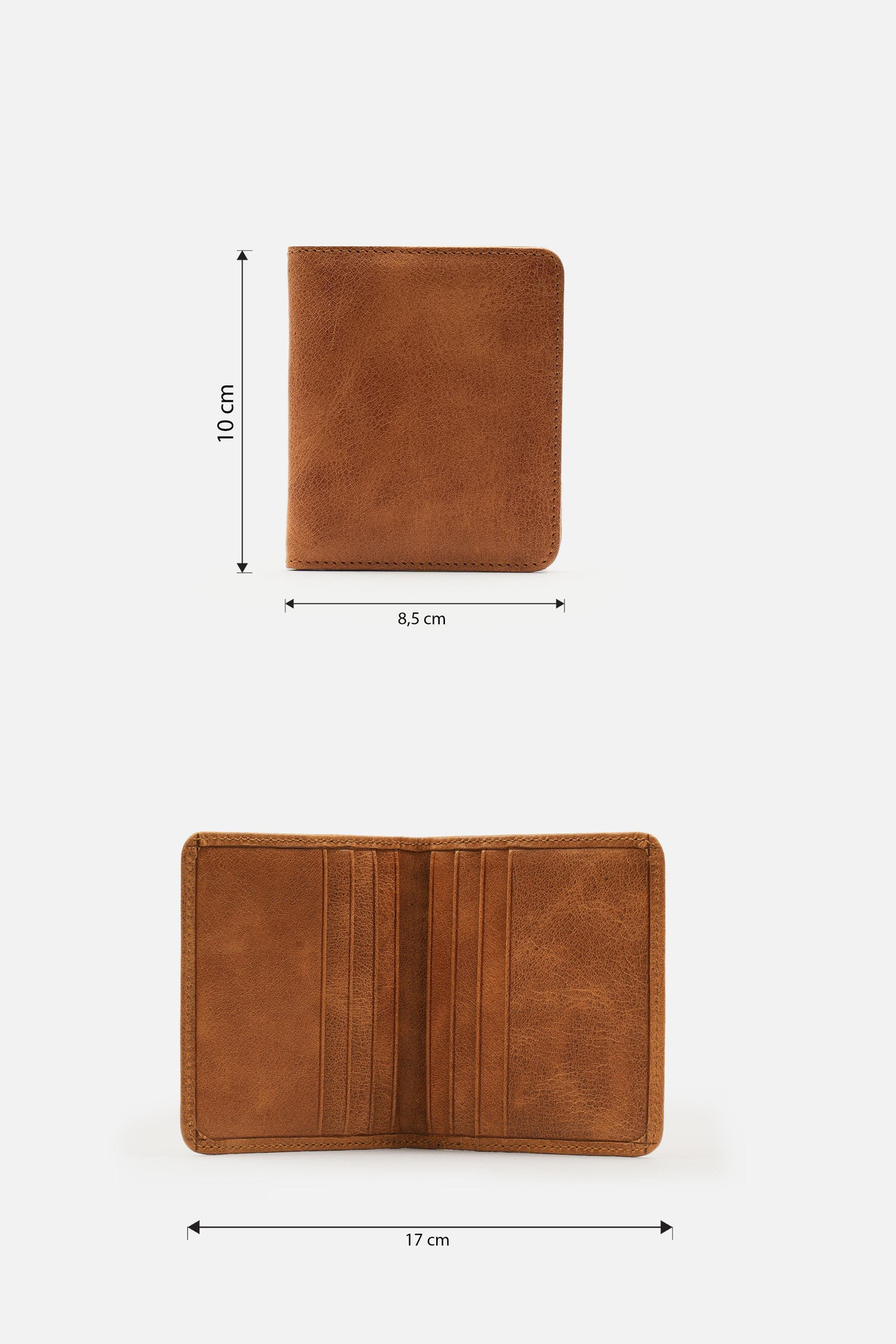 Gerçek Deri Cepli Açılabilir Kartlık – 8 Kart Bölmesi, 2 Kağıt Para Gözü, El Yapımı – Unisex (BSC-02995/Taba)