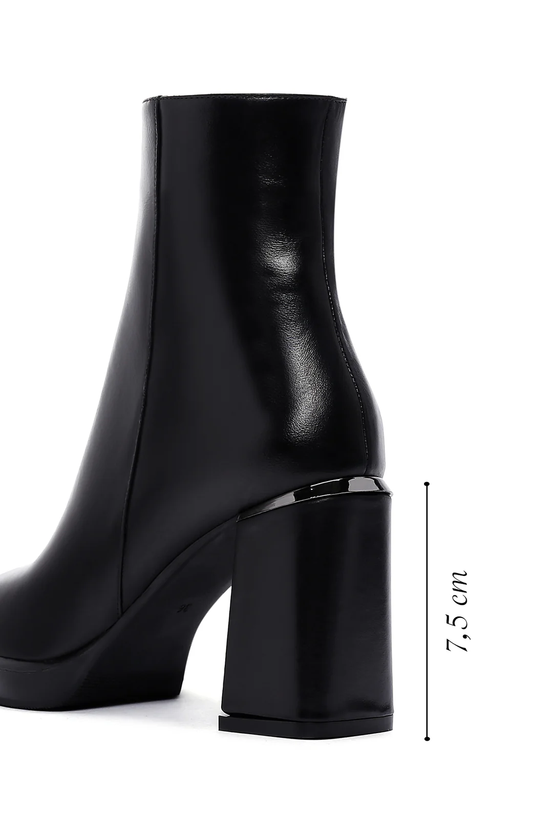 Topuk: Yaklaşık 7,5 cm blok topuk, feminen şıklık ve dengeli yürüyüş
