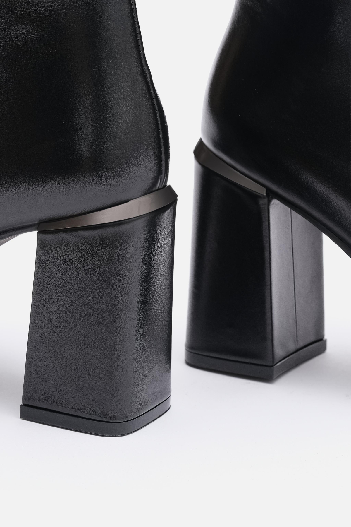 LUDO, rugan derinin sofistike ışıltısını güçlü blok topukla buluşturarak hem gündüz hem gece kombinlerinizi tamamlayacak zamansız bir tasarım sunar.
