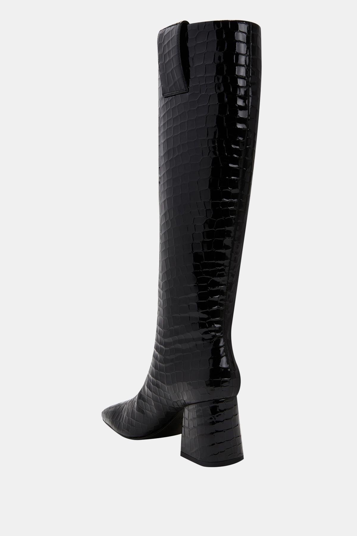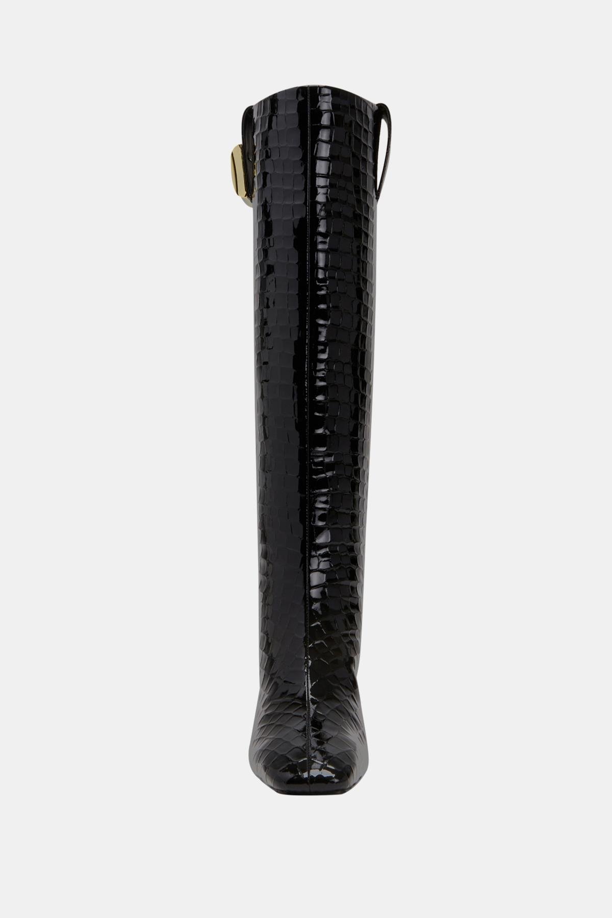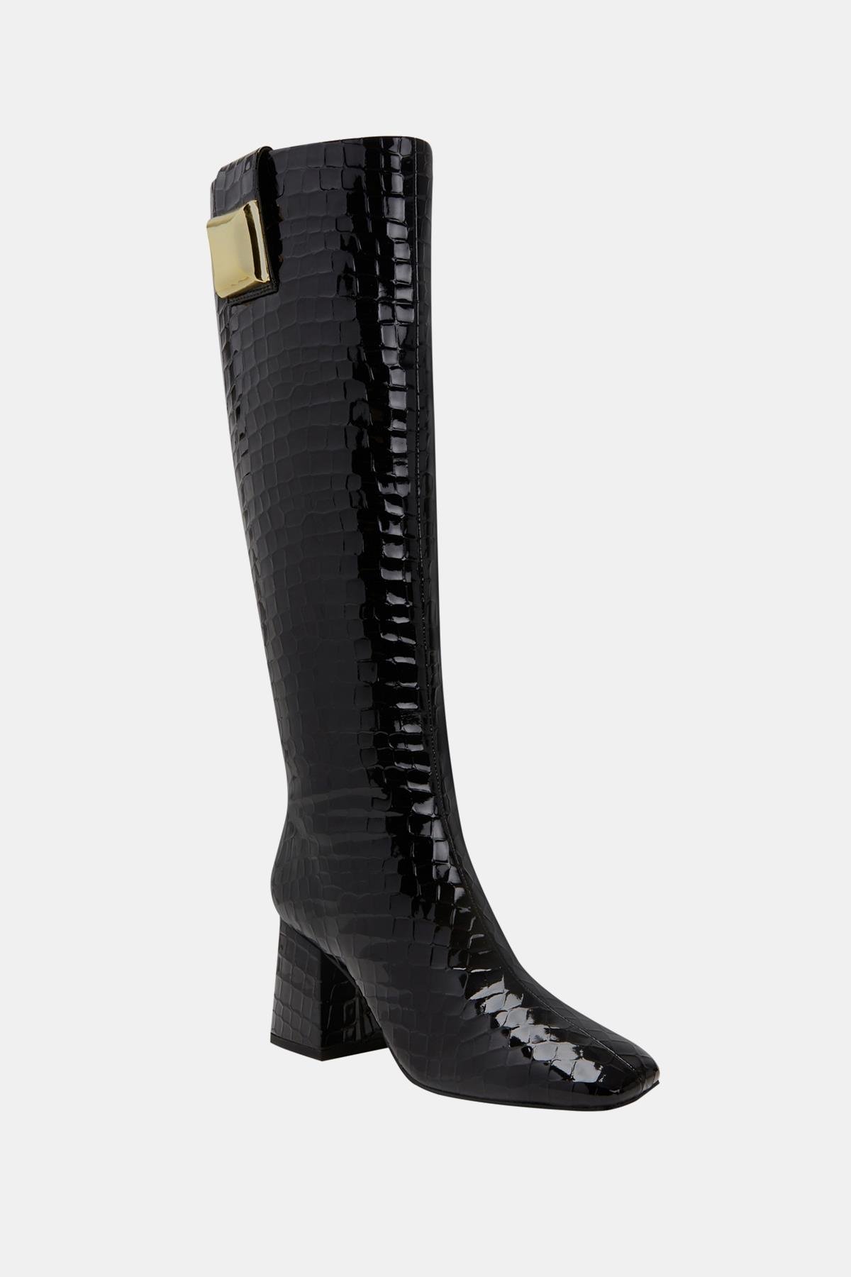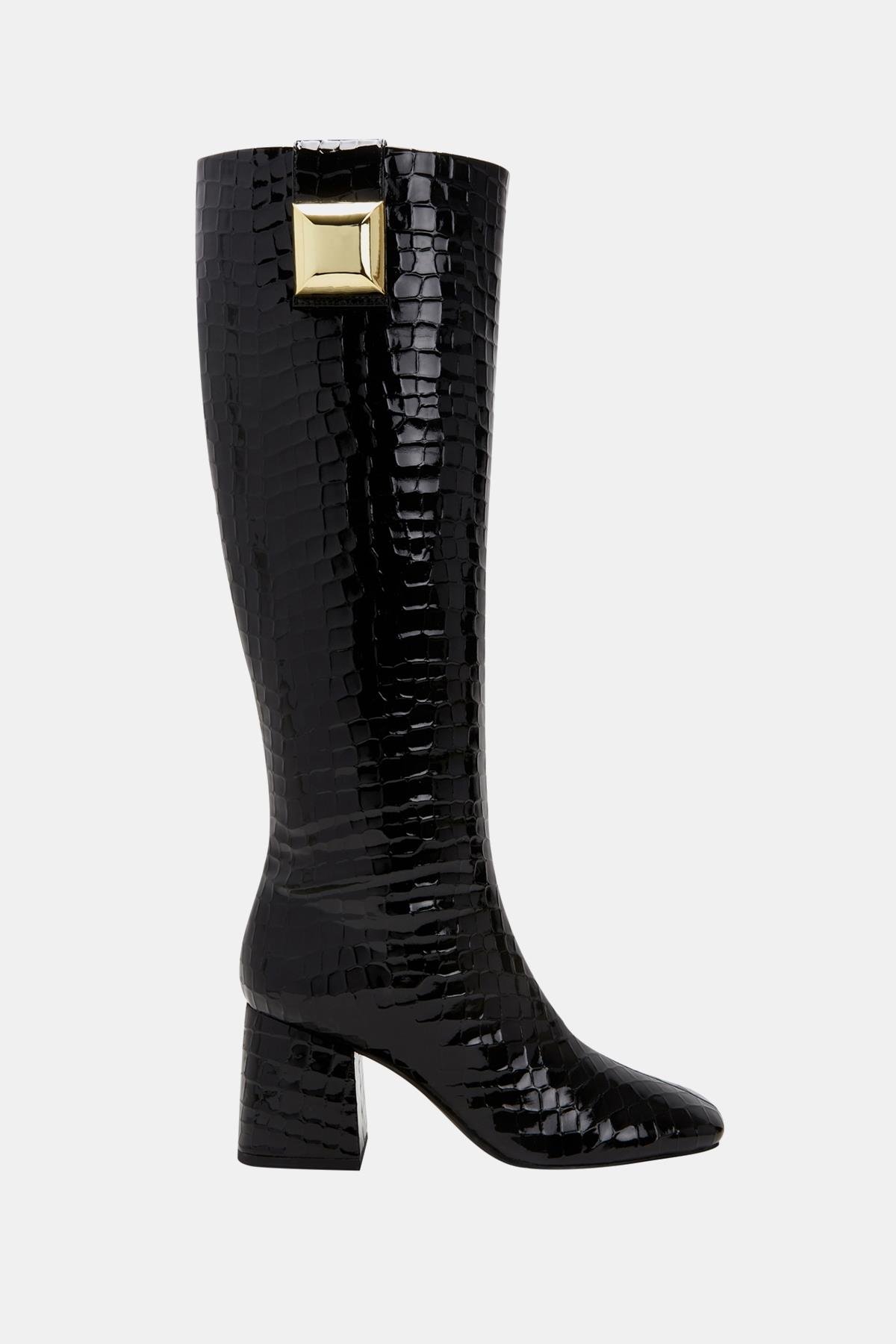 Katy Perry Geminni Kadın Siyah Croco Topuklu Çizme, siyahın asaletini croco deseniyle birleştirerek, klasik ve zamansız bir görünüm sunar. 7 cm'lik blok topuk, hem şık hem de rahat bir yürüyüş sağlar, gün boyu konforunuzdan ödün vermeden yükseklik kazandırır. Yumuşak kare burun tasarımı modern bir dokunuşla, ayağınıza geniş bir alan sunar.