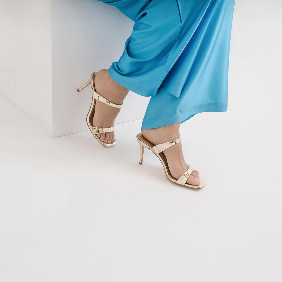 Katy Perry The Analia Çift Bantlı Kadın Altın İnce Topuklu Terlik (KP3436)