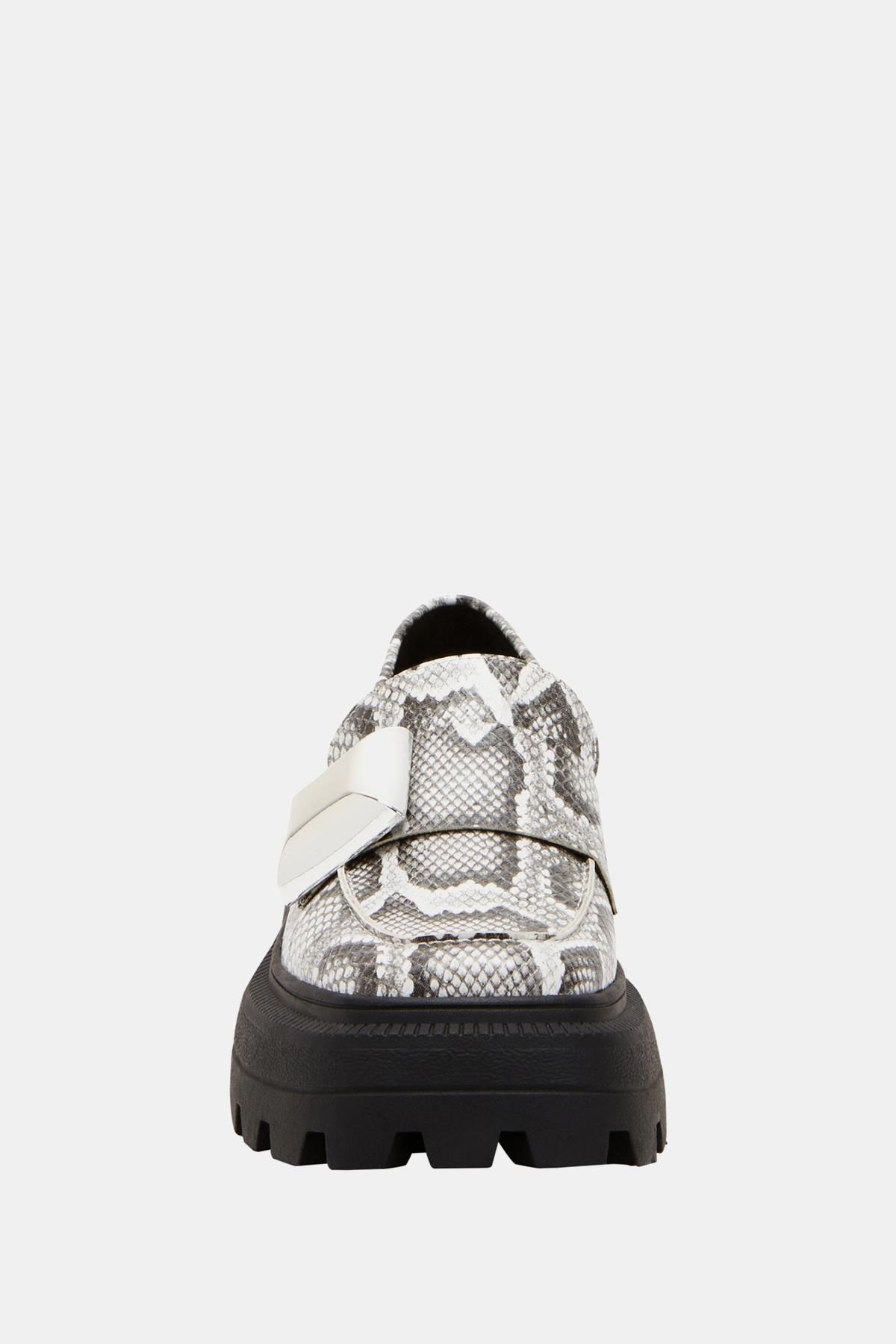 Bu loafer, hem iş hem de sosyal hayatınızda kombinlerinizi tamamlayacak çok yönlü bir ayakkabıdır. İster iş toplantılarında ister hafta sonu gezilerinde bu loafer ile şıklığınızı konuşturabilirsiniz. Yılan baskılı deseni ve metalik detayları ile bu ayakkabı, moda dünyasında stil sahibi kadınlar için vazgeçilmez bir parçadır.