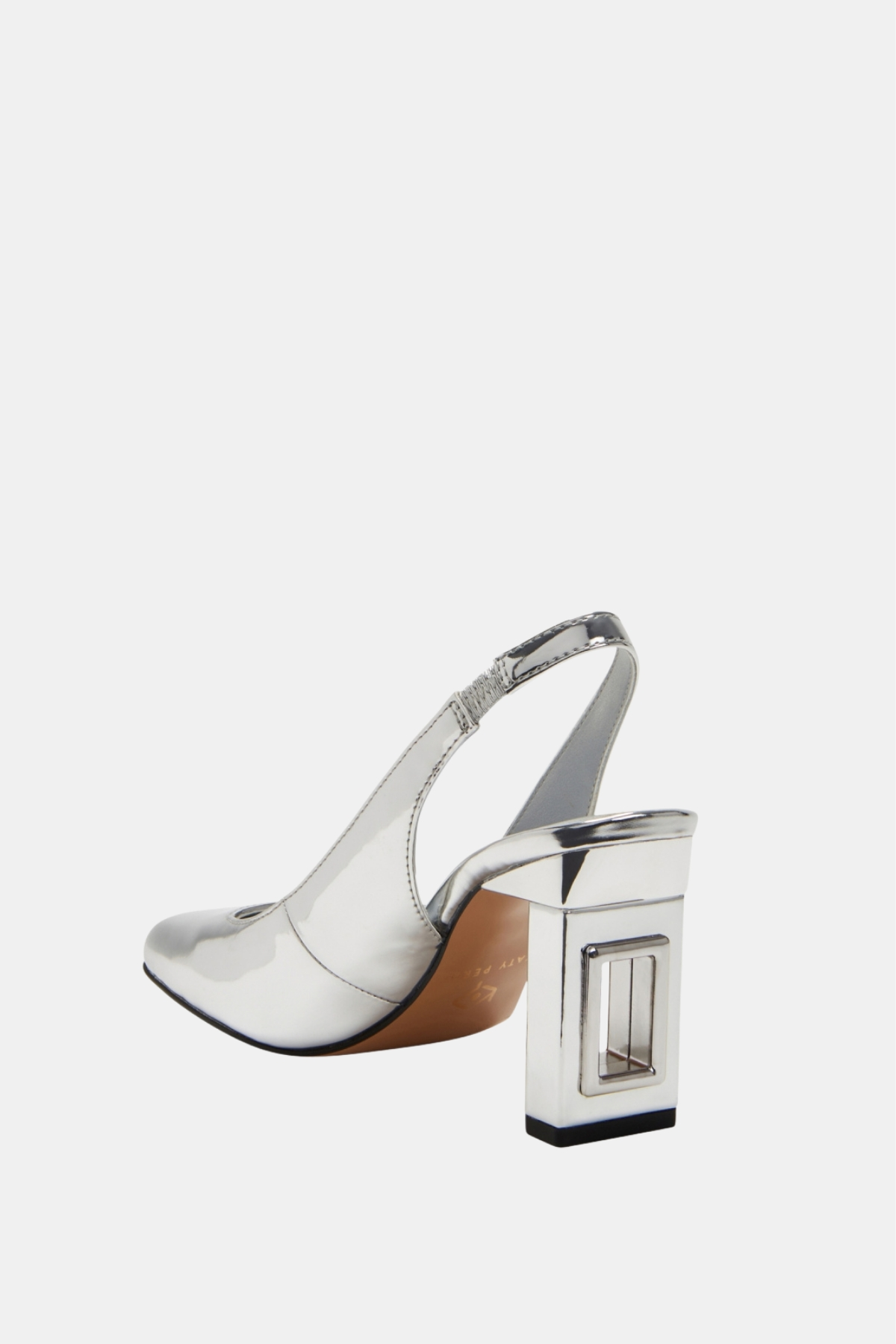 Katy Perry'nin Mirror Nappa malzemesiyle tasarlanan Hollow Topuklu Ayakkabı, konfor ve stili birleştiren orta blok topuğa sahiptir ve demir oyuk topuk detayı ile desteklenmiştir..