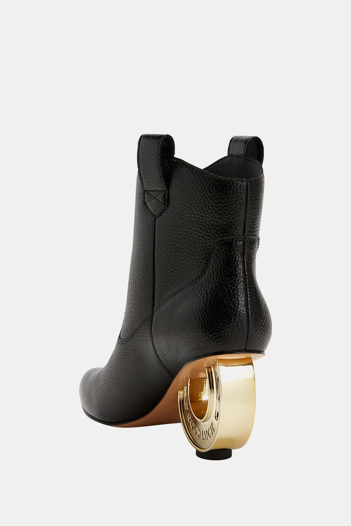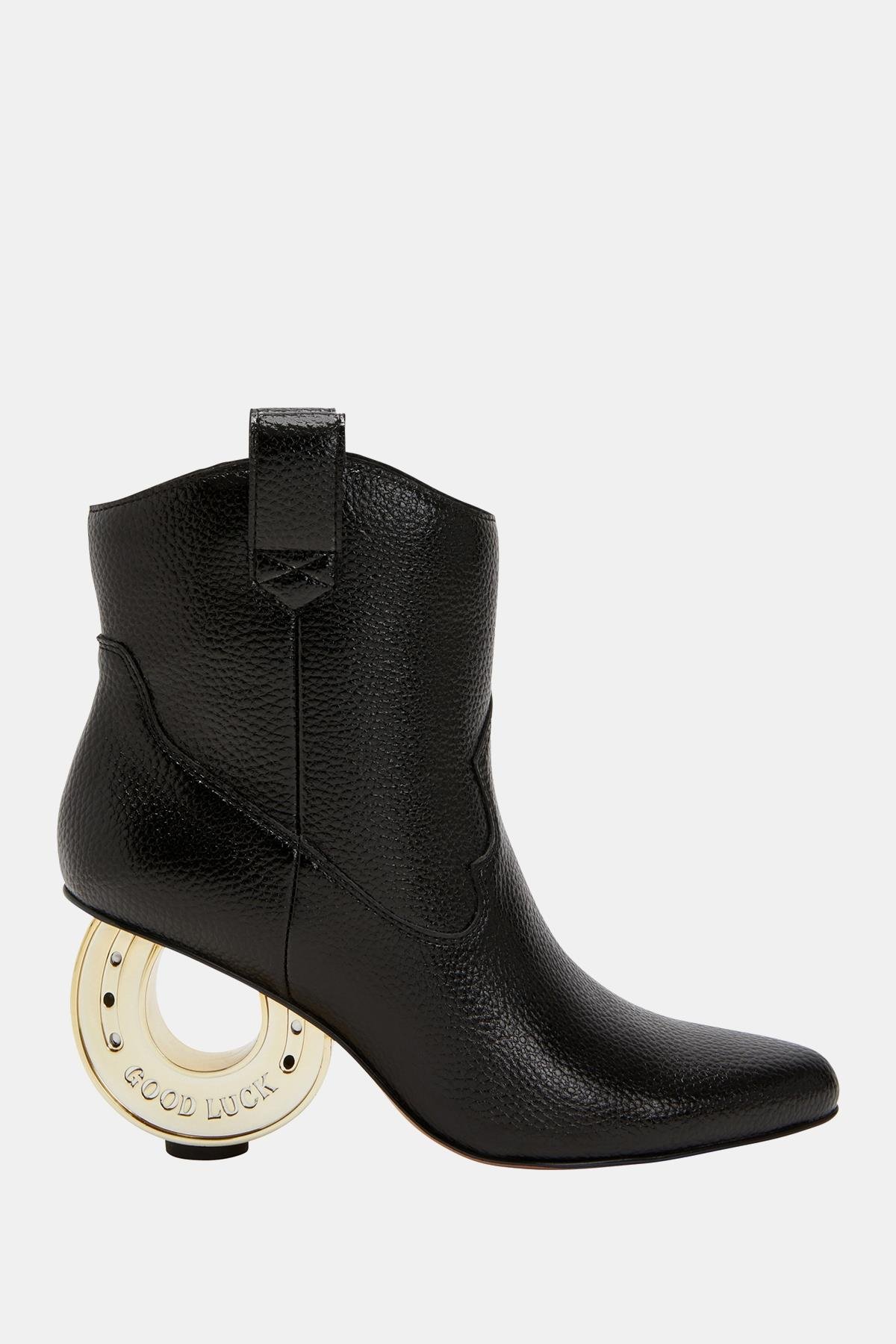 Katy Perry The Horshoee Kadın Siyah Şans Nalı Topuklu Bot, Katy Perry koleksiyonunun ikonik parçalarından biri olarak zarafet ve özgün tasarımı bir araya getiriyor. Softy Tumbled malzemesiyle hazırlanan bu bot, güçlü duruşu ve çekici tasarımıyla stilinizi tamamlar. Nal şeklindeki topuk ve sivri burun tasarımı, her adımda cesur ve dikkat çekici bir stil sunar.