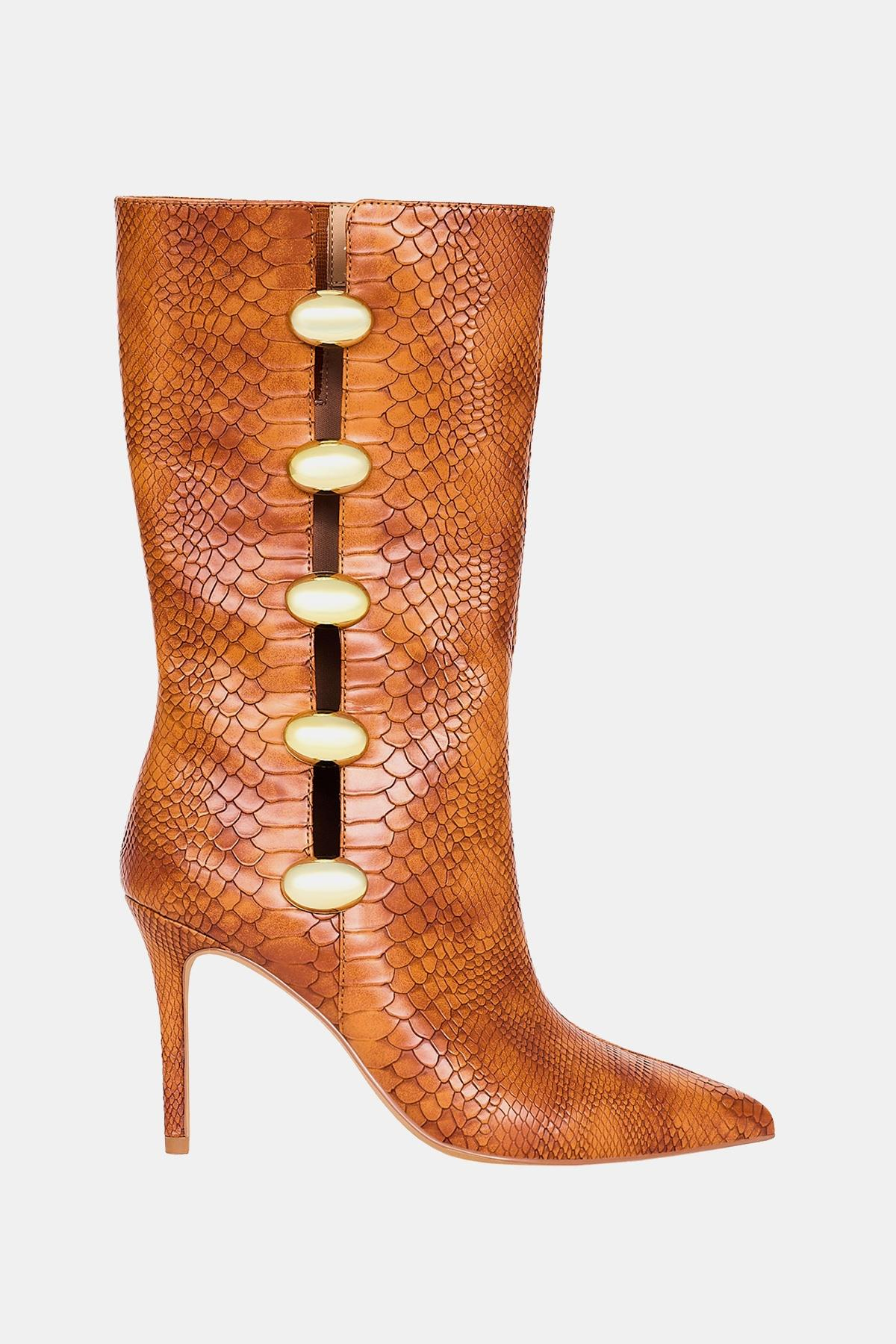 Katy Perry The Revival Ornamet Kadın Taba Yılan Baskılı Topuklu Çizme (KP3313-Nutshell)