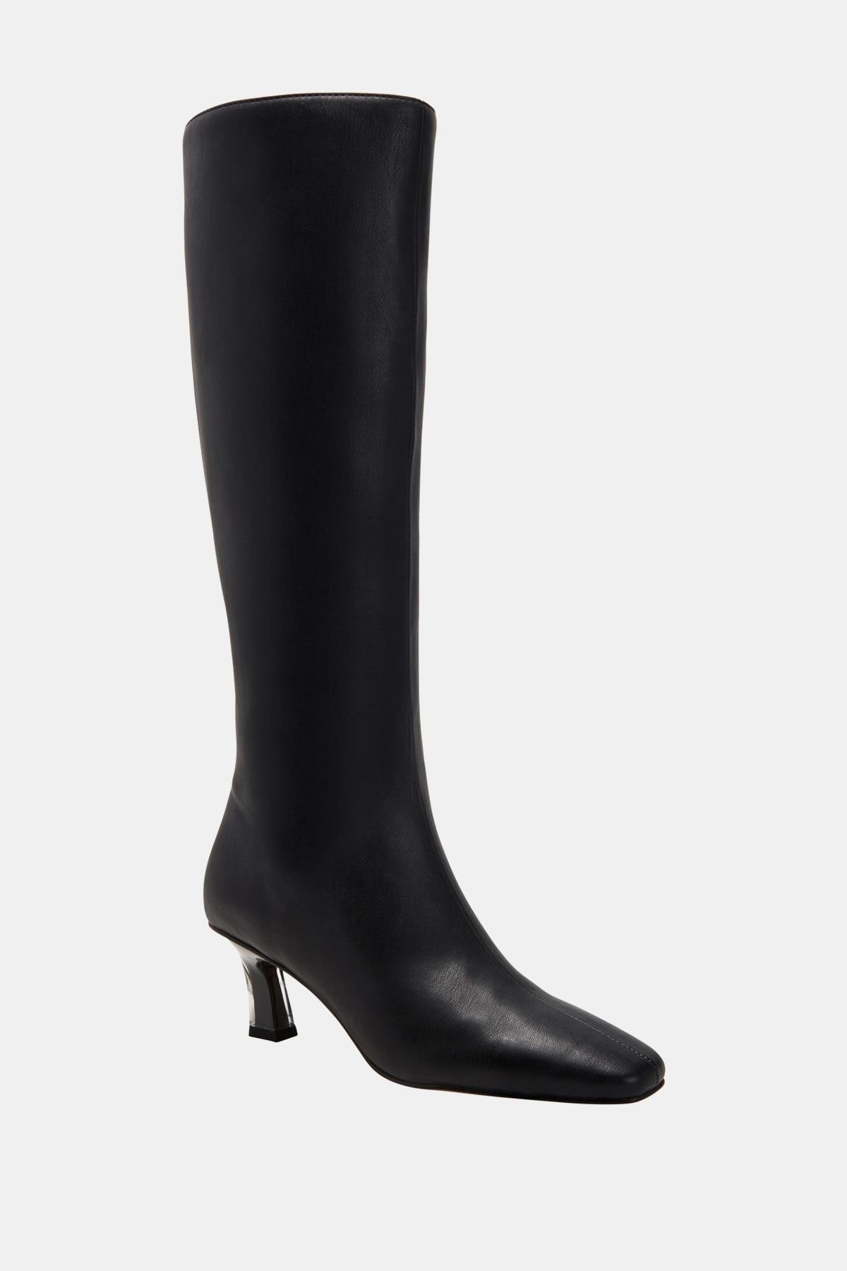 5 cm'lik yavru topuk, ayağınıza zarif bir yükseklik kazandırırken, yumuşak kare burun tasarımı ayakkabının estetik çekiciliğini artırır. Diz hizasındaki silueti ile hem modern hem de klasik bir görünüm sunar. TPU taban, farklı zeminlerde sağlam bir tutuş sağlayarak güvenli ve rahat bir yürüyüş deneyimi sunar.