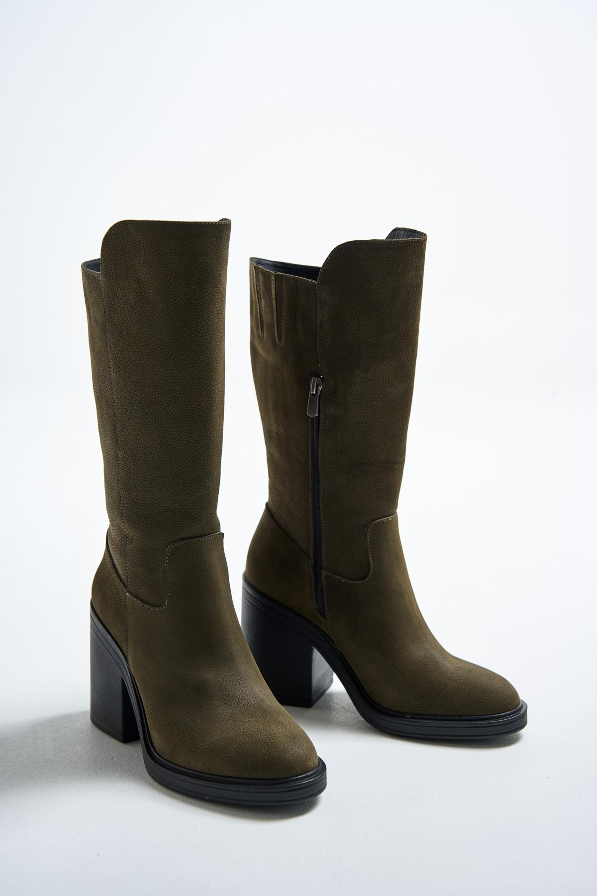 Lana Kadın Haki Gerçek Deri Topuklu Kadın Çizme, özgün bir tarz ve üstün kaliteyi bir araya getiriyor. Bu çizim, şık ve düzenli bir görünüm sunarken, nubuk deri malzemesiyle ayaklarına rahatlık sağlıyor. Haki rengi, doğallığı ve zarafetinin ön planı çıkarırken, bol miktarda tasarım ise kadınsı bir hava katıyor. Gündelik giyimden özel günlerdeki kombinlere kadar geniş bir kullanım alanına sahip olan Nubuk Lana Kadın Haki Gerçek Deri Topuklu Kadın Çizme, her zaman kalıcılığınıza zarafet ve şıklık katacak.