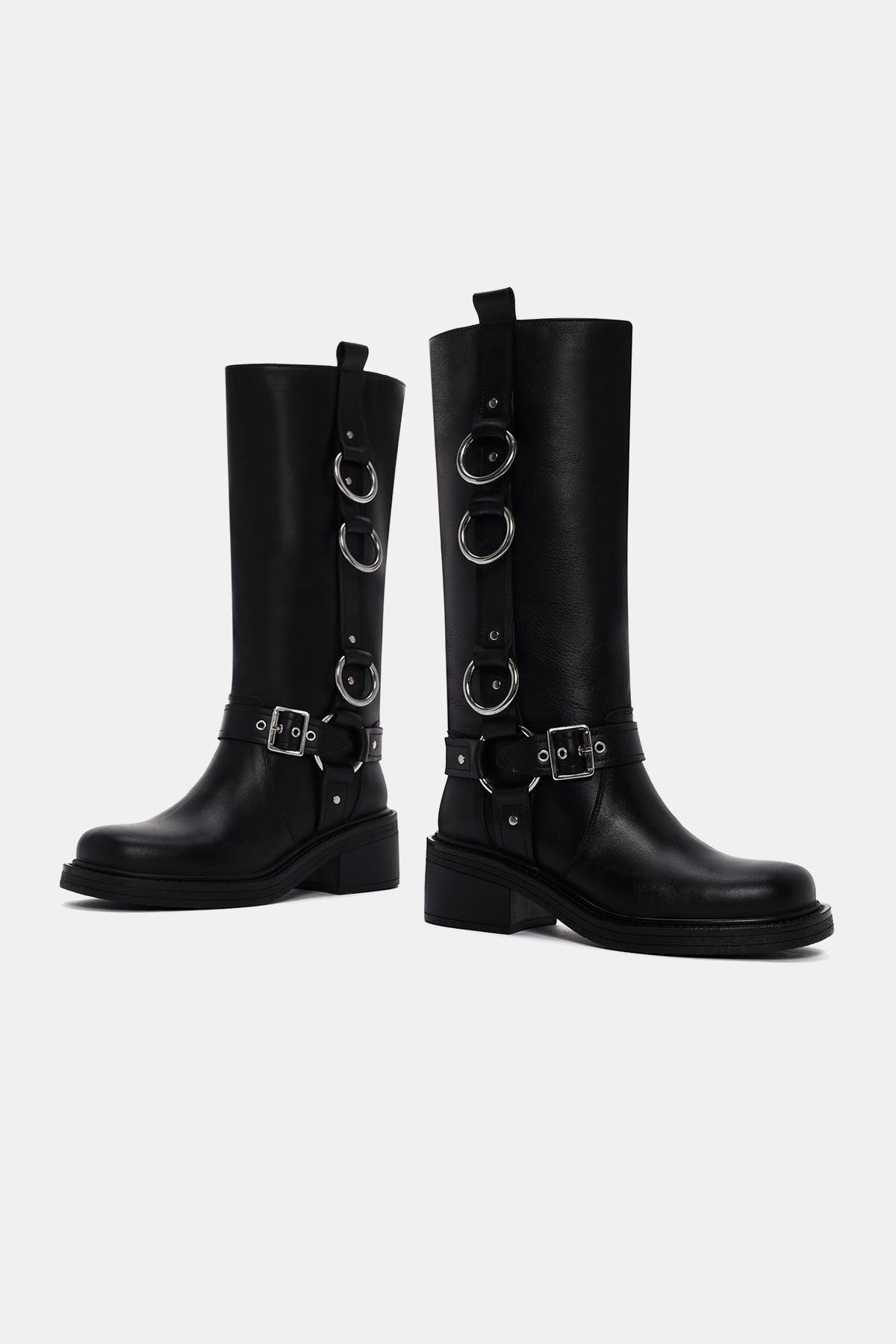 Bestyle markasının karakteristik tasarımlarından biri olan Lasso Kadın Siyah Halka Toka Detaylı Gerçek Deri Biker Çizme, cesur ve modern bir tarza sahiptir. Siyah rengin sade ve şık görünümü, çizmenin her tarza kolayca uyum sağlamasını sağlar. Halka toka detayları, çizmeye dinamik bir hava katarak öne çıkar ve tarzınızı vurgular. Gerçek deri malzemesi ise çizmenin dayanıklılığını ve kalitesini simgeler. Biker tarzının enerjisini ve özgürlüğünü yansıtan bu çizmeler, her adımda dikkat çekmenizi sağlar ve cesur tarzınızı ön plana çıkarır. Bestyle Lasso Kadın Siyah Halka Toka Detaylı Gerçek Deri Biker Çizme, güçlü ve iddialı kadınlar için mükemmel bir seçenektir.