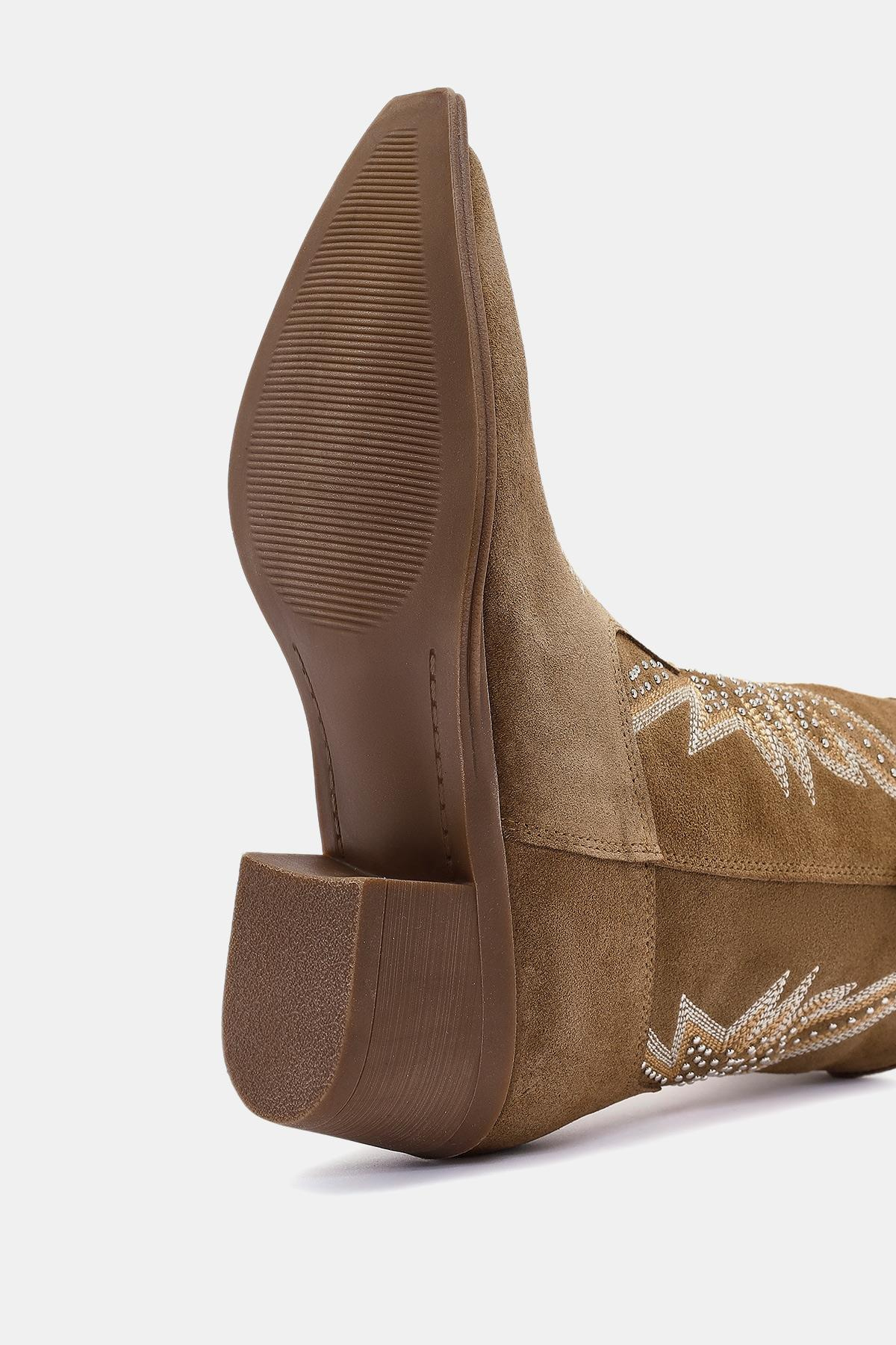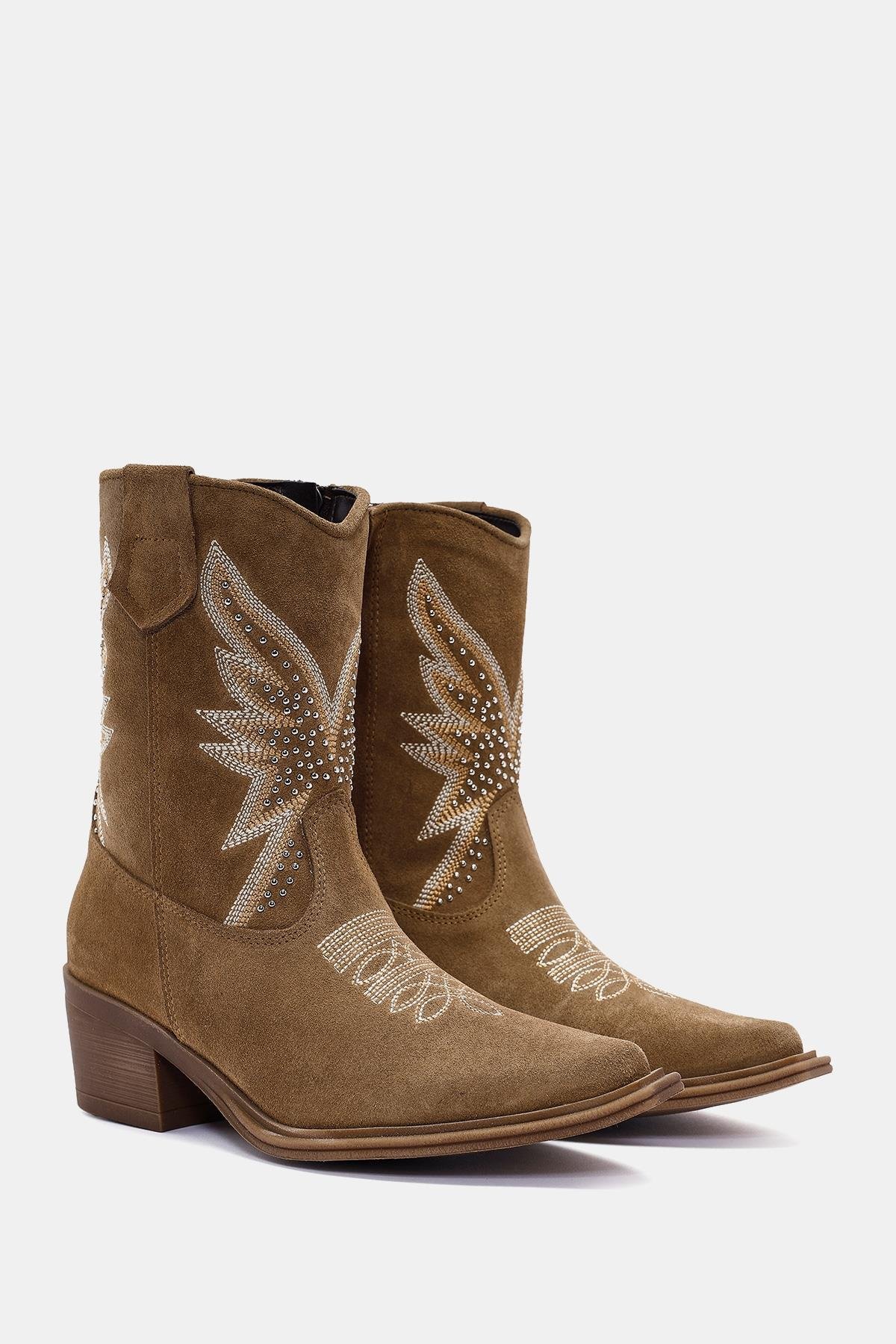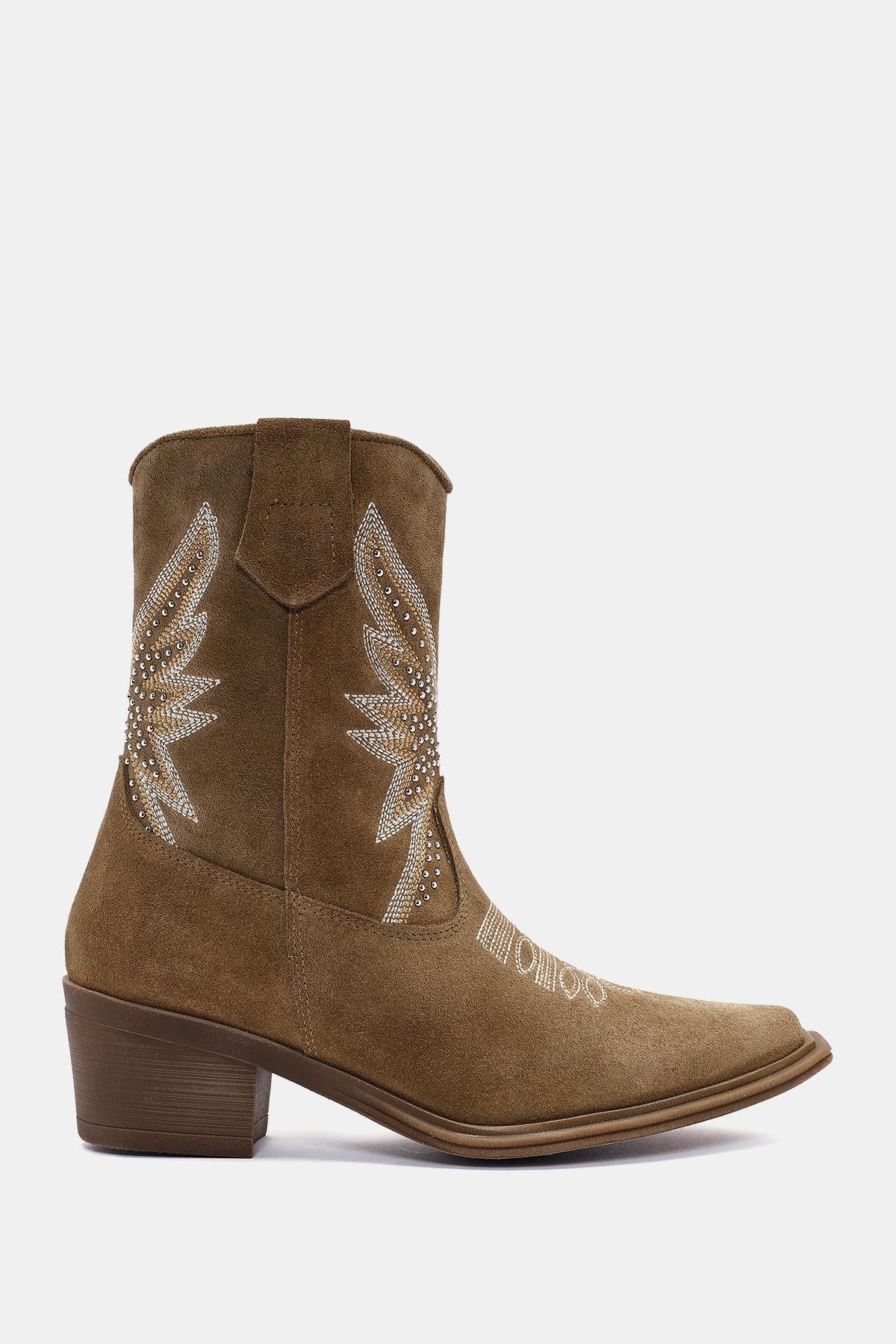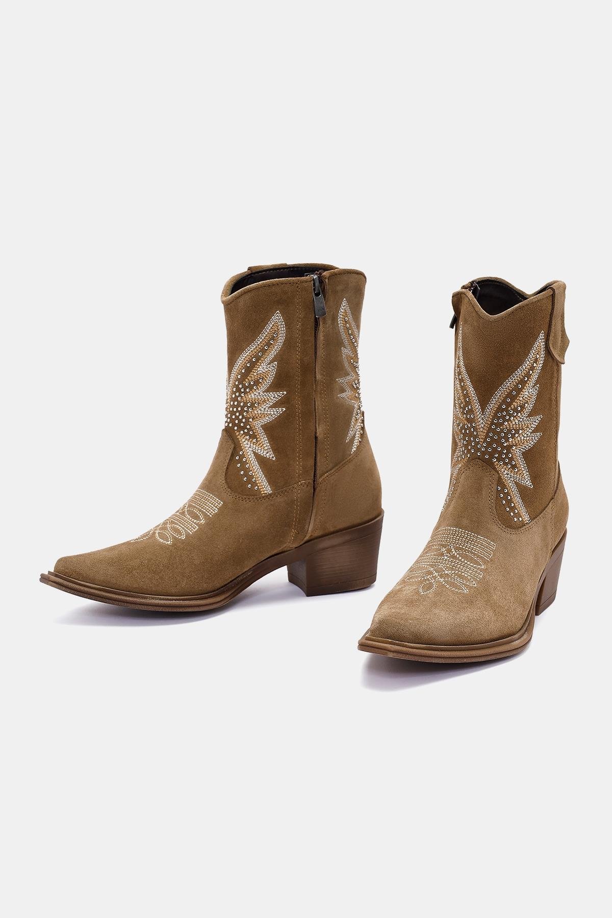 Laura Kadın Camel Gerçek Süet Deri Taşlı Western Bot