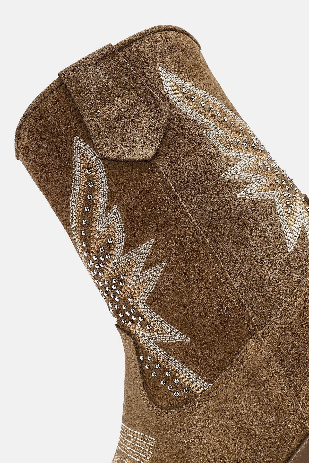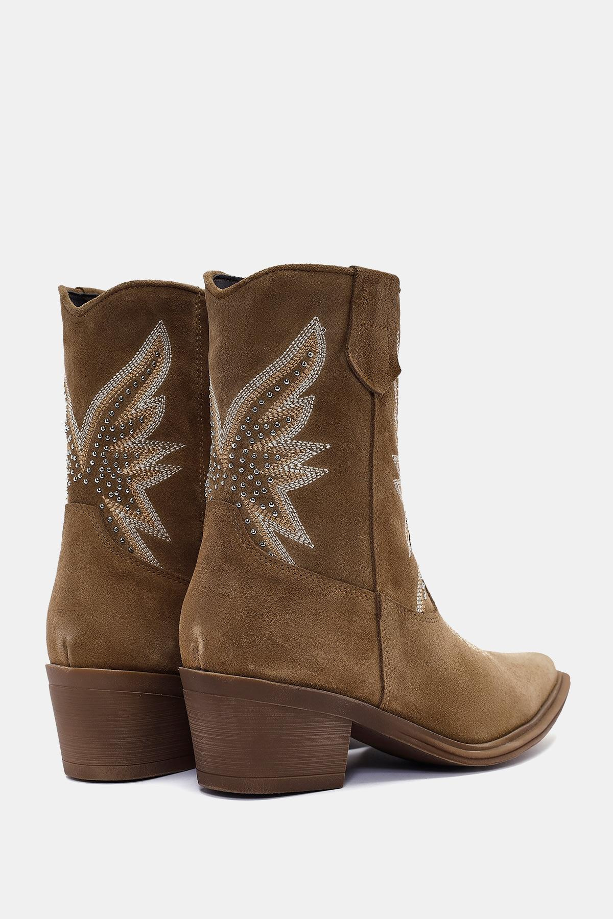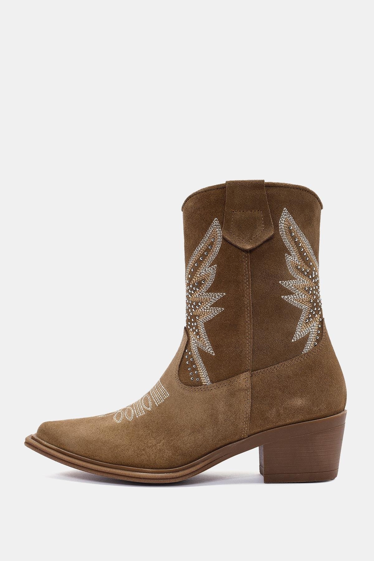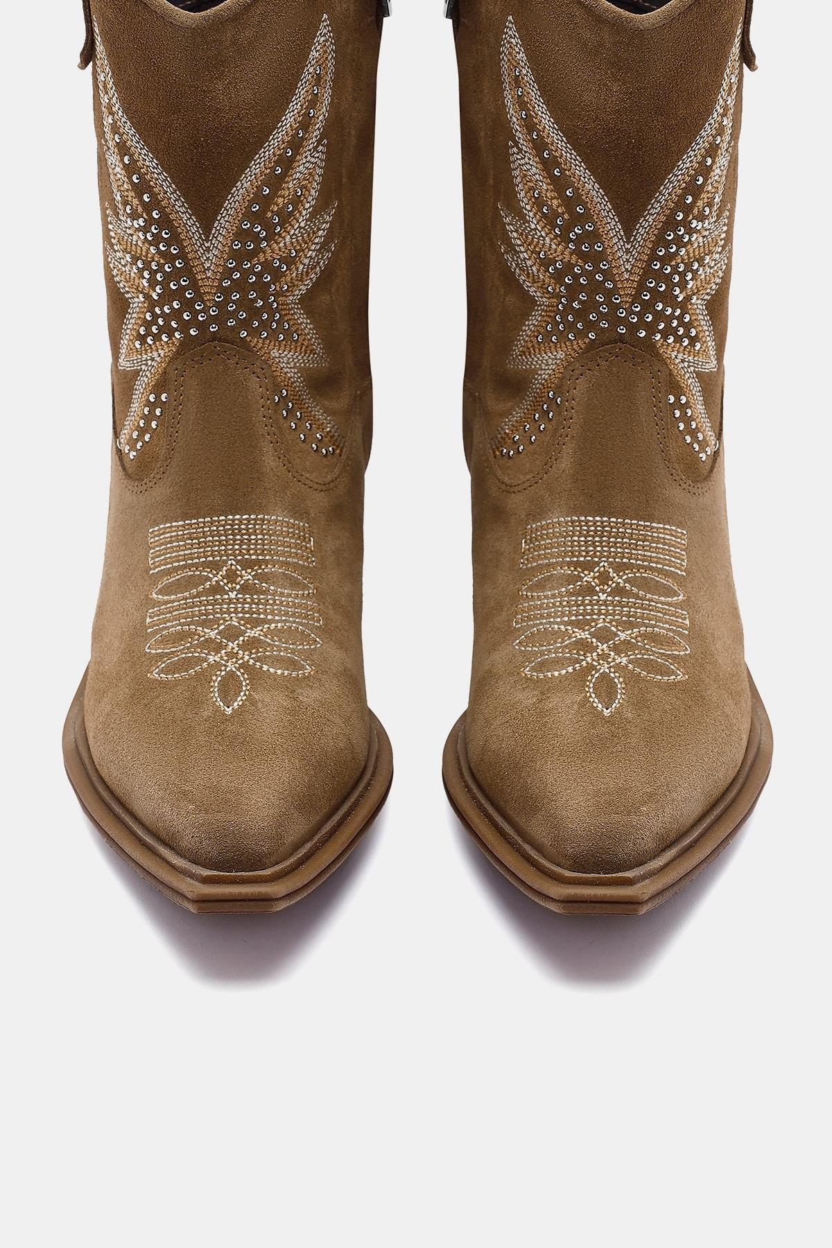 Laura Kadın Camel Gerçek Süet Deri Taşlı Western Bot