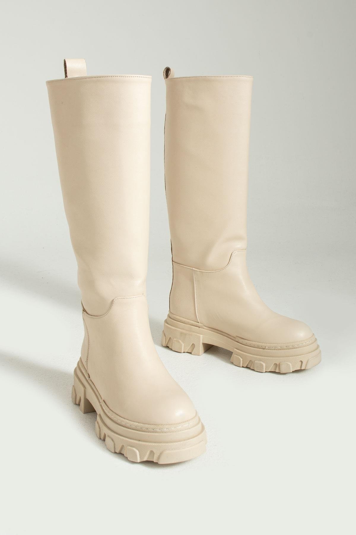 Legend Kadın Bej Diz Altı Kalın Tabanlı Çizme, hem sade hem de işlevsel yapısıyla her türlü kombinle kolayca uyum sağlar. Bej rengin zarafeti ve kalın tabanın sunduğu konforla, bu çizme hem şık hem de pratik bir seçim olarak dolabınızda yer alacak.