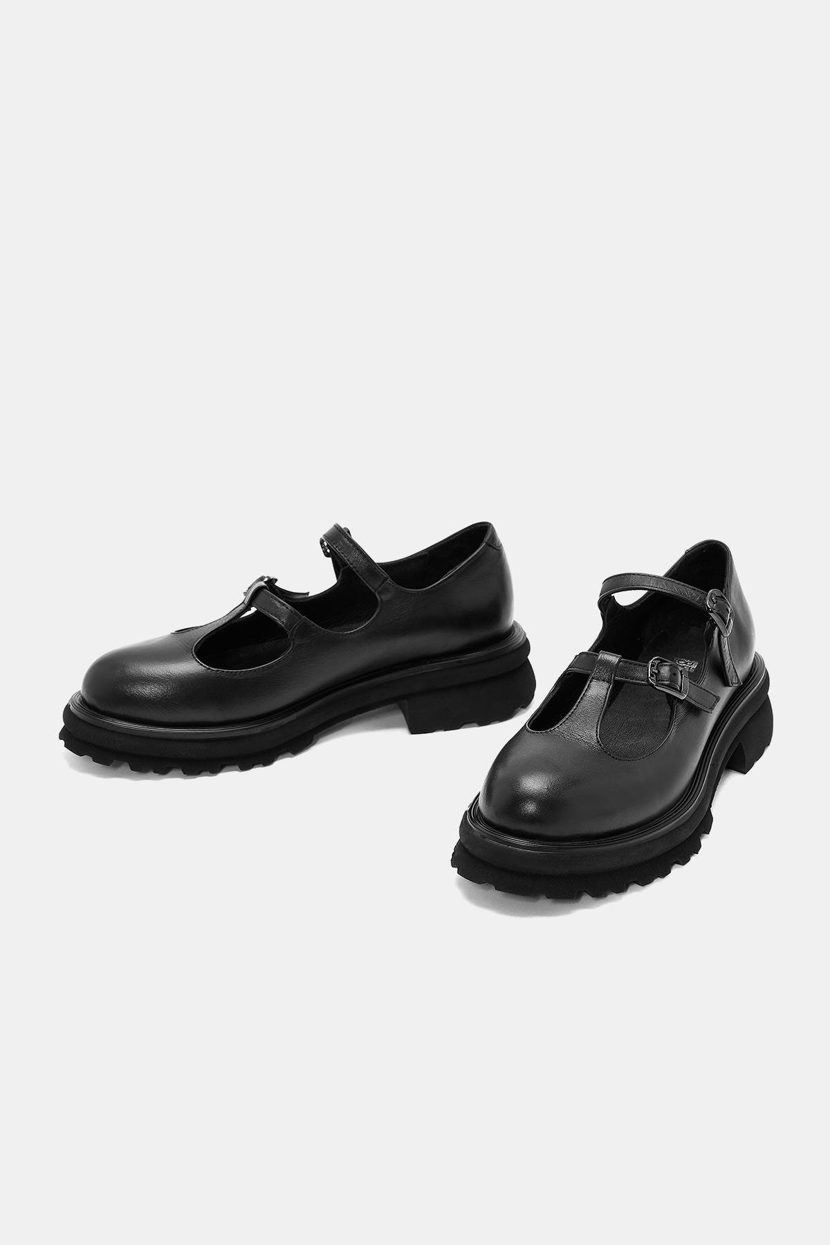 Leila Kadın Siyah Gerçek Deri İki Tokalı Ayakkabı