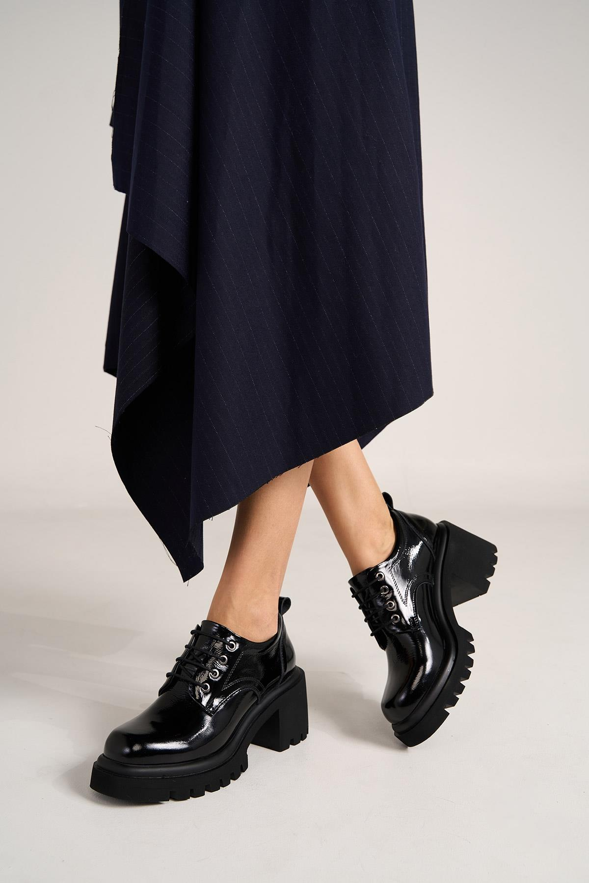 Leona Kadın Siyah Gerçek Deri Kalın Topuklu Ayakkabı