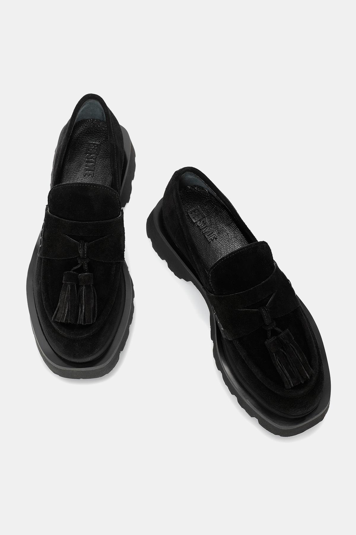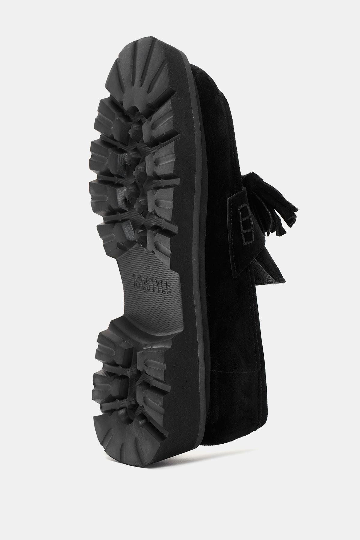 Bestyle'un özel tasarımı olan London Kadın Siyah Gerçek Süet Deri Püsküllü Loafer, konfor ve şıklığı bir araya getiriyor. Siyah rengi, ayakkabıya modern bir hava katarken, gerçek süet deri malzemesi dokusuyla dikkat çekiyor. Özel çift kat hafif tabanıyla, ayakkabı hafiflik ve esneklik sağlarken, adımlarınızı destekliyor. Püsküllü detaylar, ayakkabıya zarif ve şık bir dokunuş eklerken, aynı zamanda tarzınıza özgünlük katıyor. London Kadın Siyah Gerçek Süet Deri Püsküllü Loafer, hem günlük kullanımda hem de özel günlerde konfor ve stil arayanların tercihi olacak.