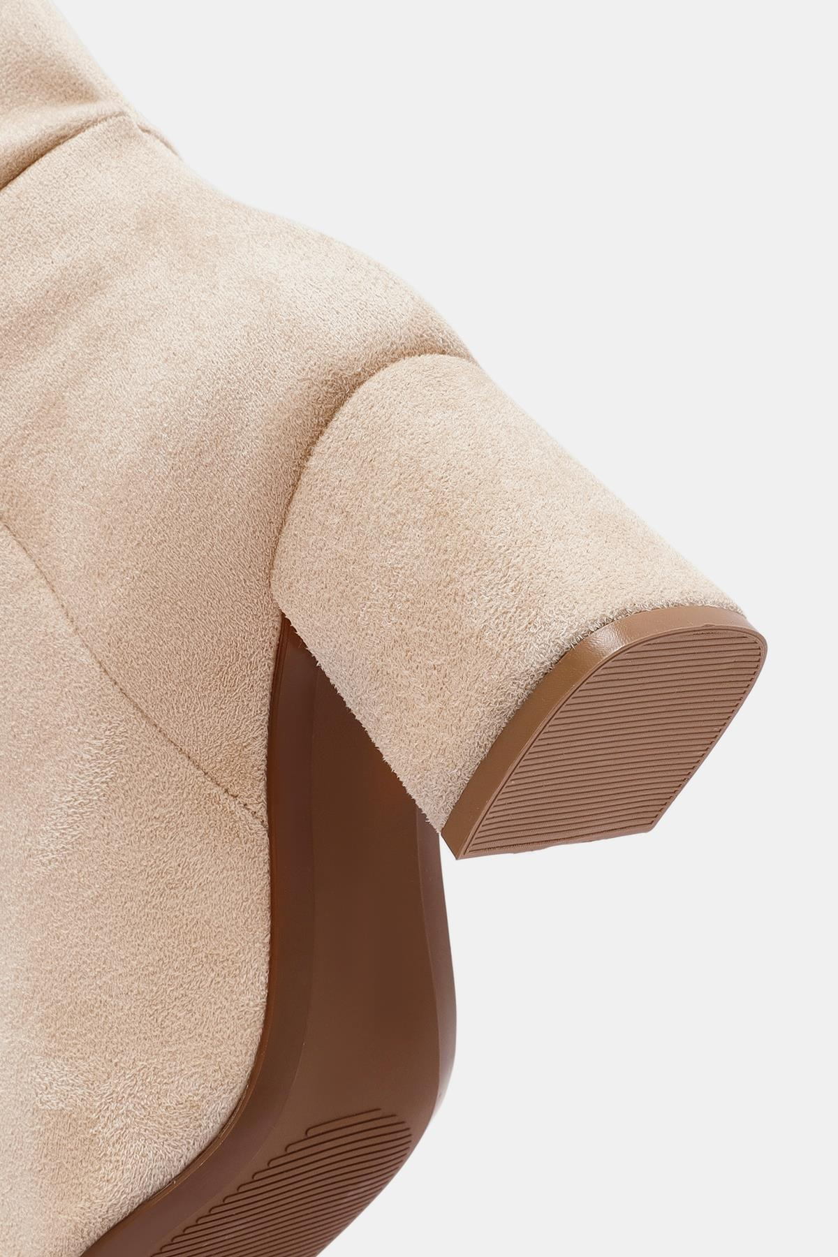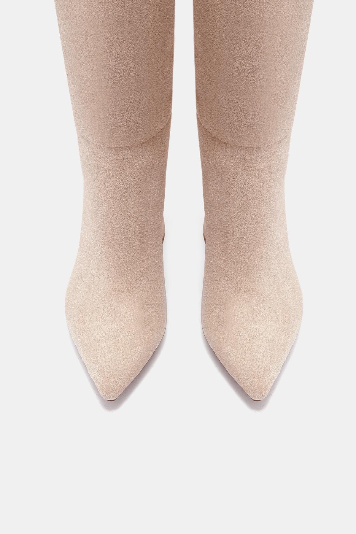 Bestyle markasının zarif ve sıradışı tasarımlarından biri olarak, hem günlük kullanımda hem de özel davetlerde şıklığınızı ön plana çıkaracak çok yönlü bir seçenektir. Suni süet dış malzeme, çizmeye yumuşak ve lüks bir dokunuş kazandırırken, zarafeti çizmeyi her türlü tarza uygun hale getirir.