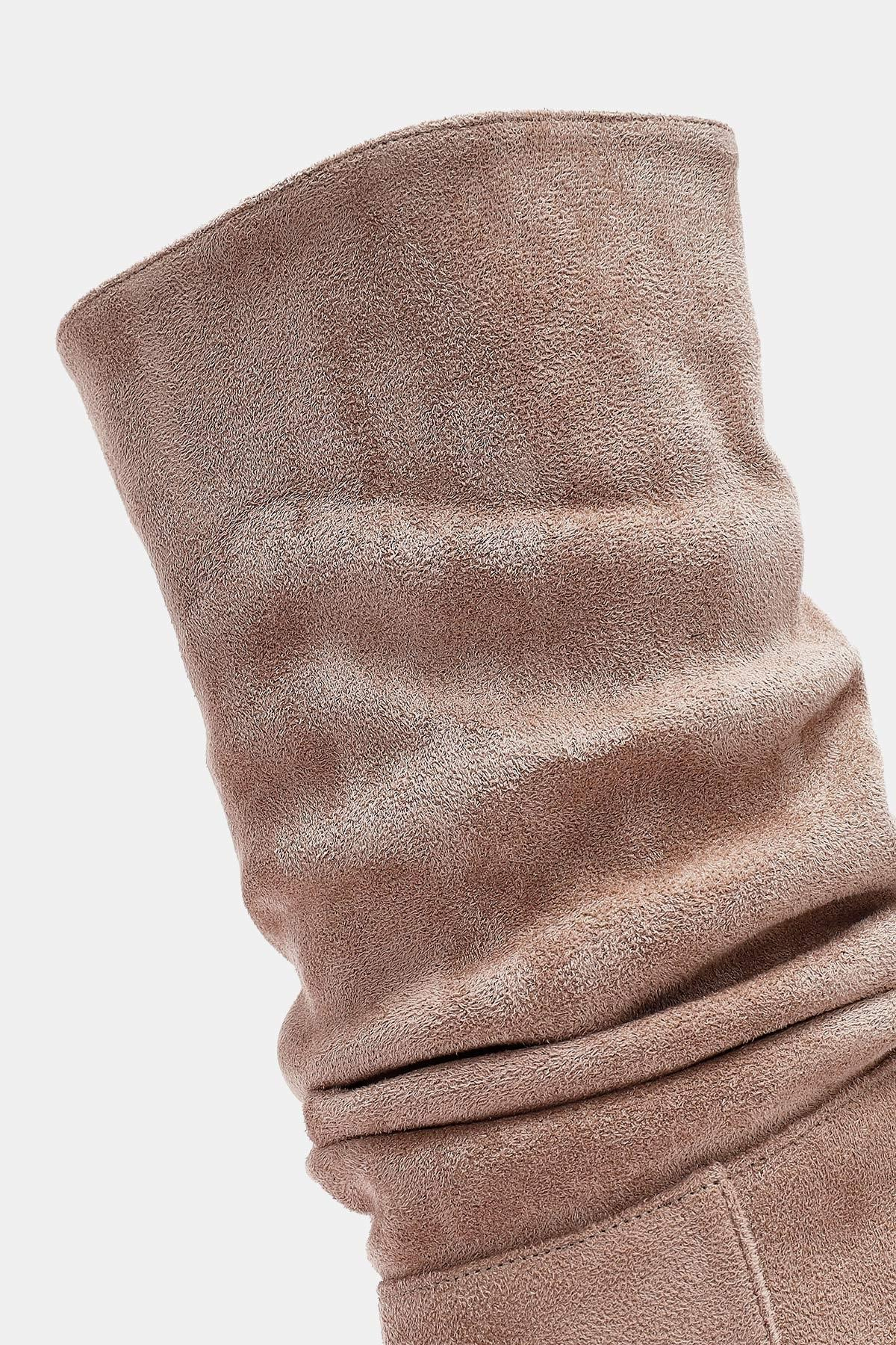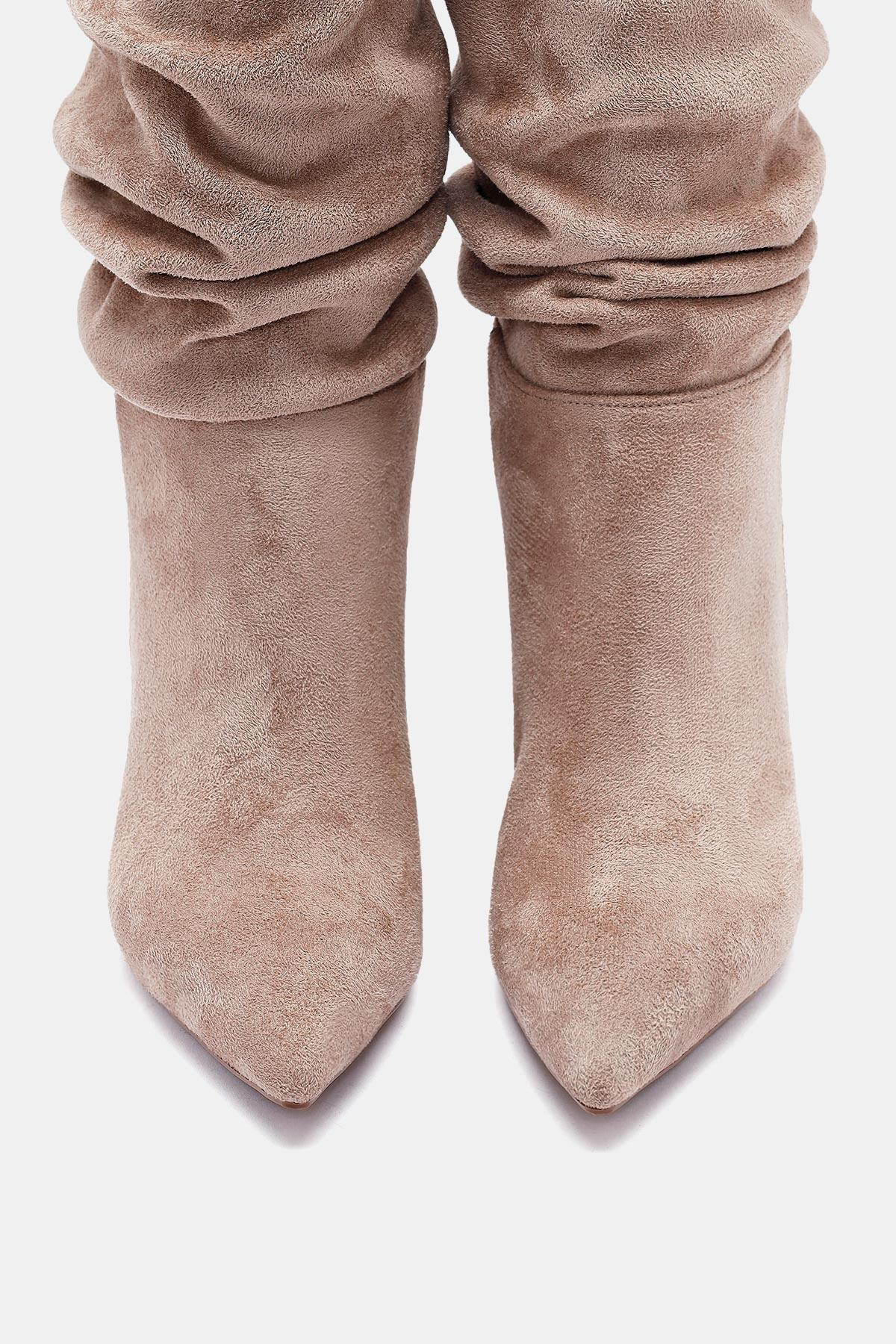 her kombine sofistike bir dokunuş katar. Suni süet malzeme, çizmeye zarafet ve lüks bir görünüm kazandırırken, 8 cm'lik topuk boyu ise feminen ve şık bir duruş sunar. Neolit taban, çizmeye hem dayanıklılık hem de rahatlık katarken, iç kısmındaki sıcak astar, soğuk günlerde ayağınızı sıcak tutar.