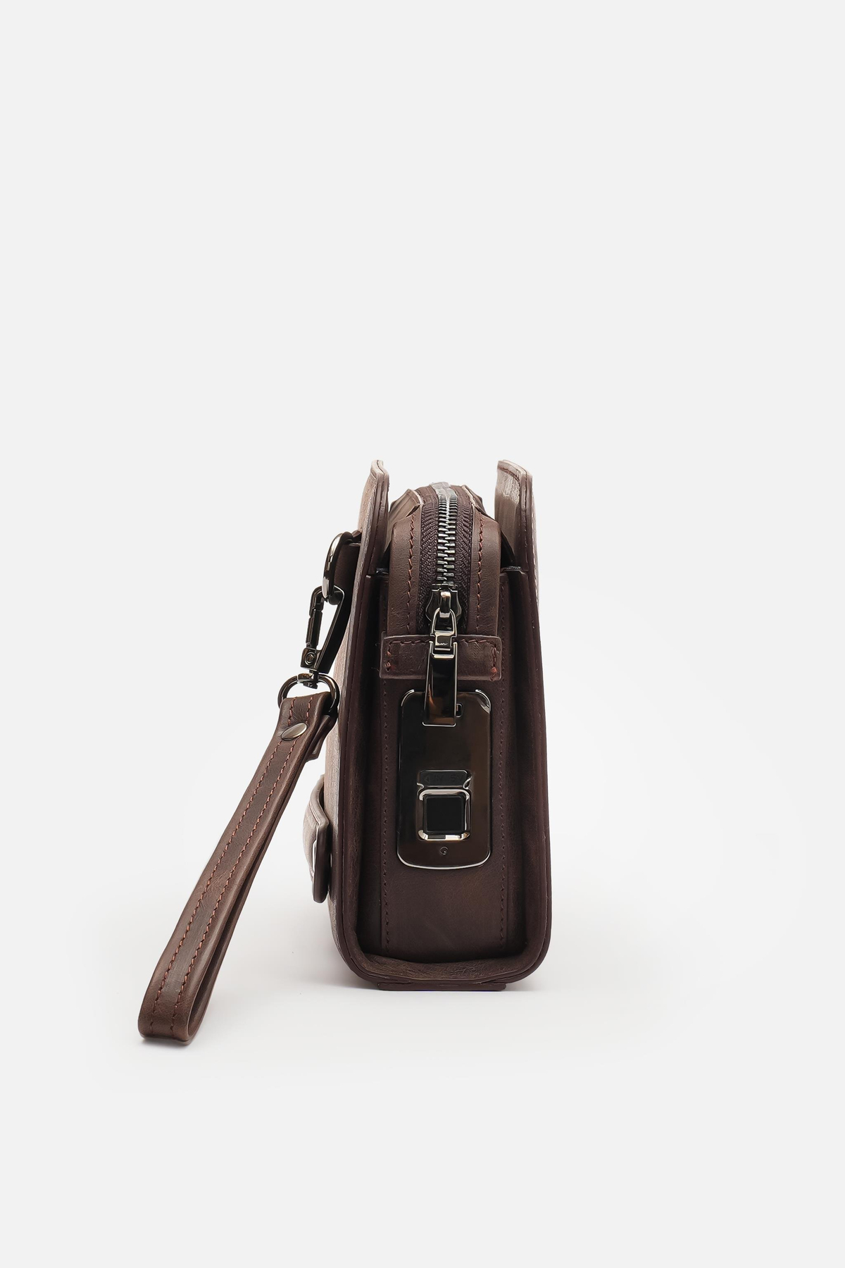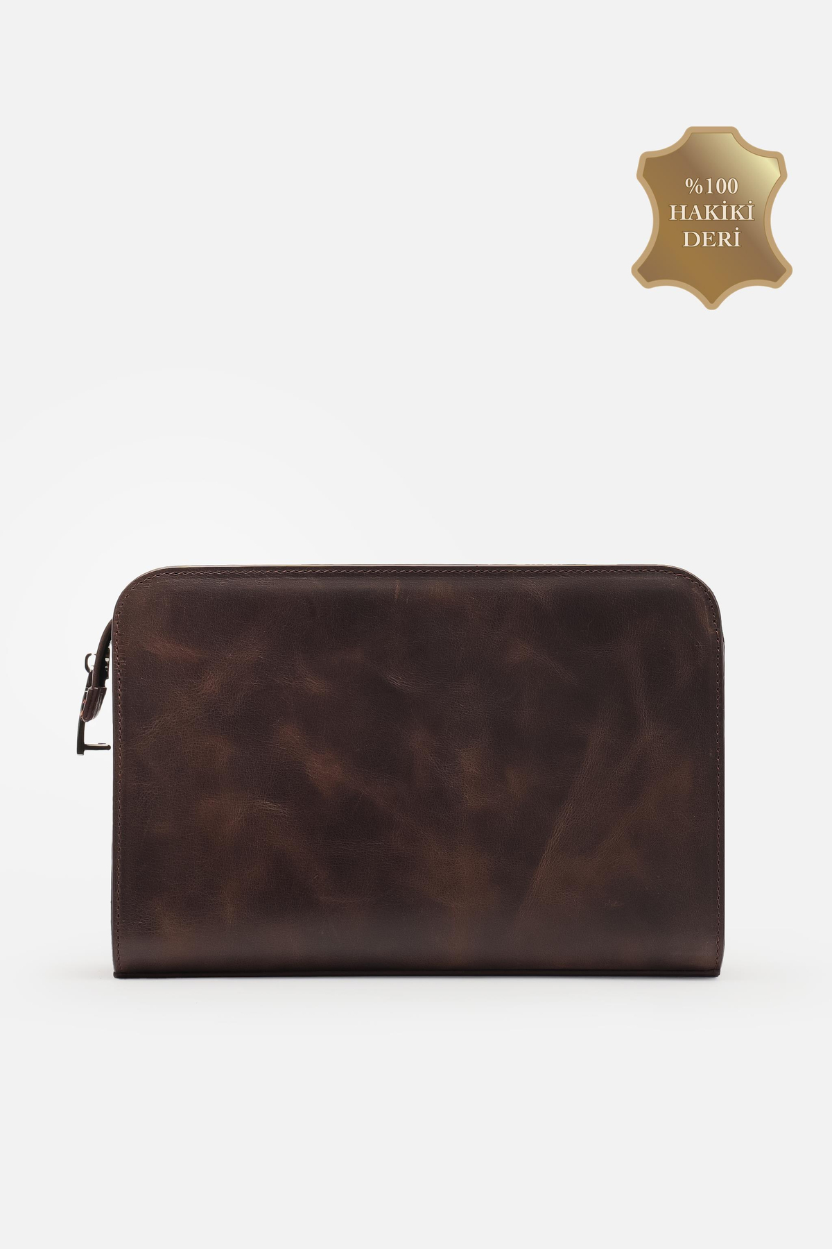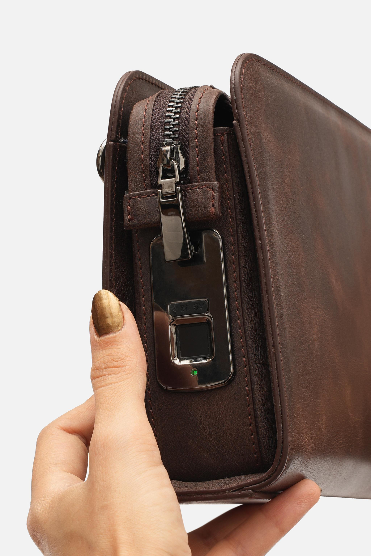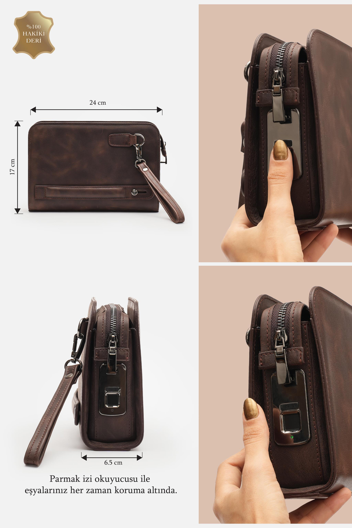 MAFI İmza %100 Hakiki Kahverengi Deri Biyometrik El Çantası (Parmak İzi Kilitli)