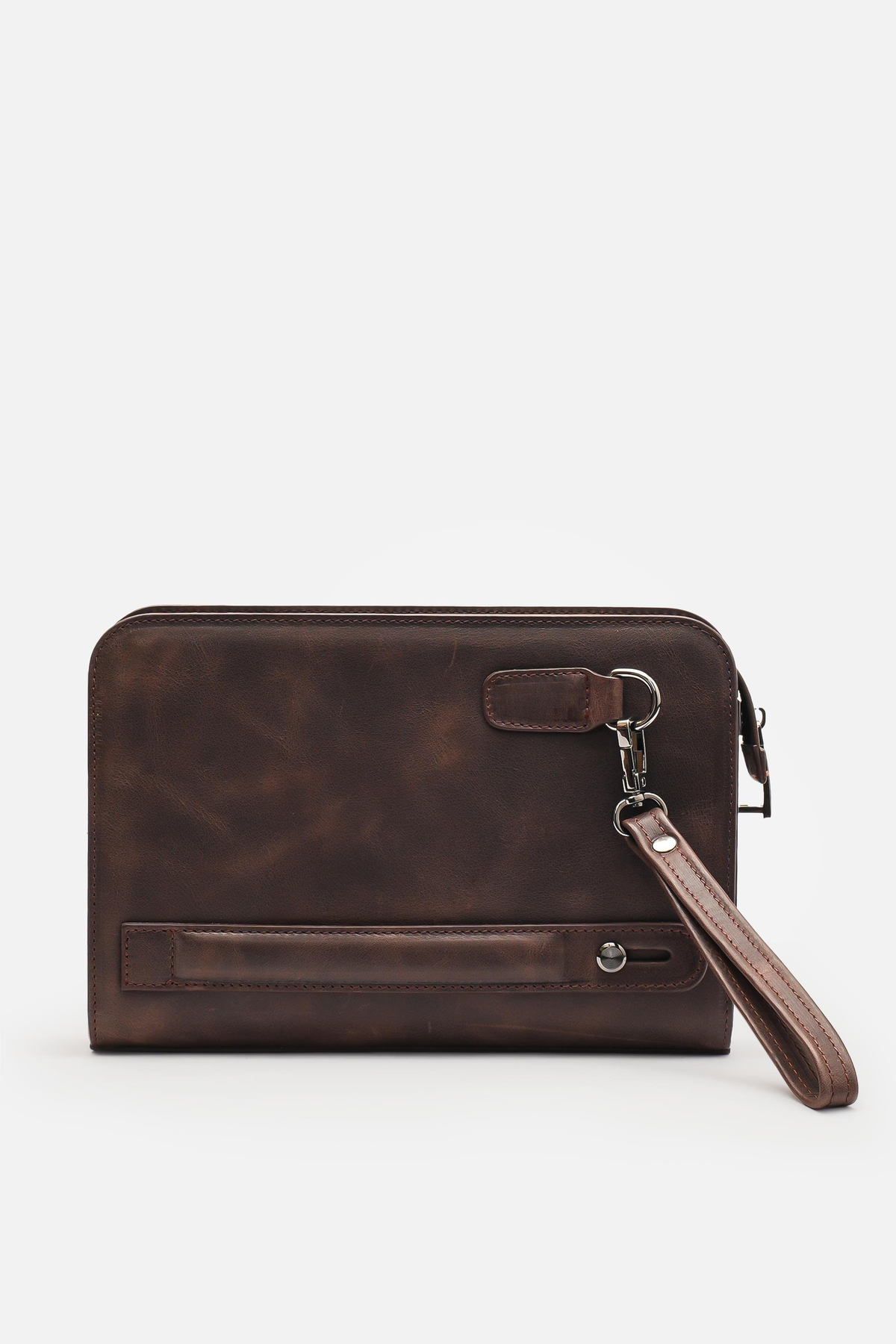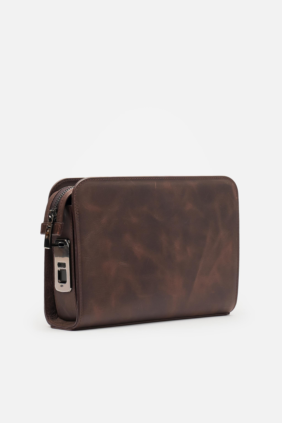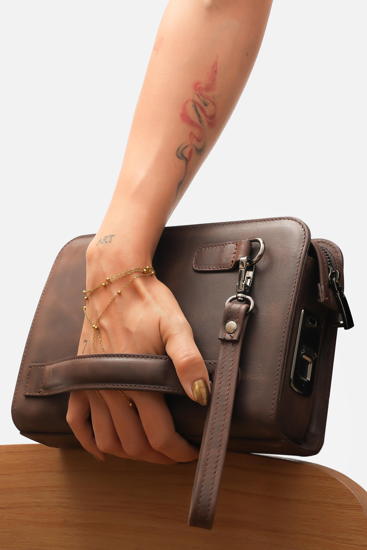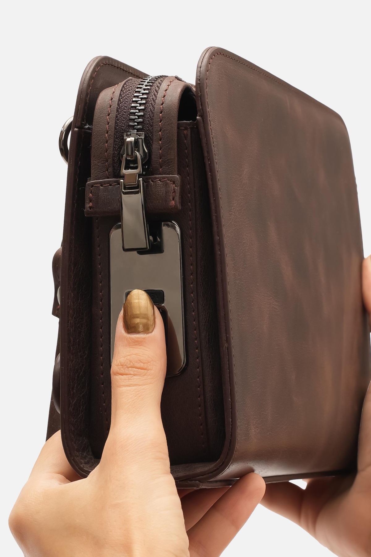 MAFI İmza %100 Hakiki Kahverengi Deri Biyometrik El Çantası (Parmak İzi Kilitli)