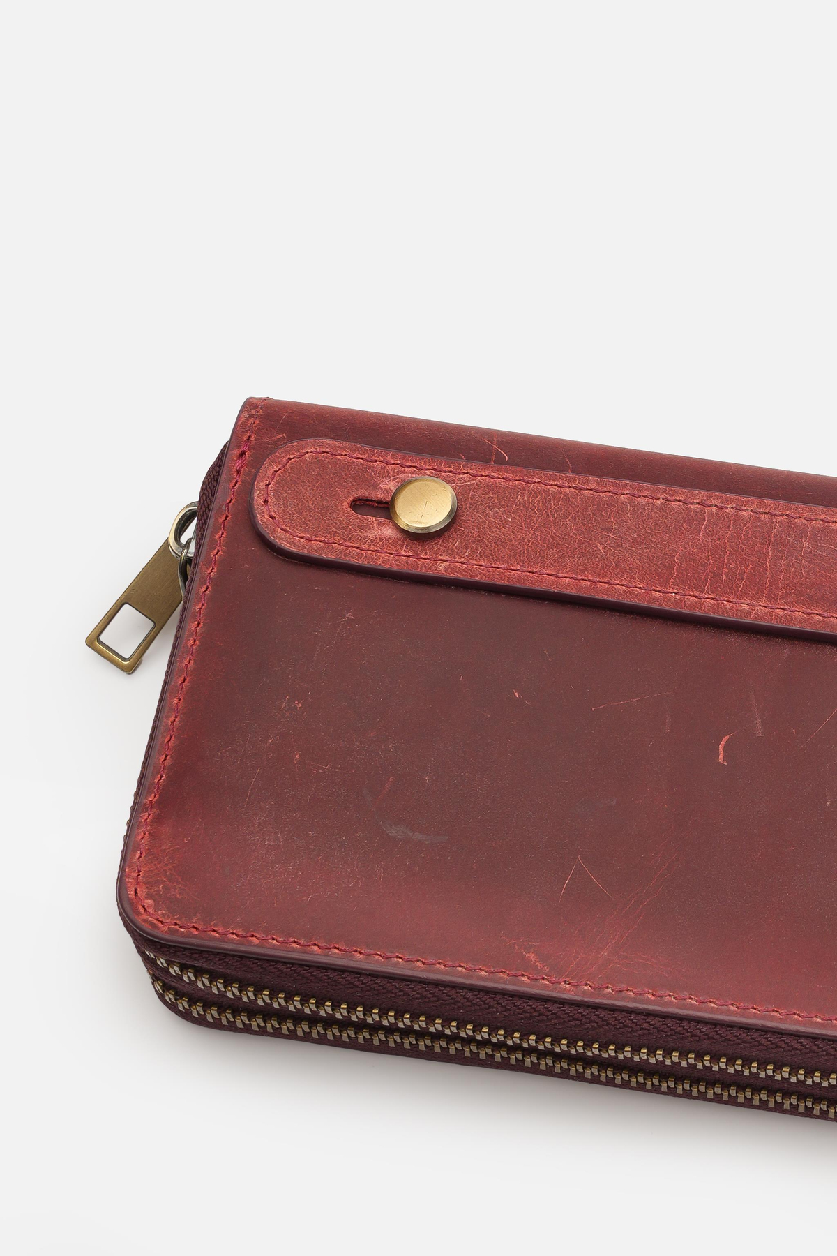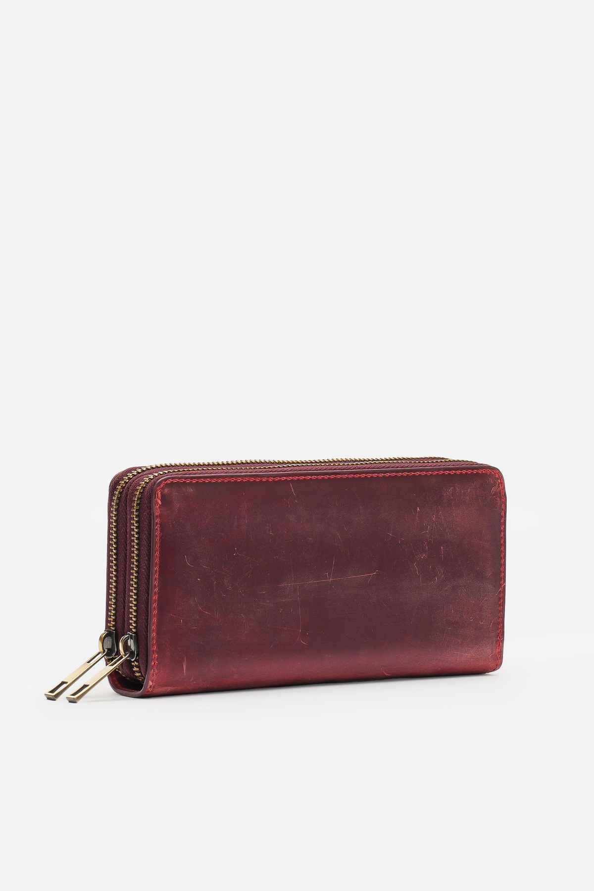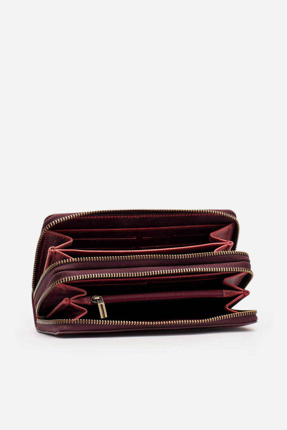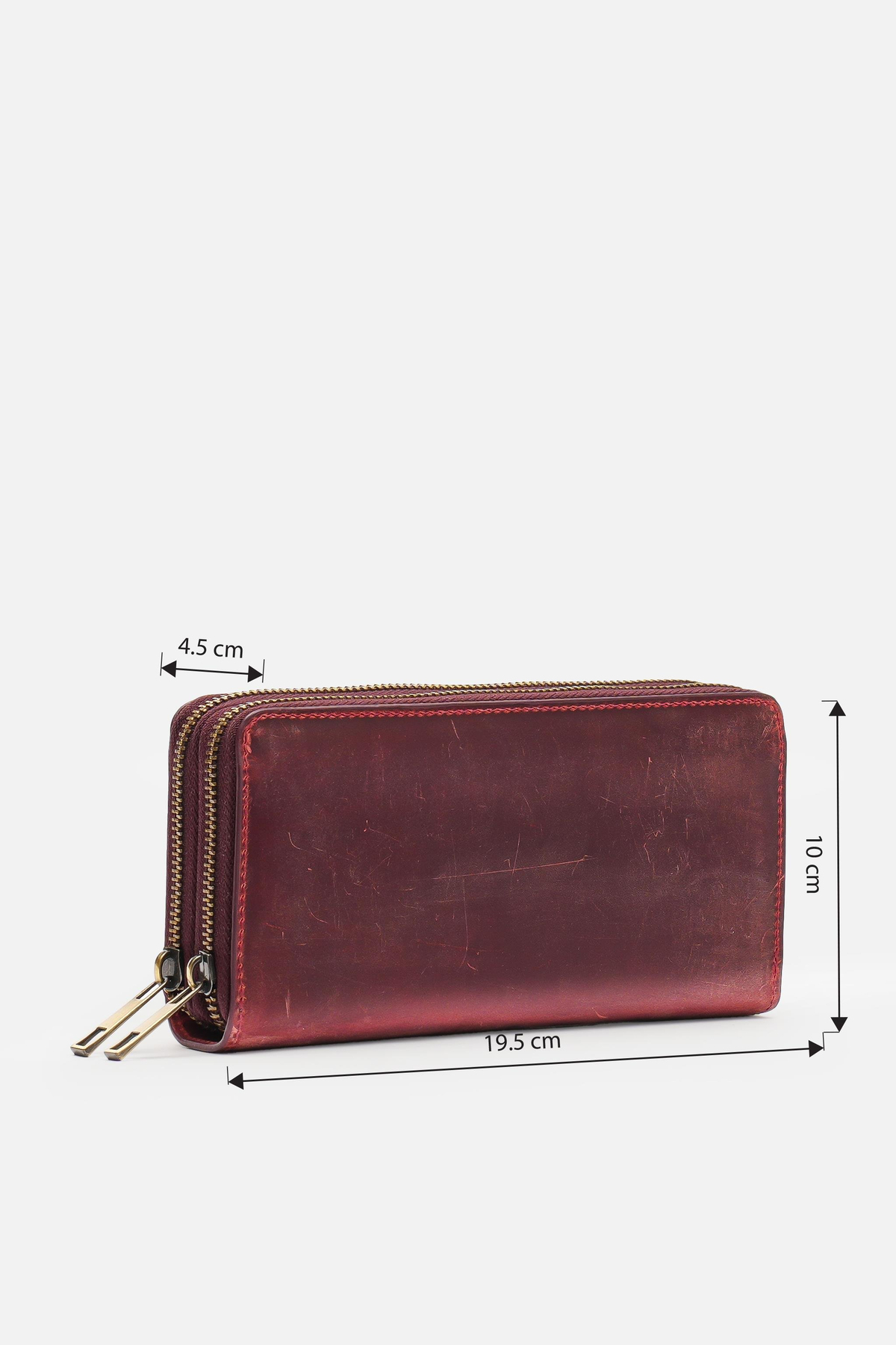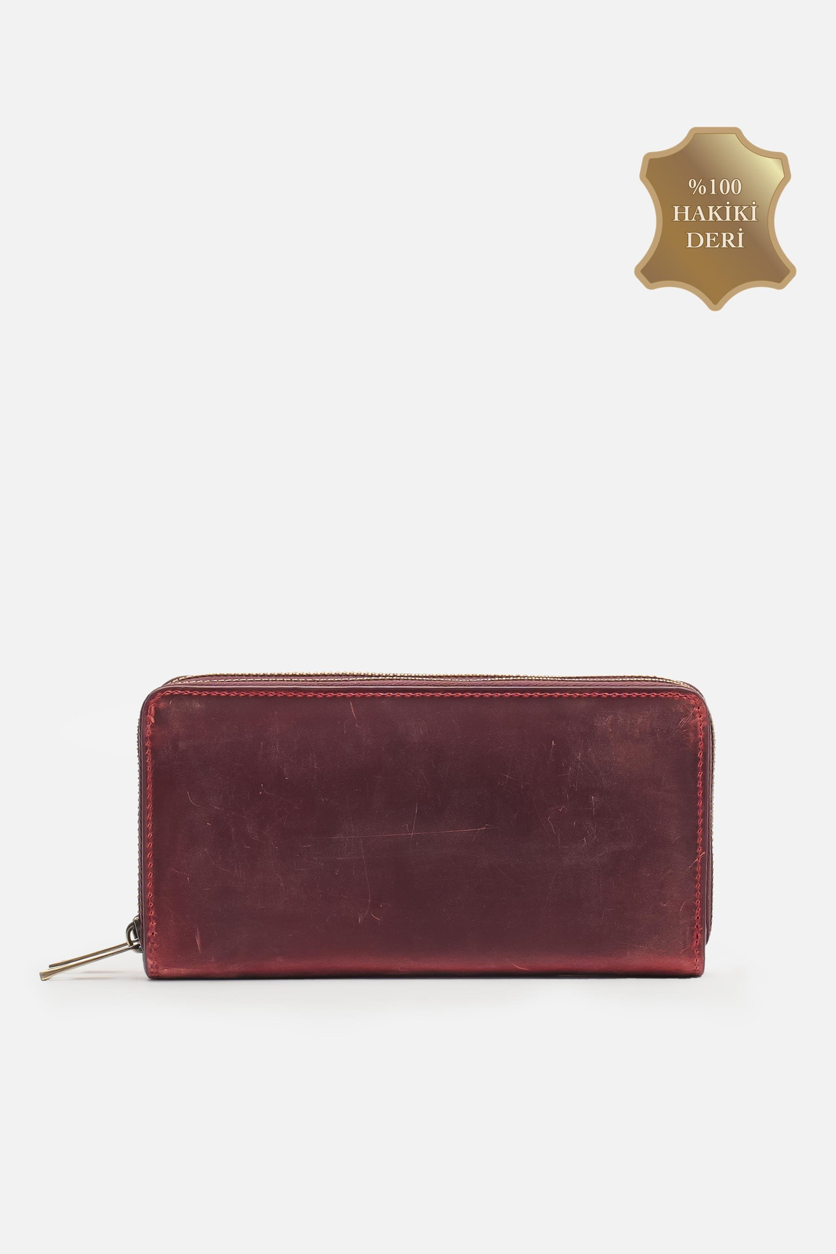 MAFİ Lina Hakiki Crazy Deri Portföy El Çantası Çift Fermuarlı Model (BSE02595-Bordo)