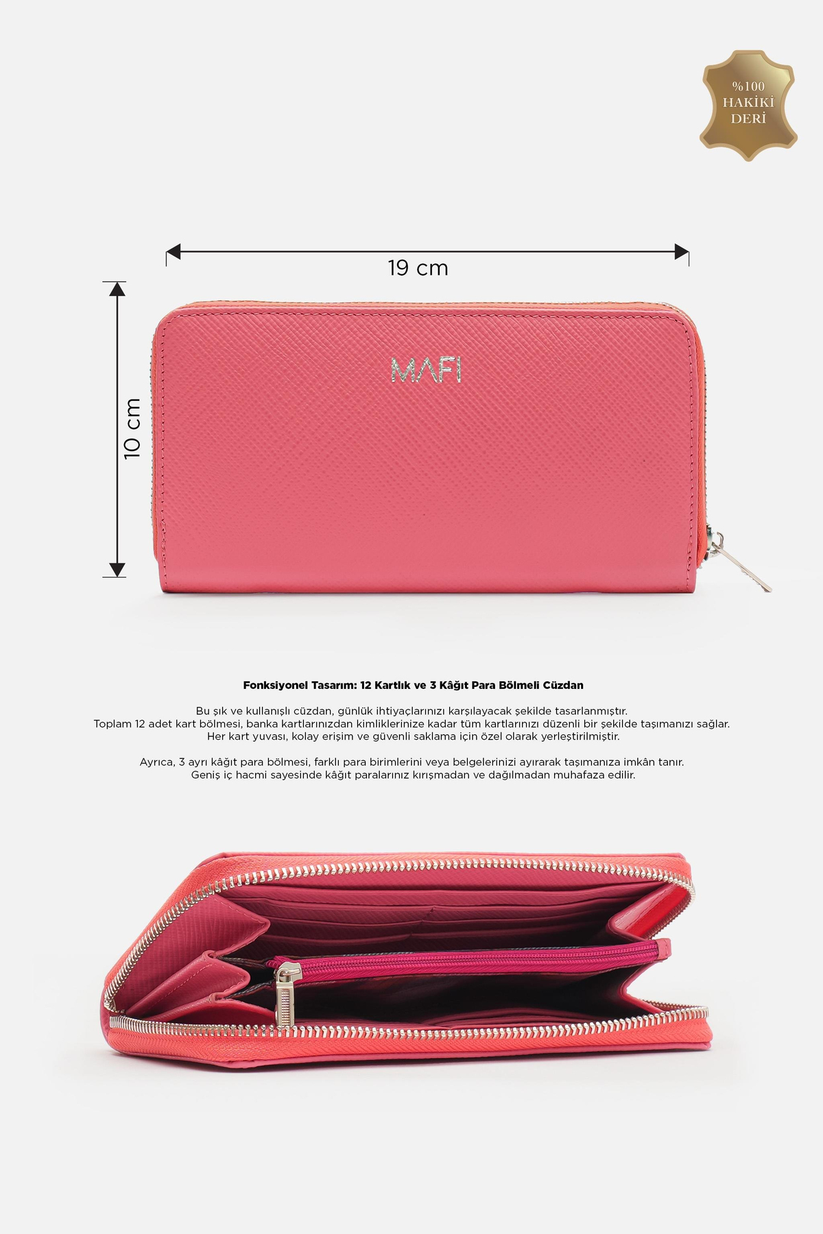 Şıklık ve fonksiyonelliği bir arada sunan %100 hakiki deri kadın cüzdan. Geniş iç hacmi, kartlık bölmeleri ve zarif tasarımıyla günlük kullanım için ideal.