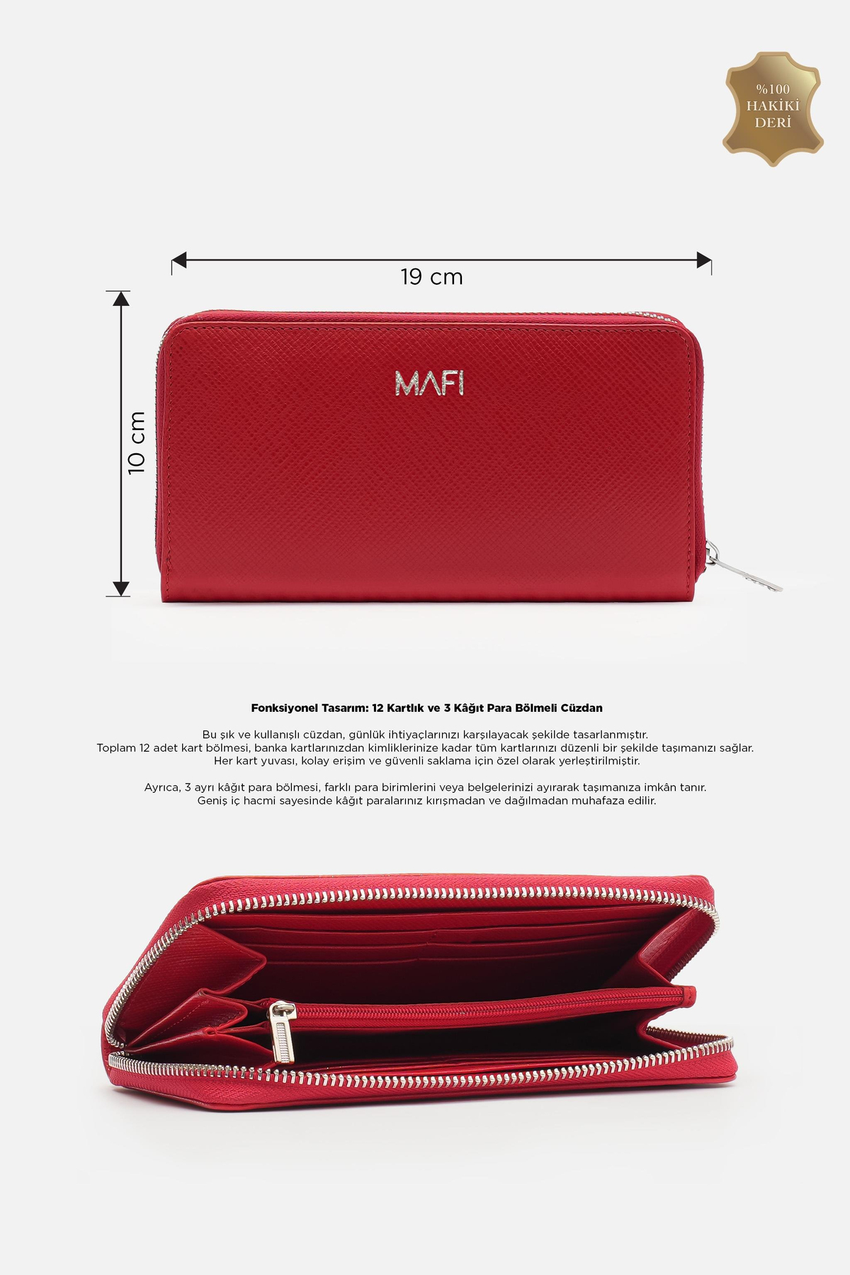 MAFI Masted %100 Hakiki Deri Kırmızı Fermuarlı Kadın Cüzdan
