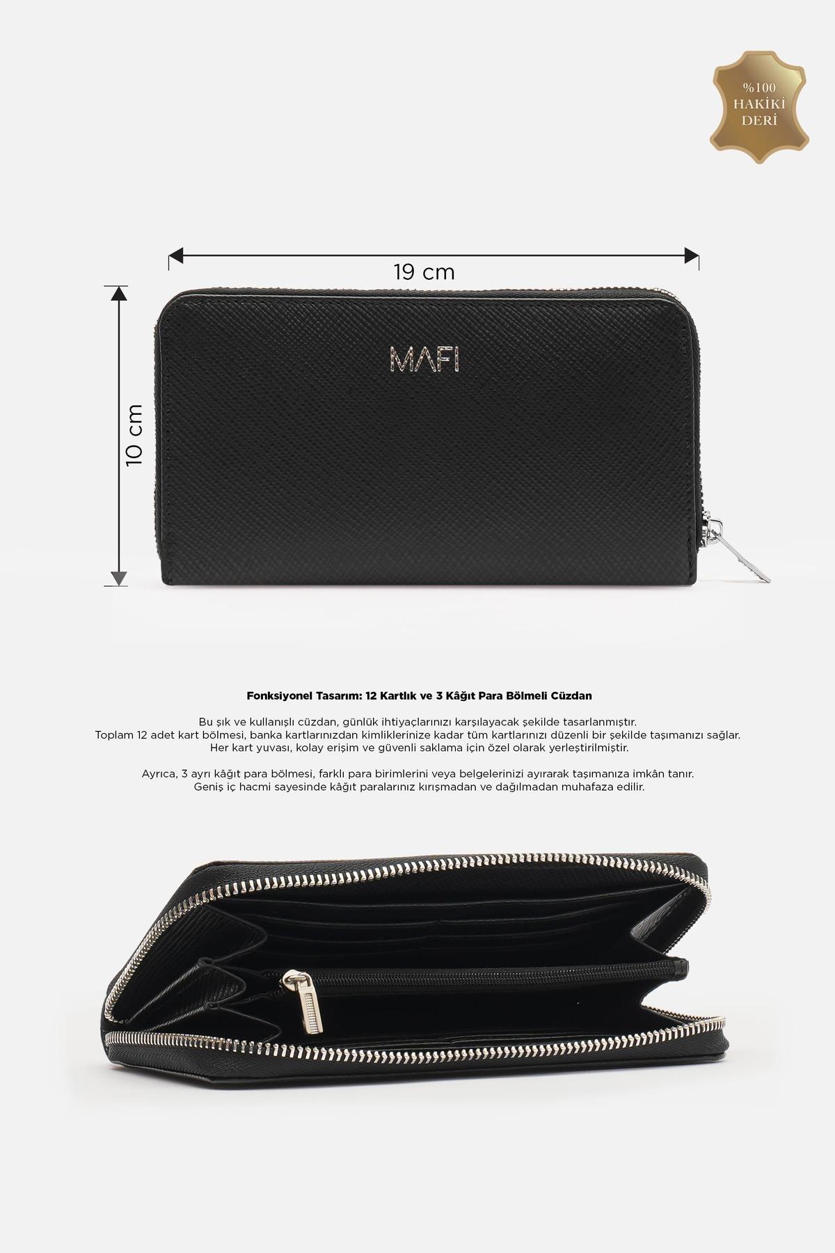 Bu şık ve kullanışlı cüzdan, günlük ihtiyaçlarınızı karşılayacak şekilde tasarlanmıştır.