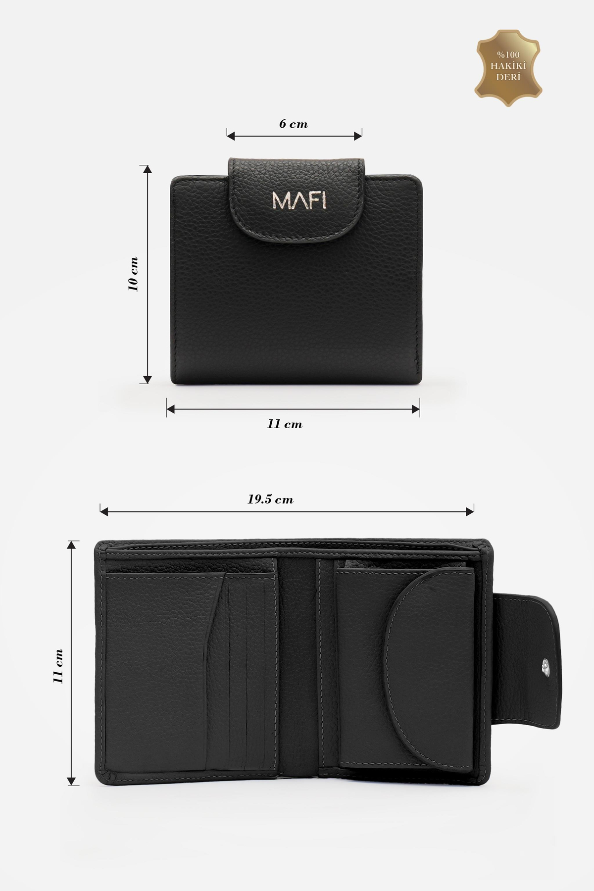 Mafi Nomed %100 Doğal Siyah Deri Kompakt Cüzdan – 11×10 cm (MFC-01891)