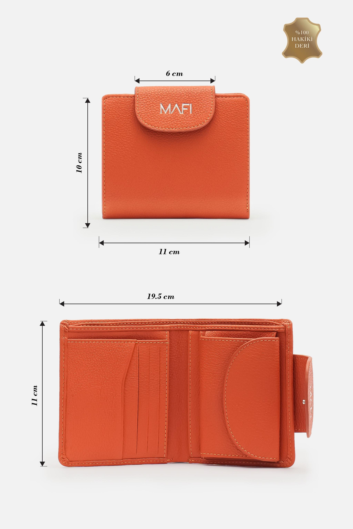 Mafi Nomed %100 Doğal Turuncu Deri Kompakt Cüzdan – 11×10 cm (MFC-01891)