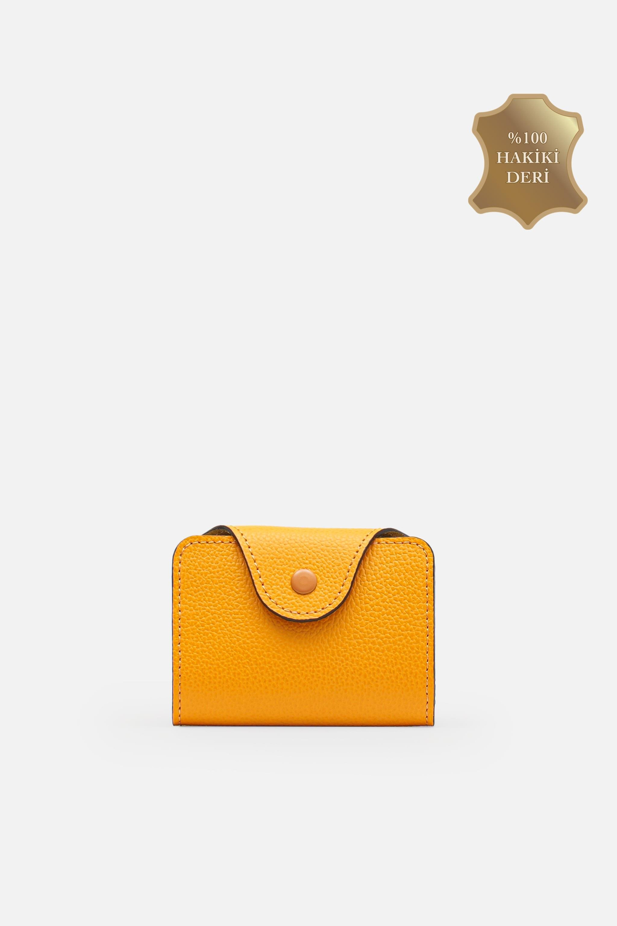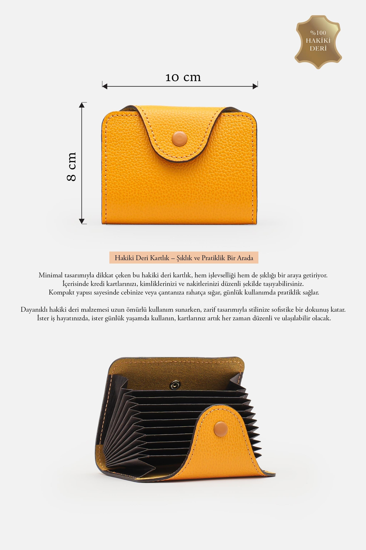 MAFİ Unisex Kartell Hakiki Deri Kompakt Akordeon Kartlık (MFK02990-Sarı)